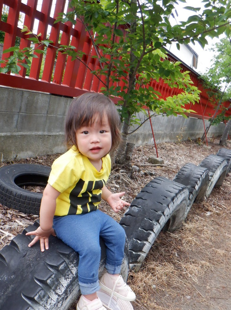 タイヤの上に座ってみたり・・・。