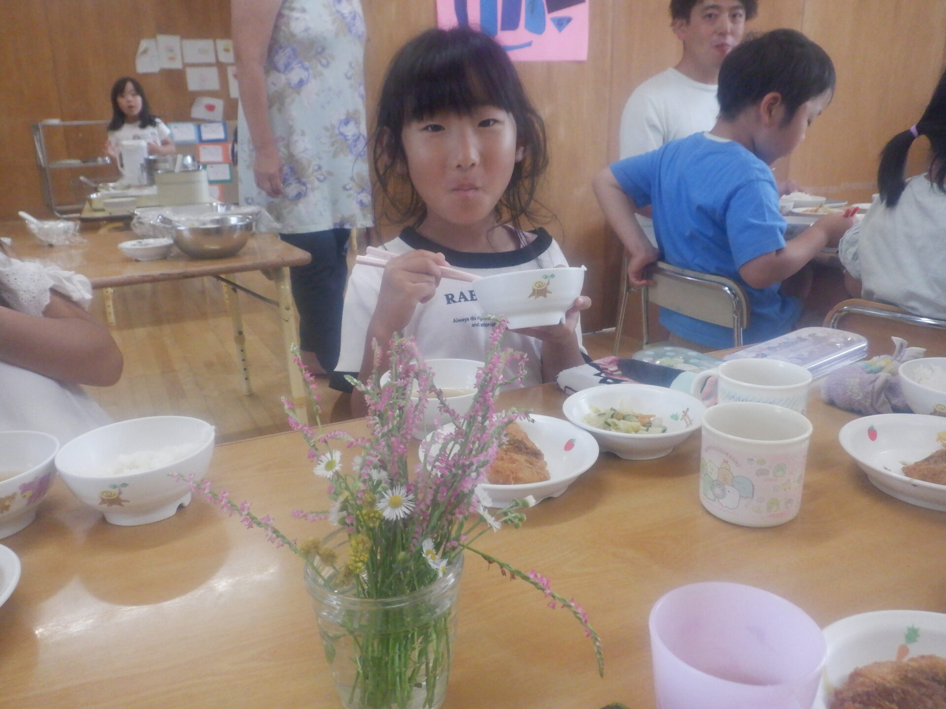 お花は給食の時にテーブルに飾って、レストラン気分を満喫!