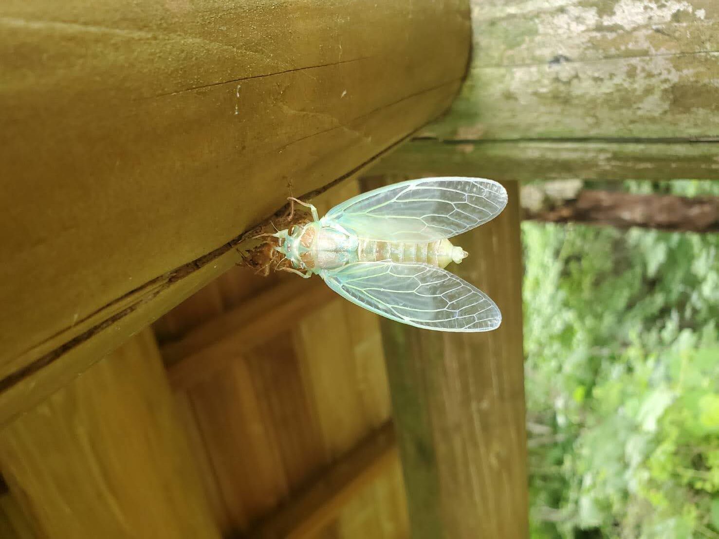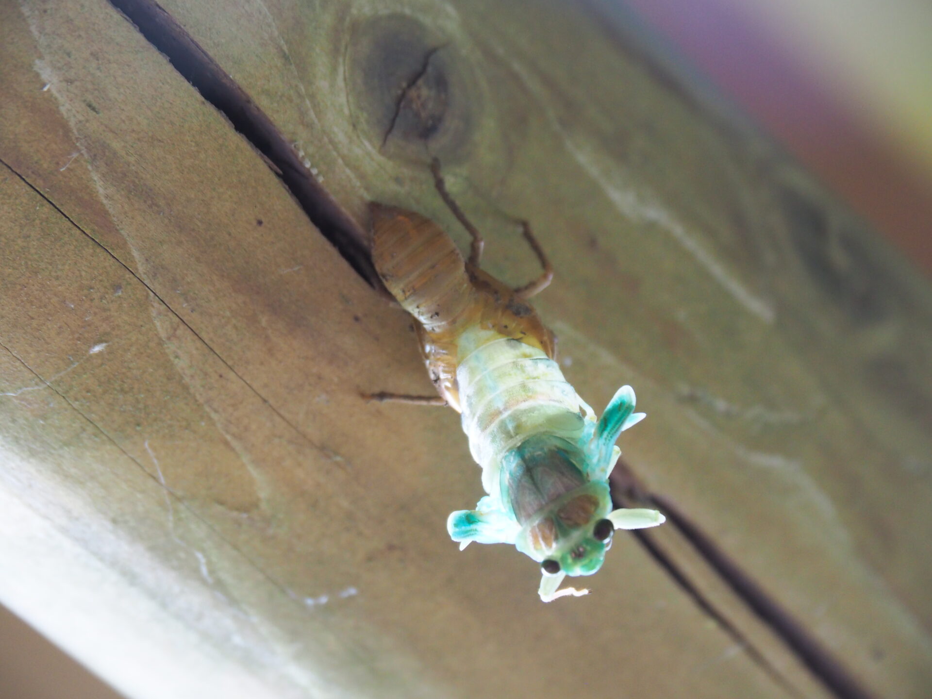上を見上げると、羽化する寸前の”セミ”がいるではありませんか!!