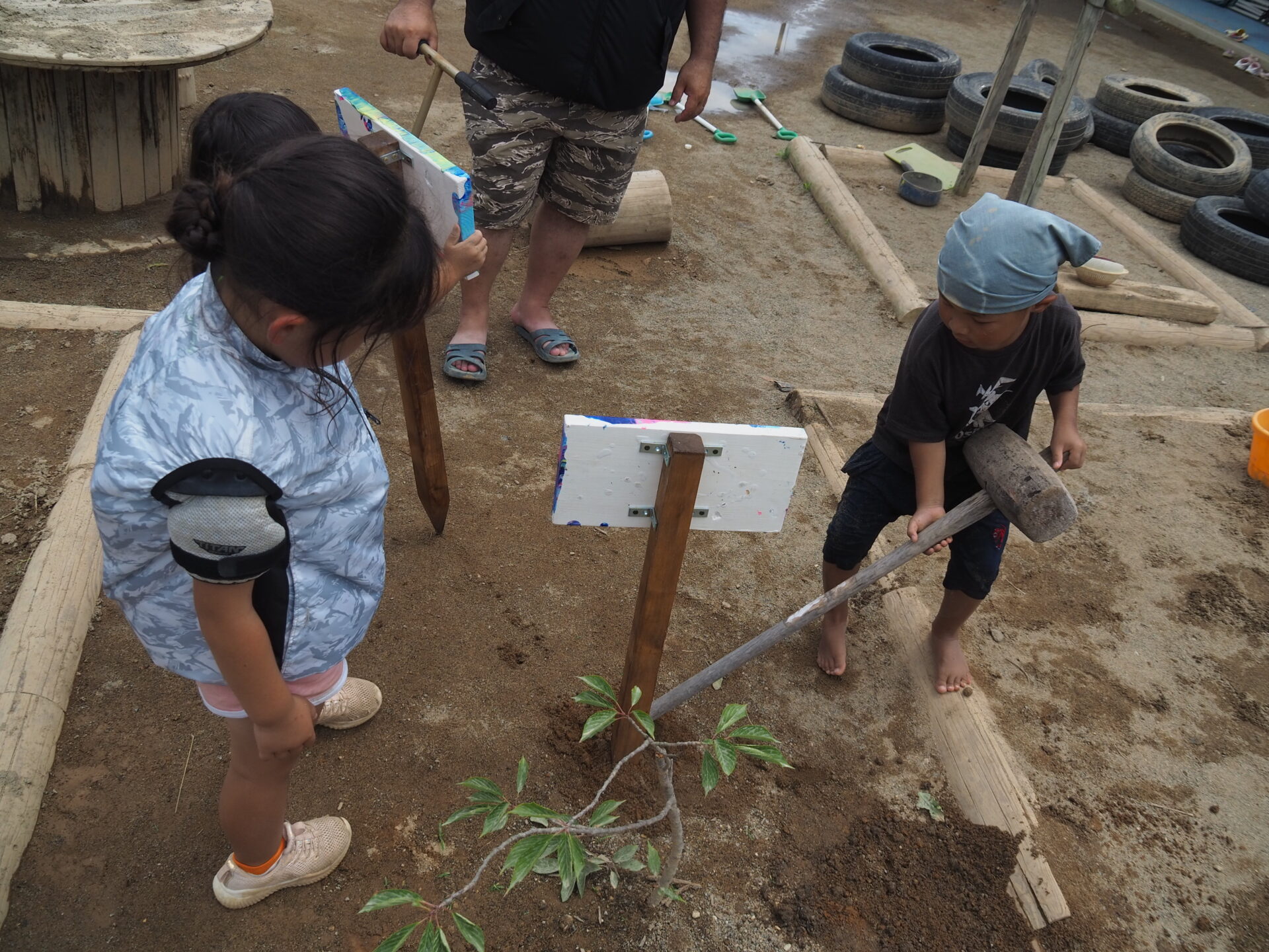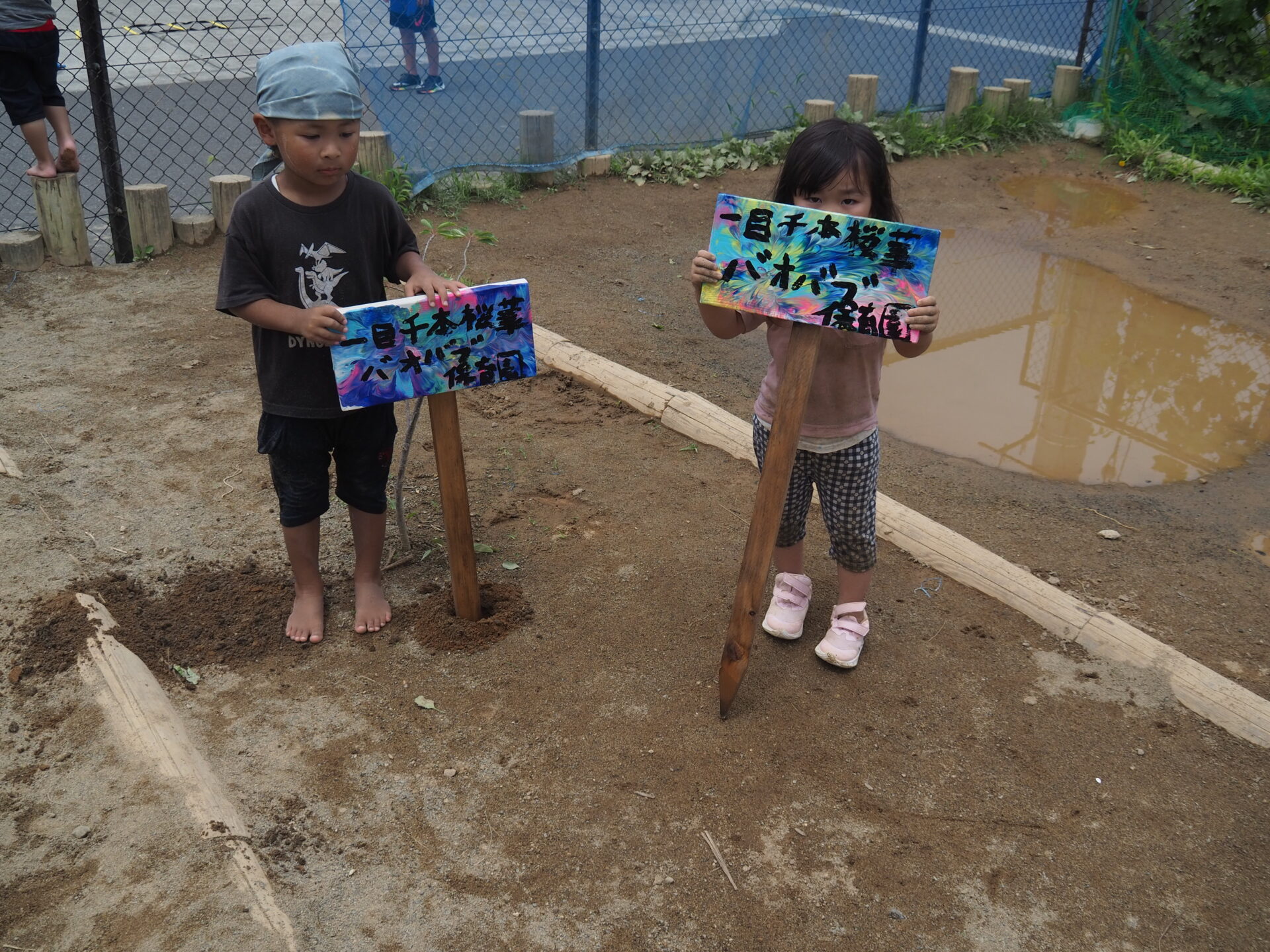 『千本桜の木を増やしたい』という企画から、4月に桜の苗木を子ども達と一緒に植えました。