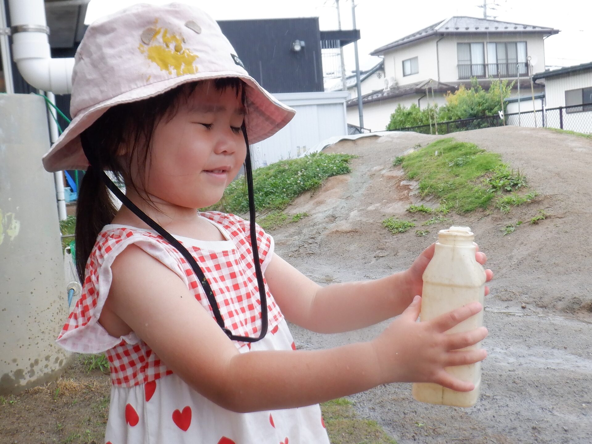 持った容器で雫を受け止めようとすると、