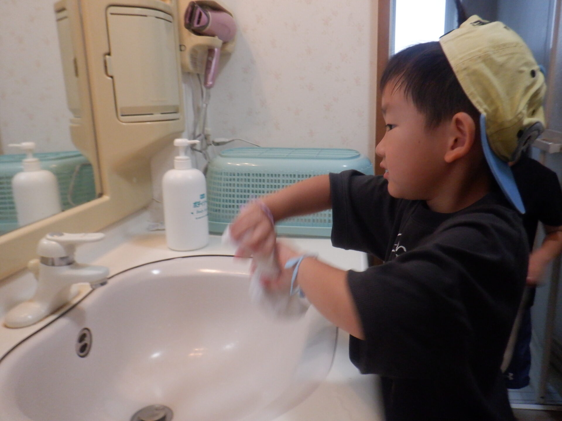 お着替え、布団の片付け、洗顔にお掃除までっ!!