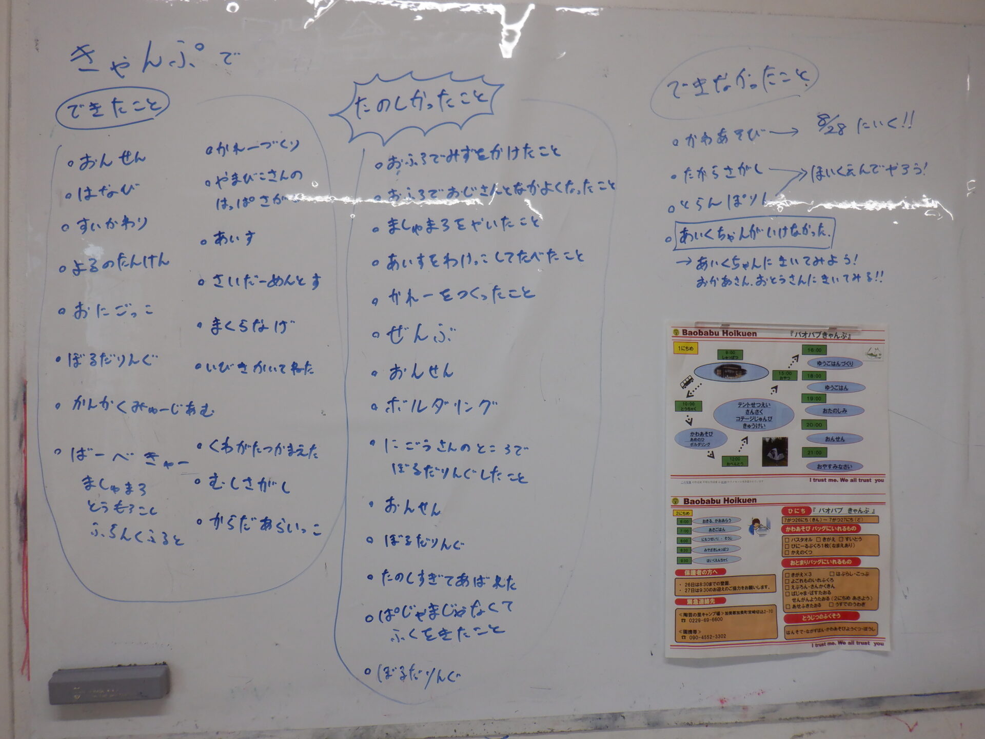 先週末のバオバブ組キャンプが終わり、楽しかったことをみんなで振り返りました。