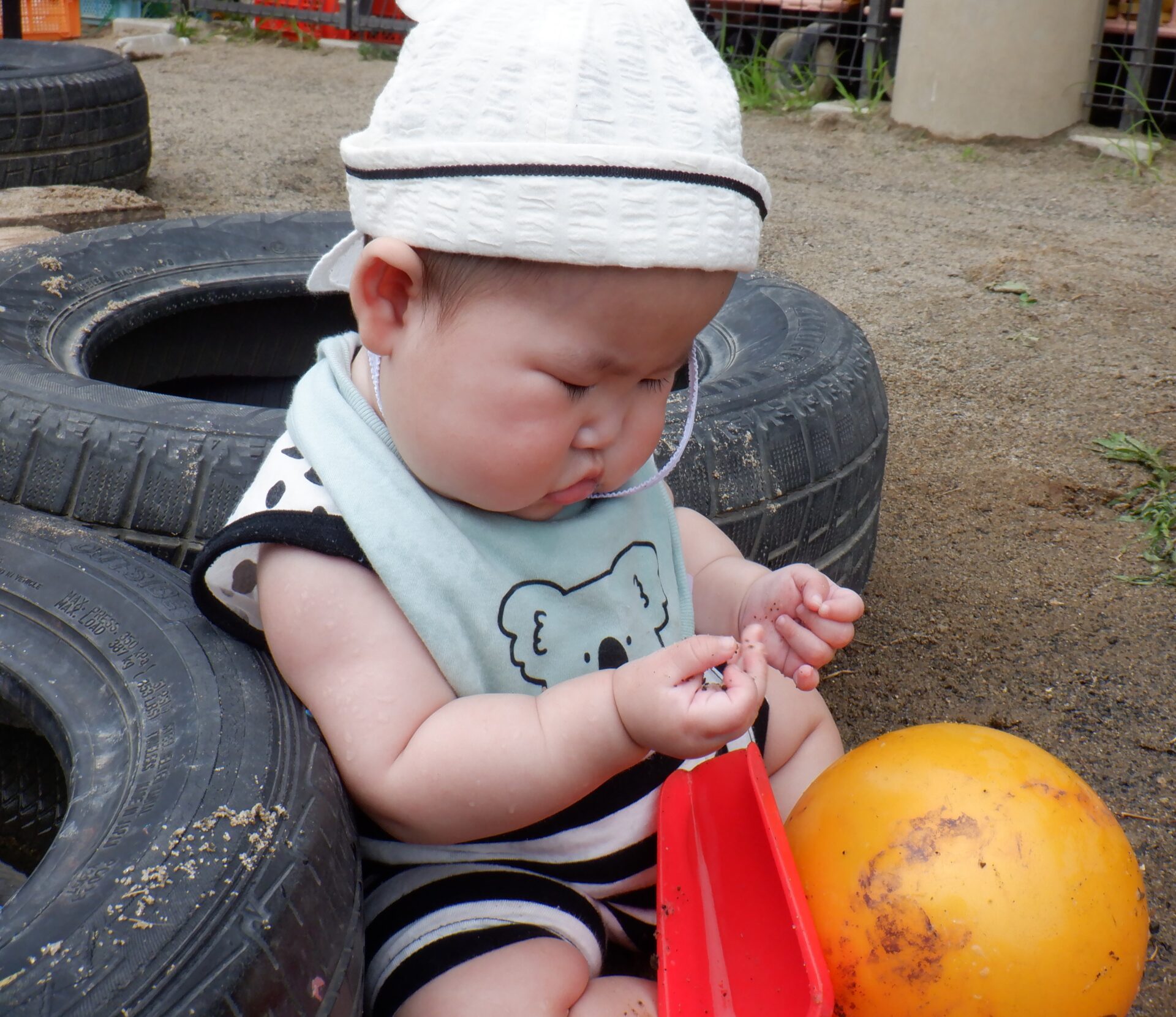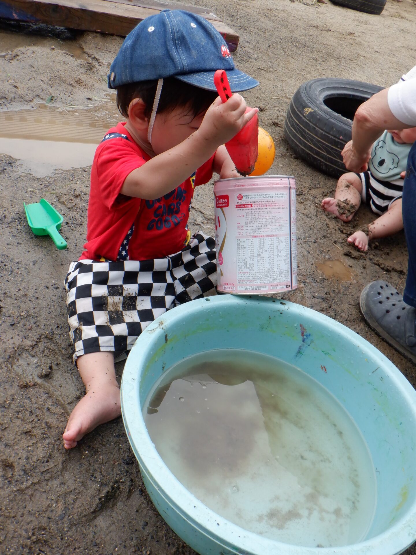天気の良い日は、戸外で水や泥んこ遊びを楽しんでいるあい組さん。