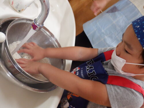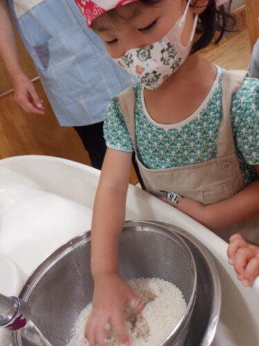 『豆ごはん』同様、お米を研ぐところから始めます。