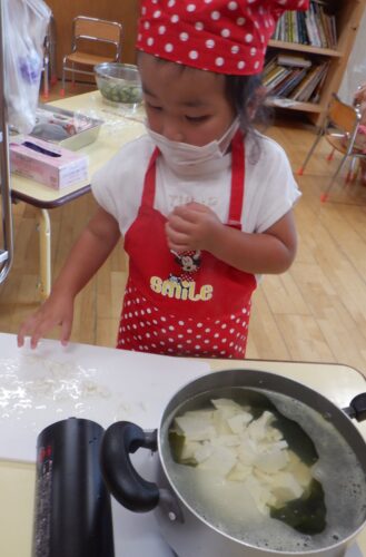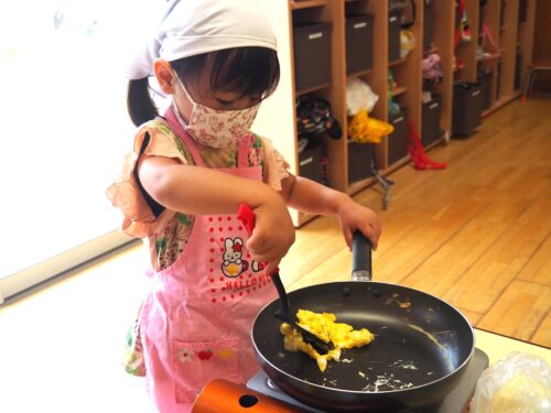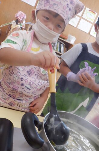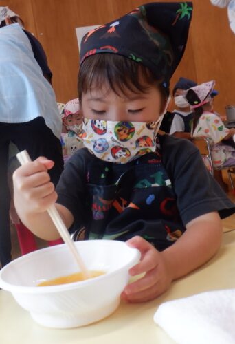 初めて火を使用してのお料理に、ドキドキしている子ども達でしたが何とか完成!!