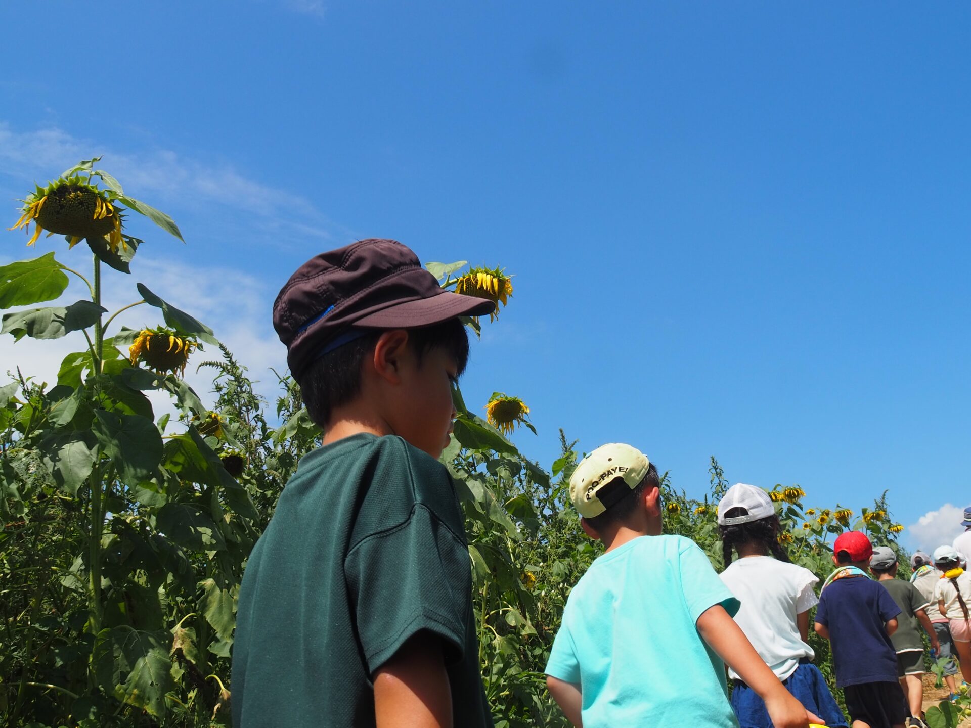 「黄色じゃないひまわりがあったよ!!」