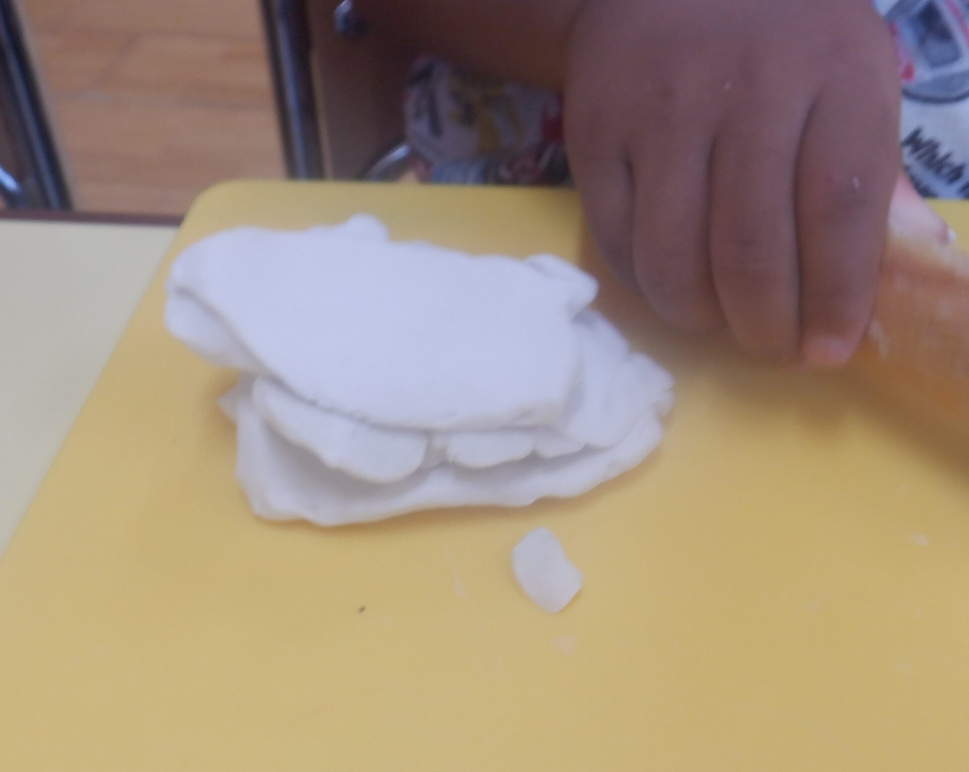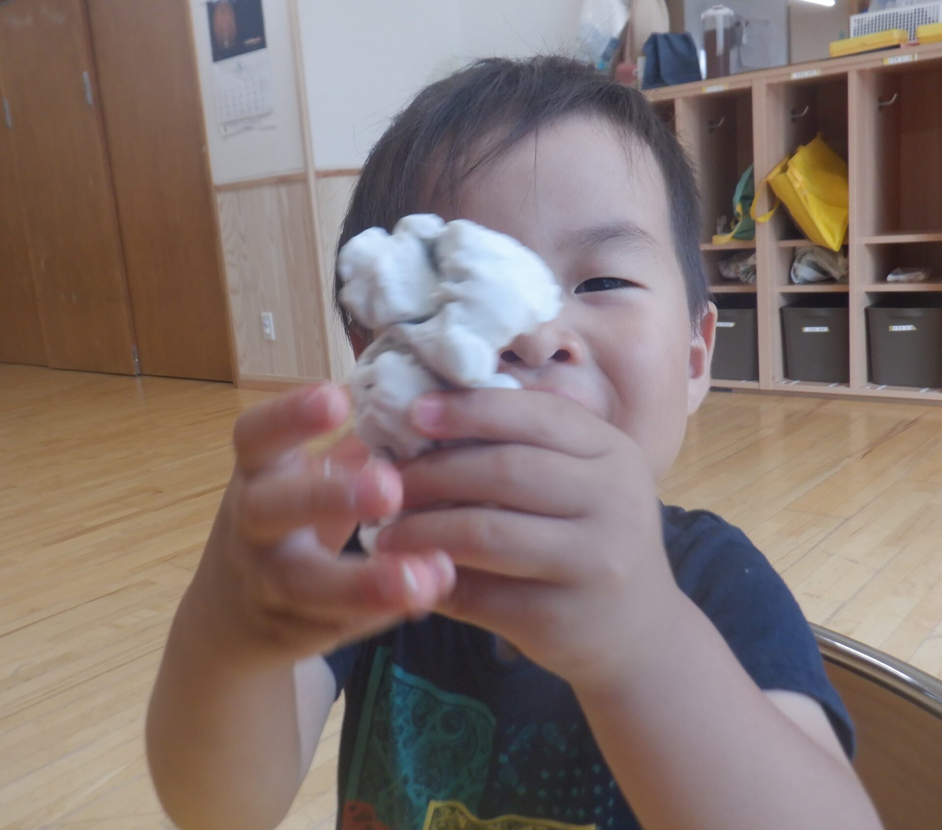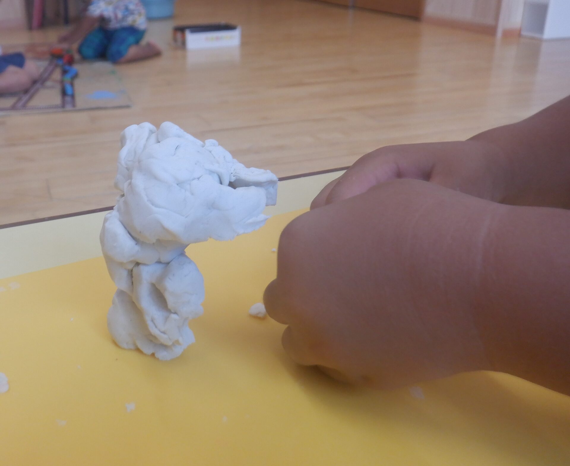 粘土を丸めたり、小さくちぎったものを飾りつけしたり、道具を使ってみたり・・・。