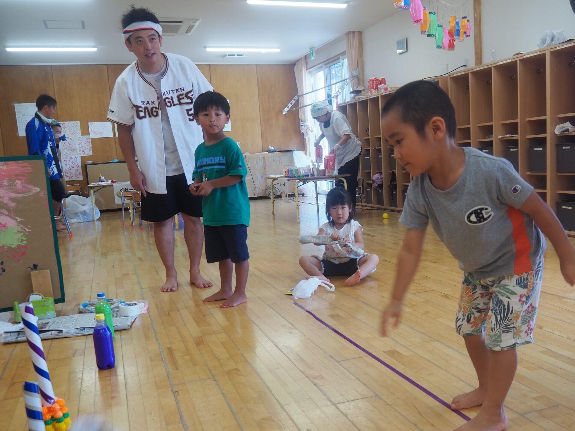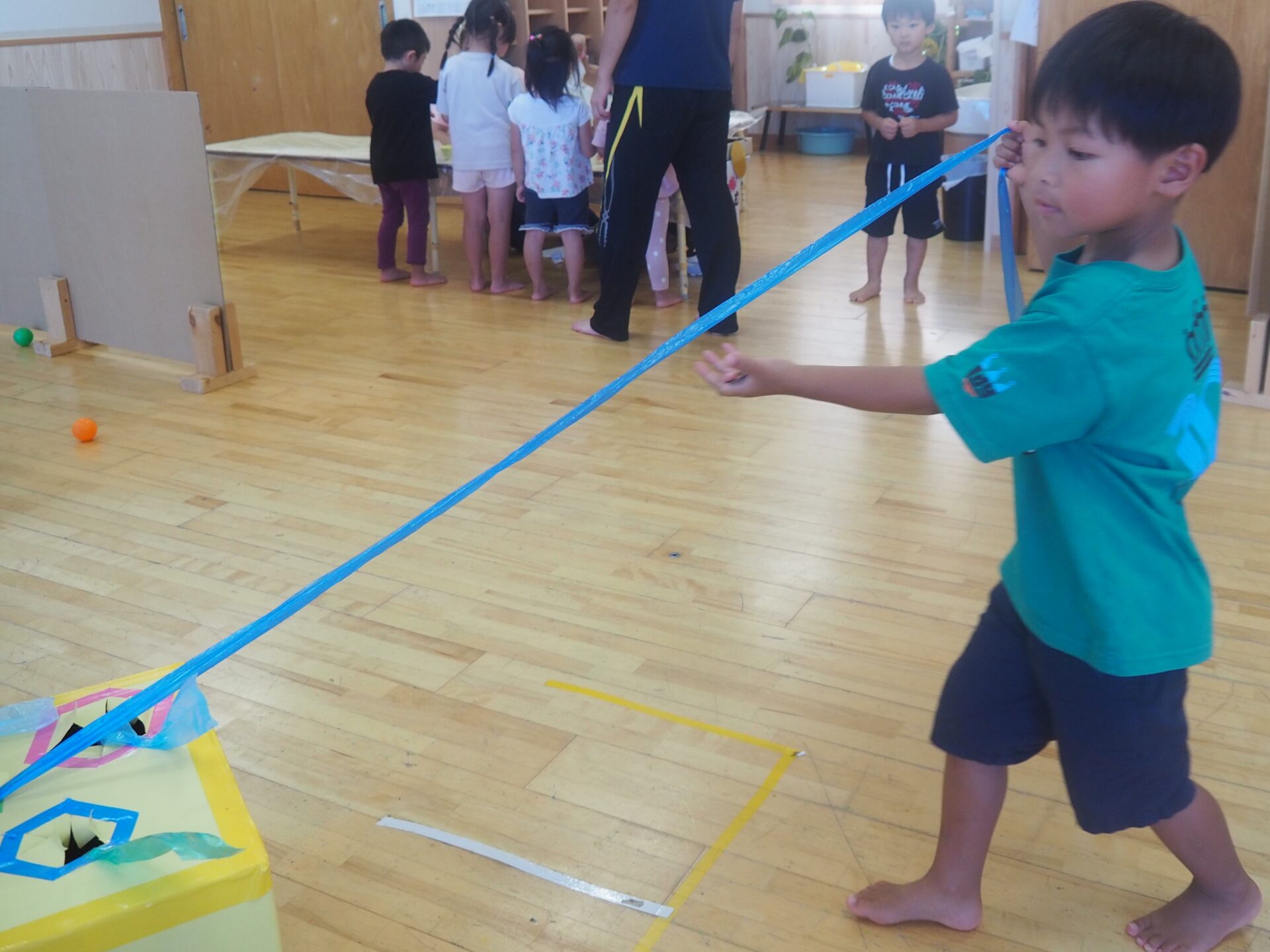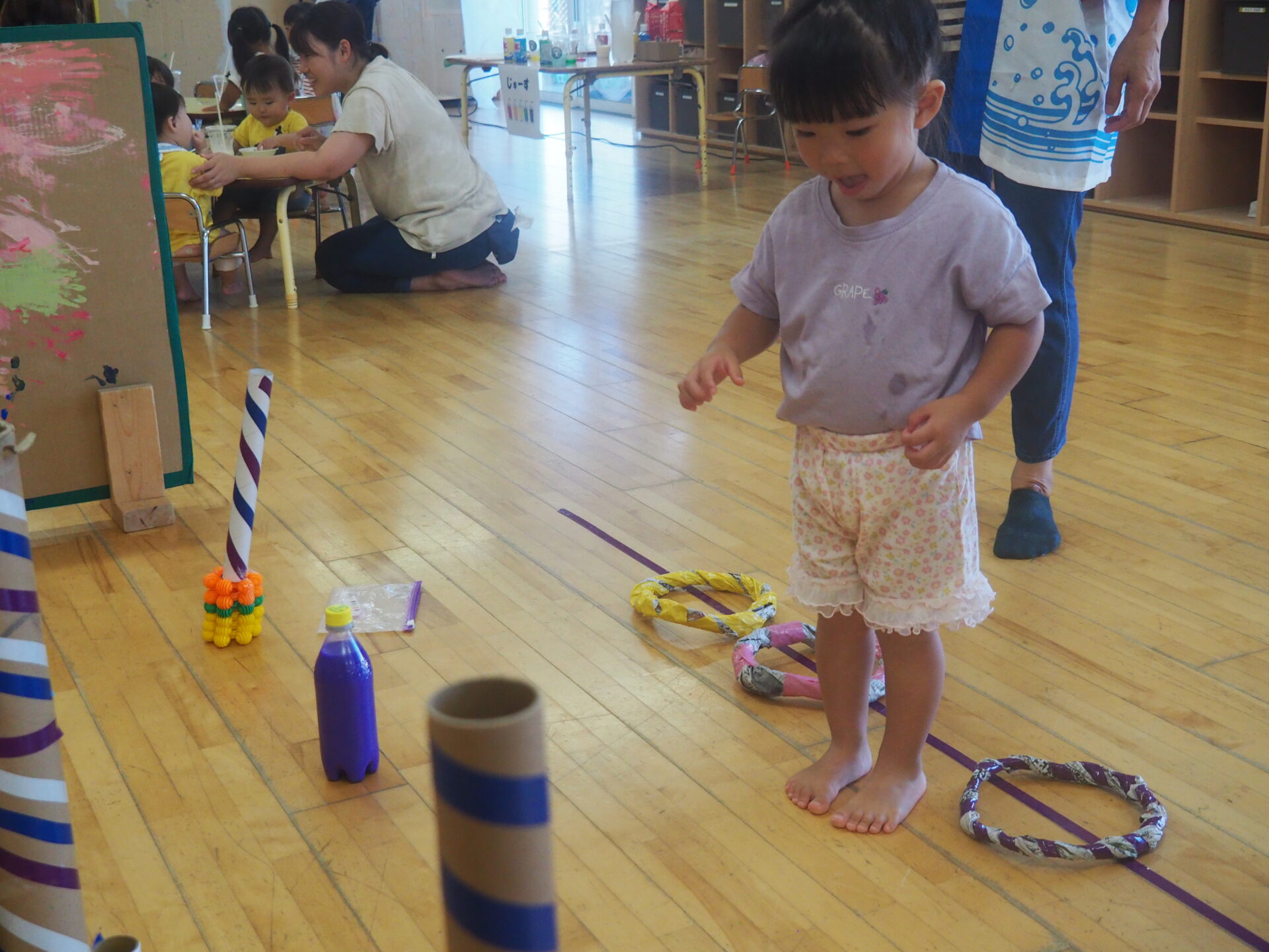 ④輪投げ(以上児さんは自分で輪っかを作りました!)