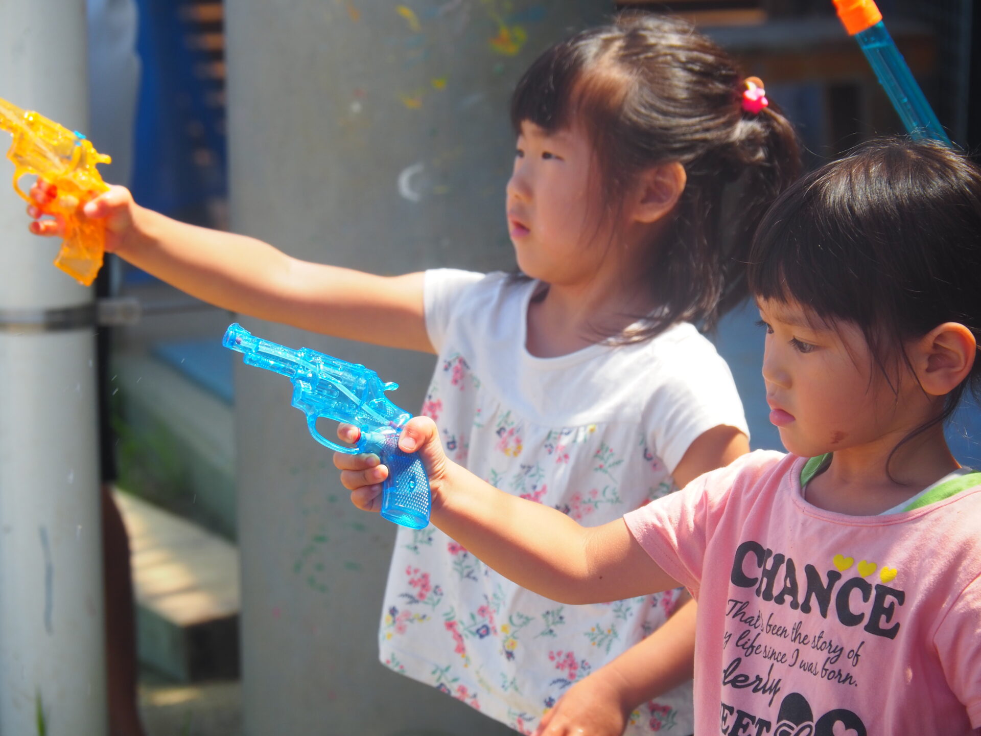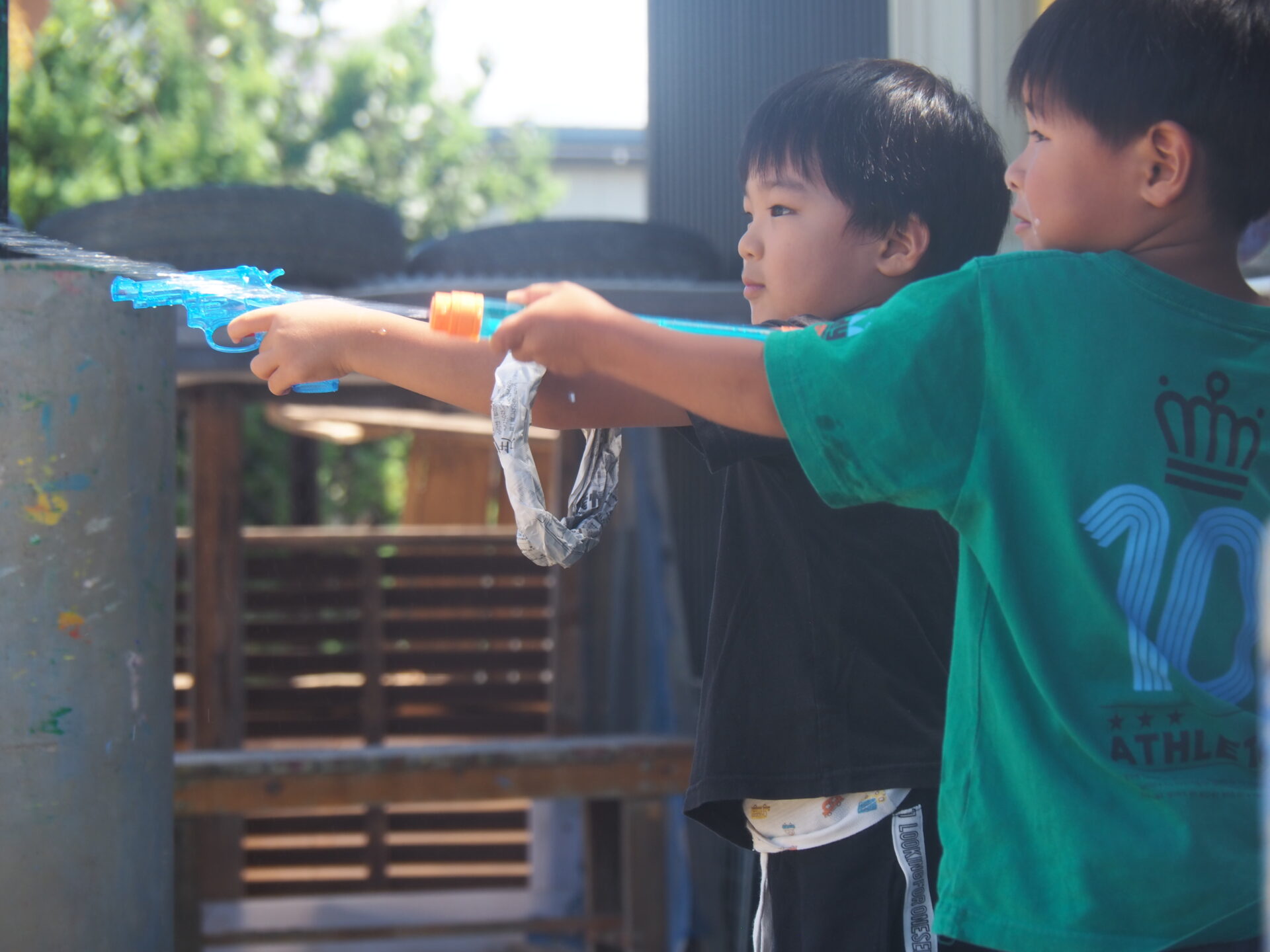 ③水鉄砲で的当てゲーム(的を狙っている表情がカッコいい!)