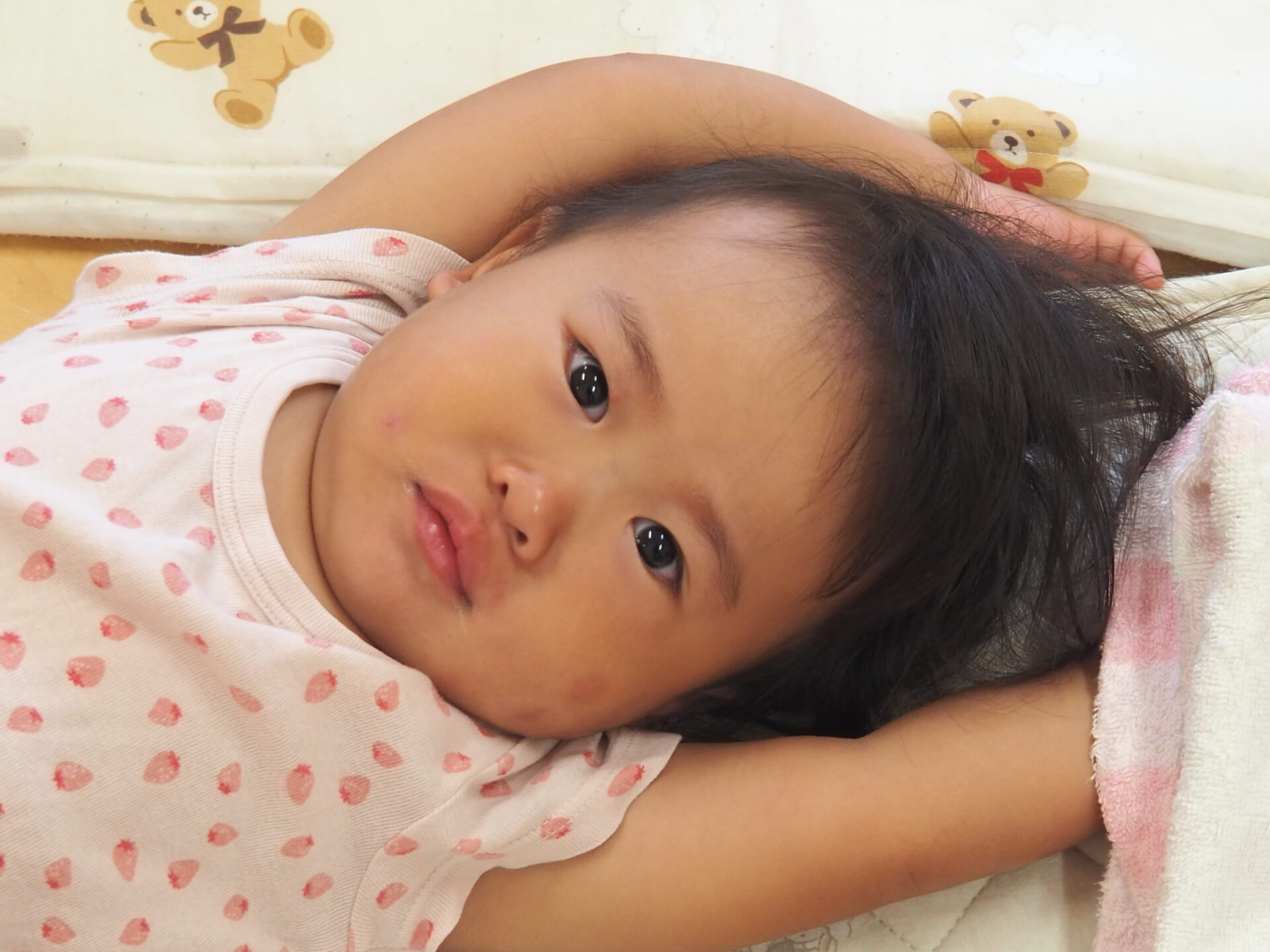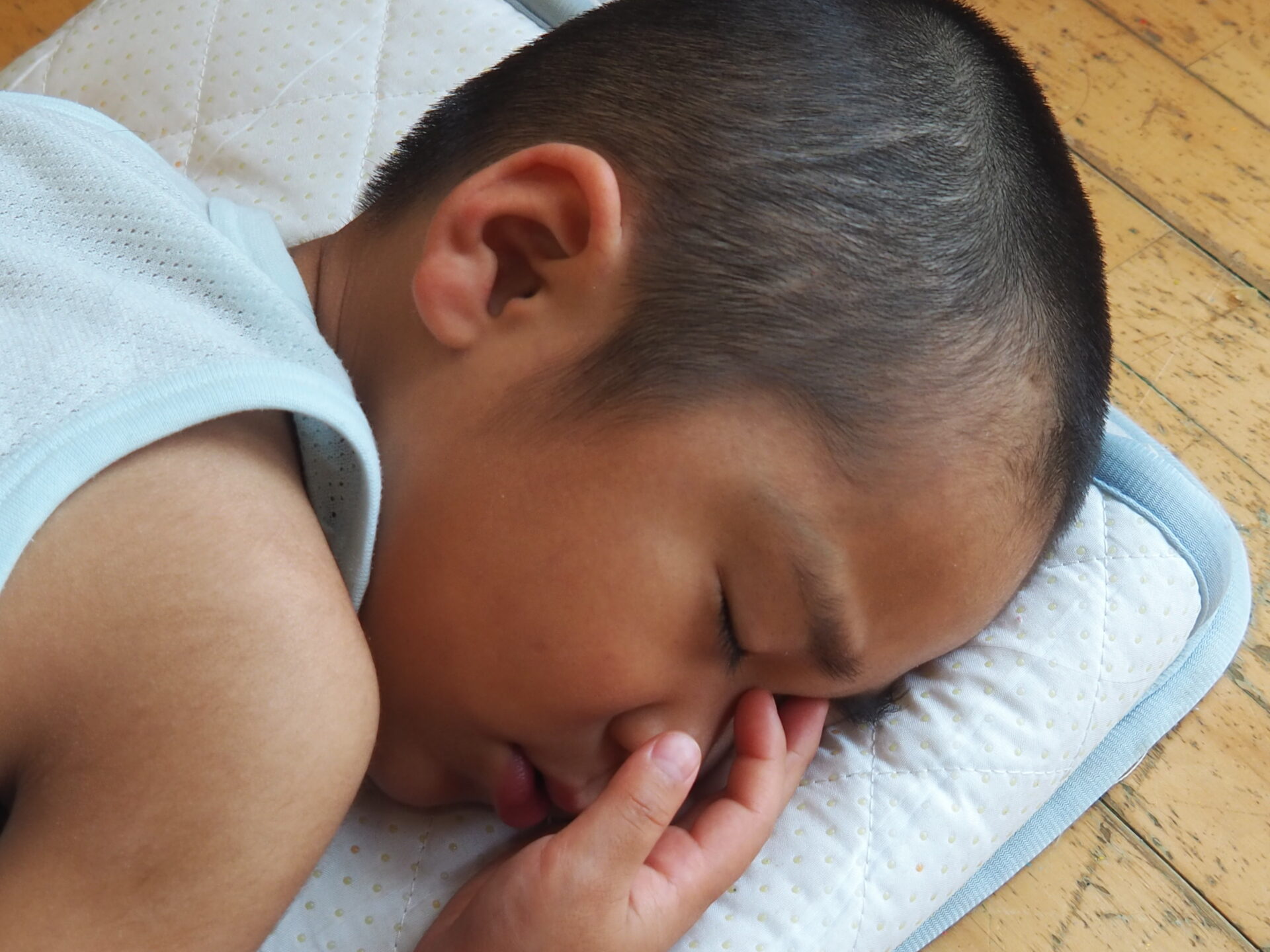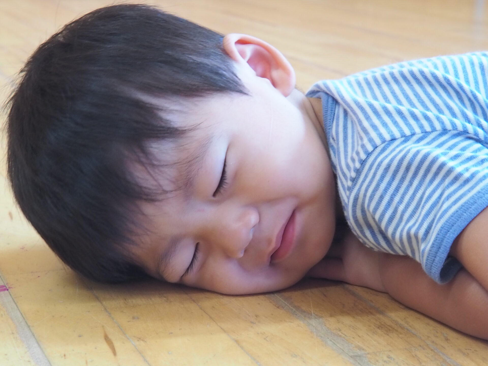 一度起きても、まだ床の上をゴロゴロしている子。