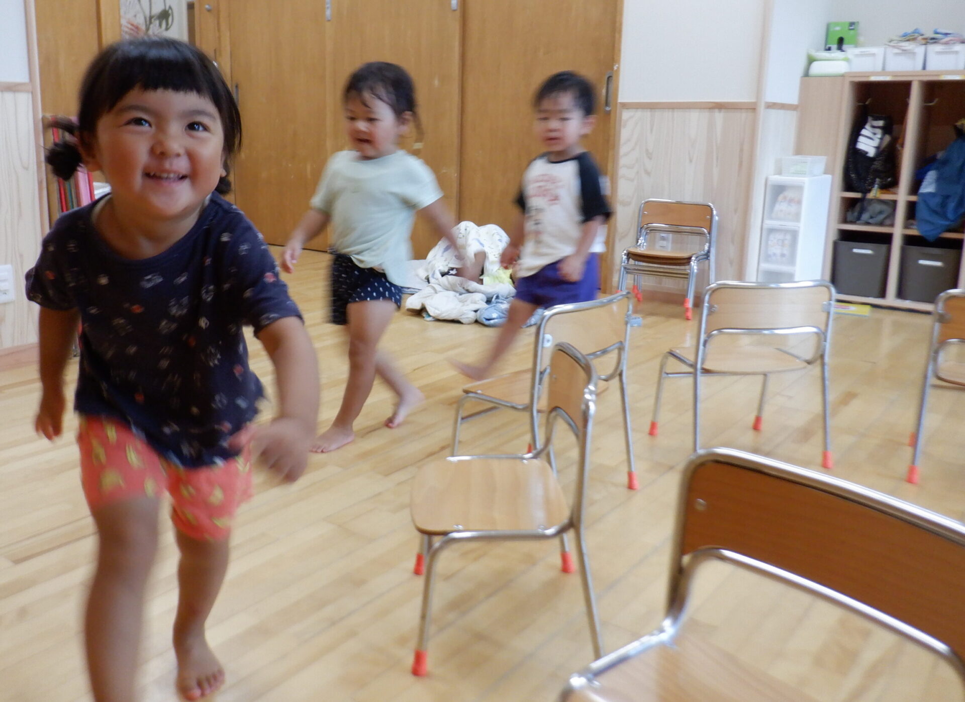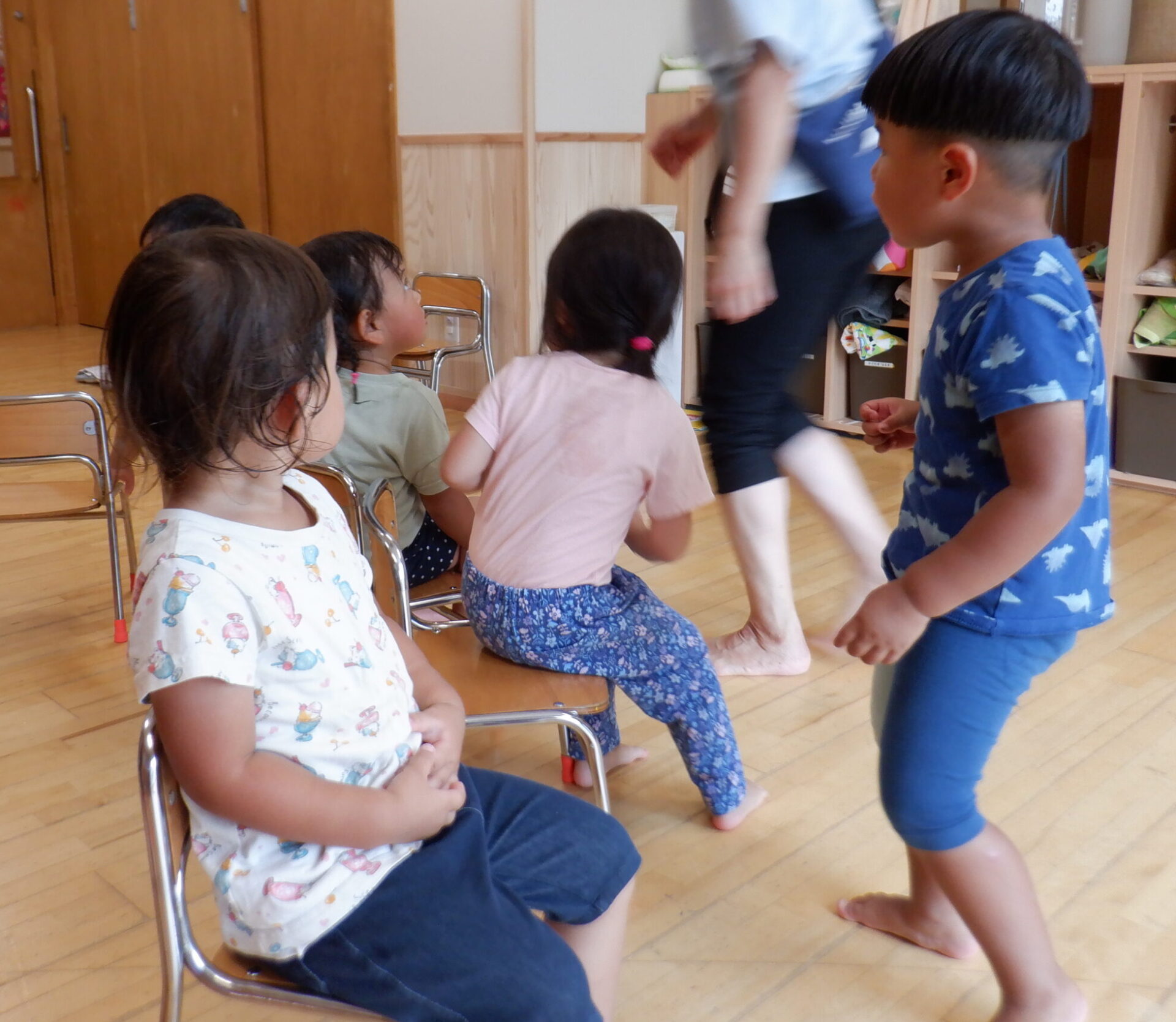 初めて挑戦するイスとりゲームのルールを真剣に聞いていますね。