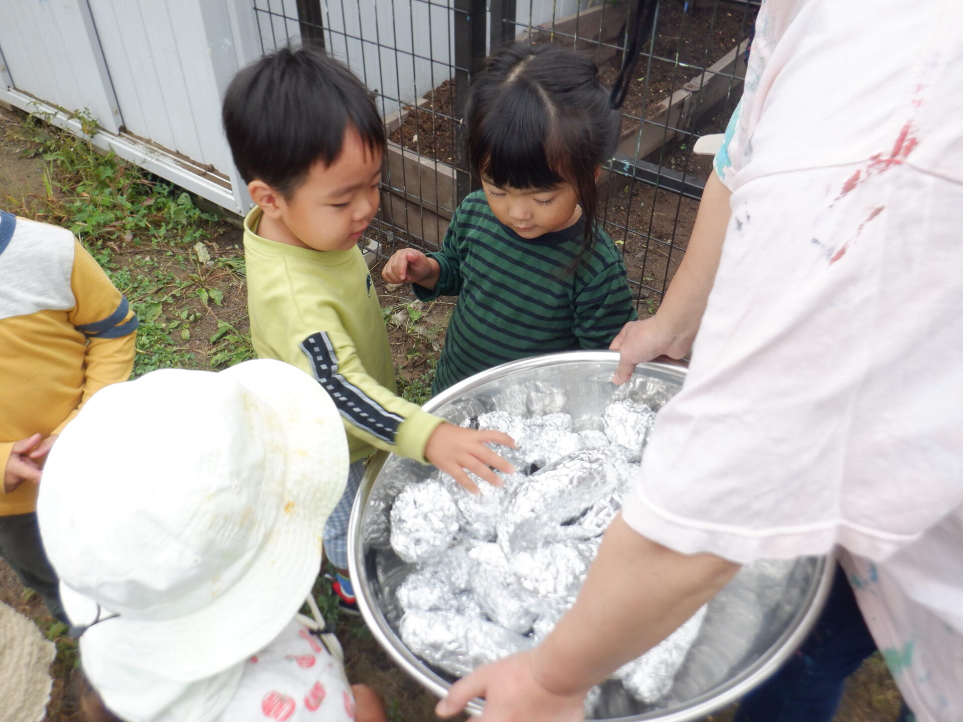 畑で採れた『さつまいも』をいよいよ焼いて食べます。