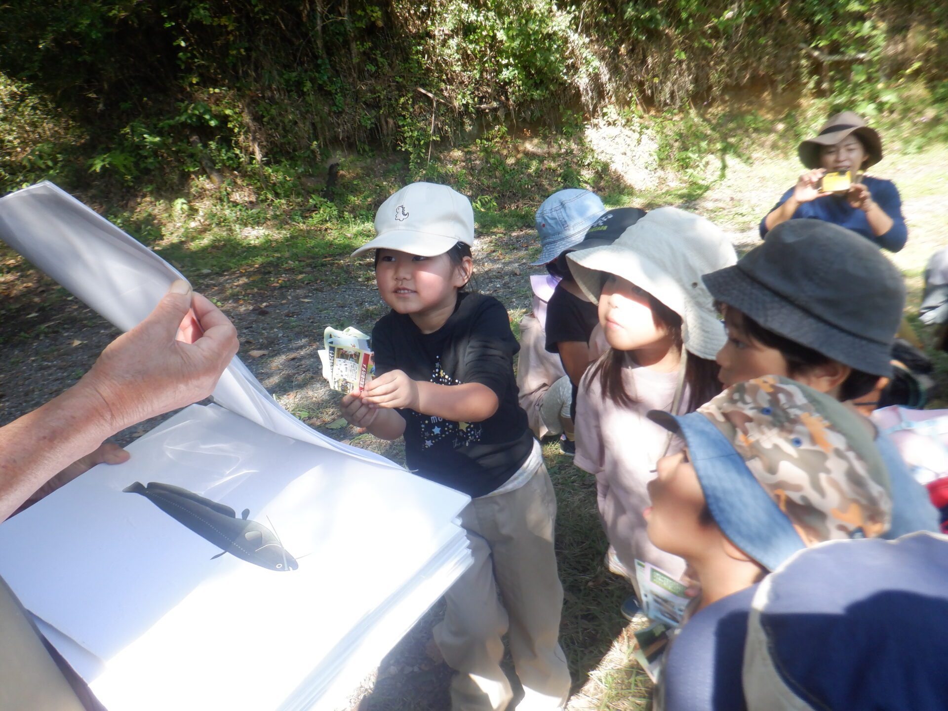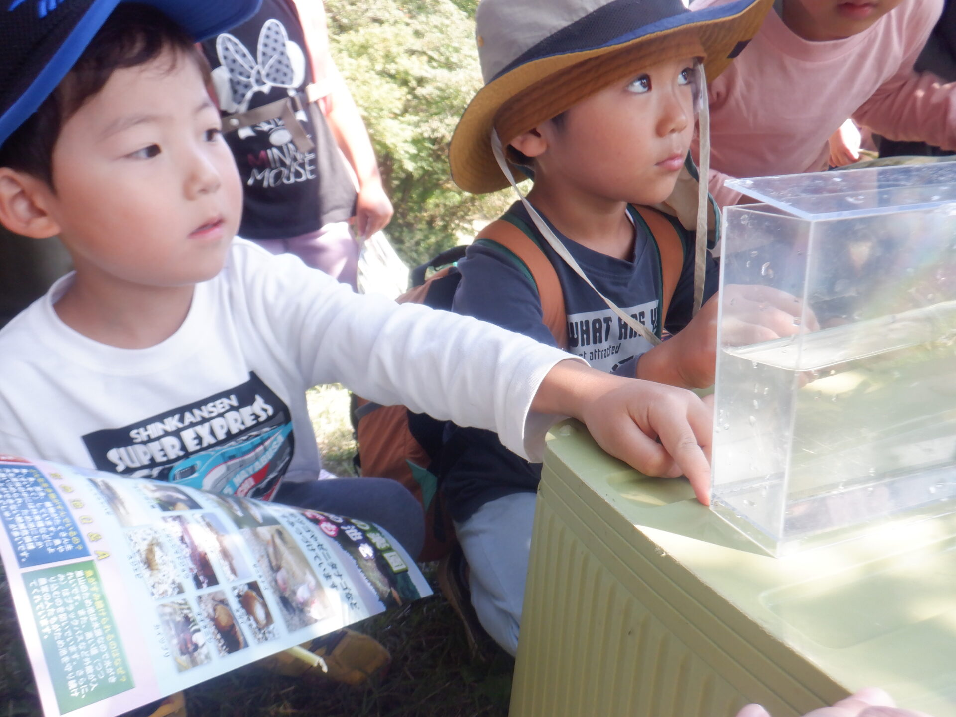 もらったプリントを見ながら水槽の中を観察したり、