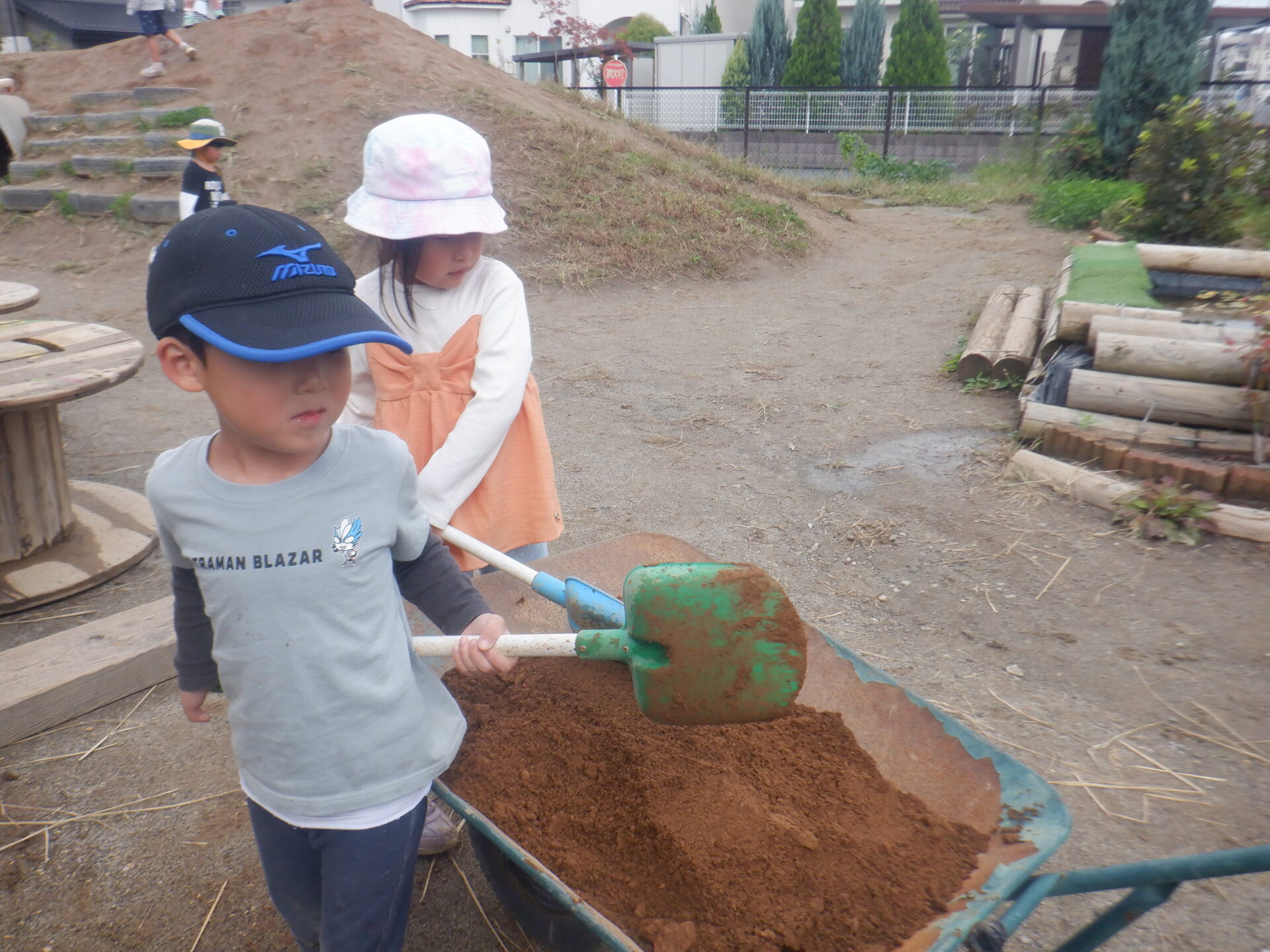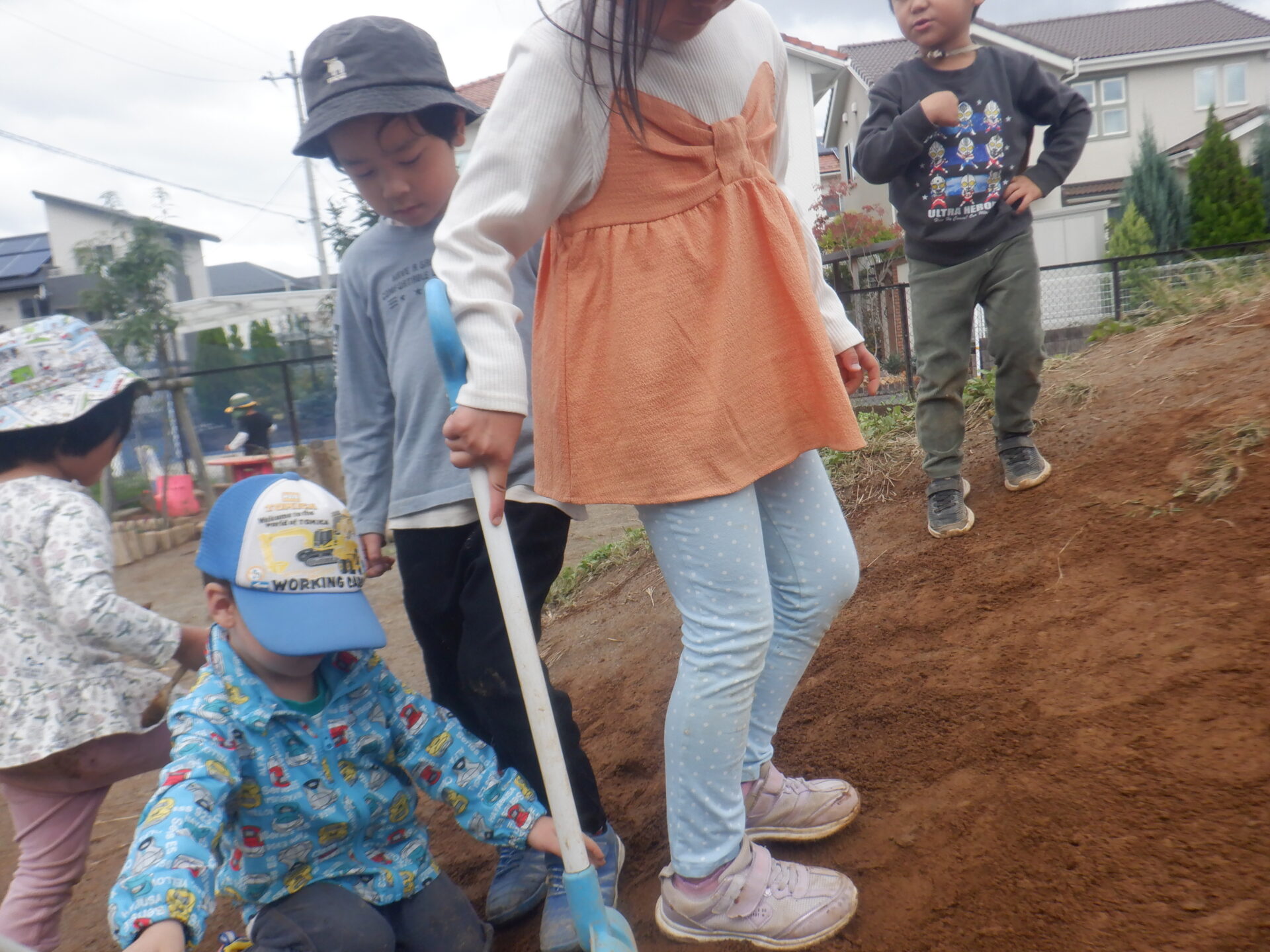 「坂のぼこぼこを直すんだ!」と楽しそうに話す子ども達。