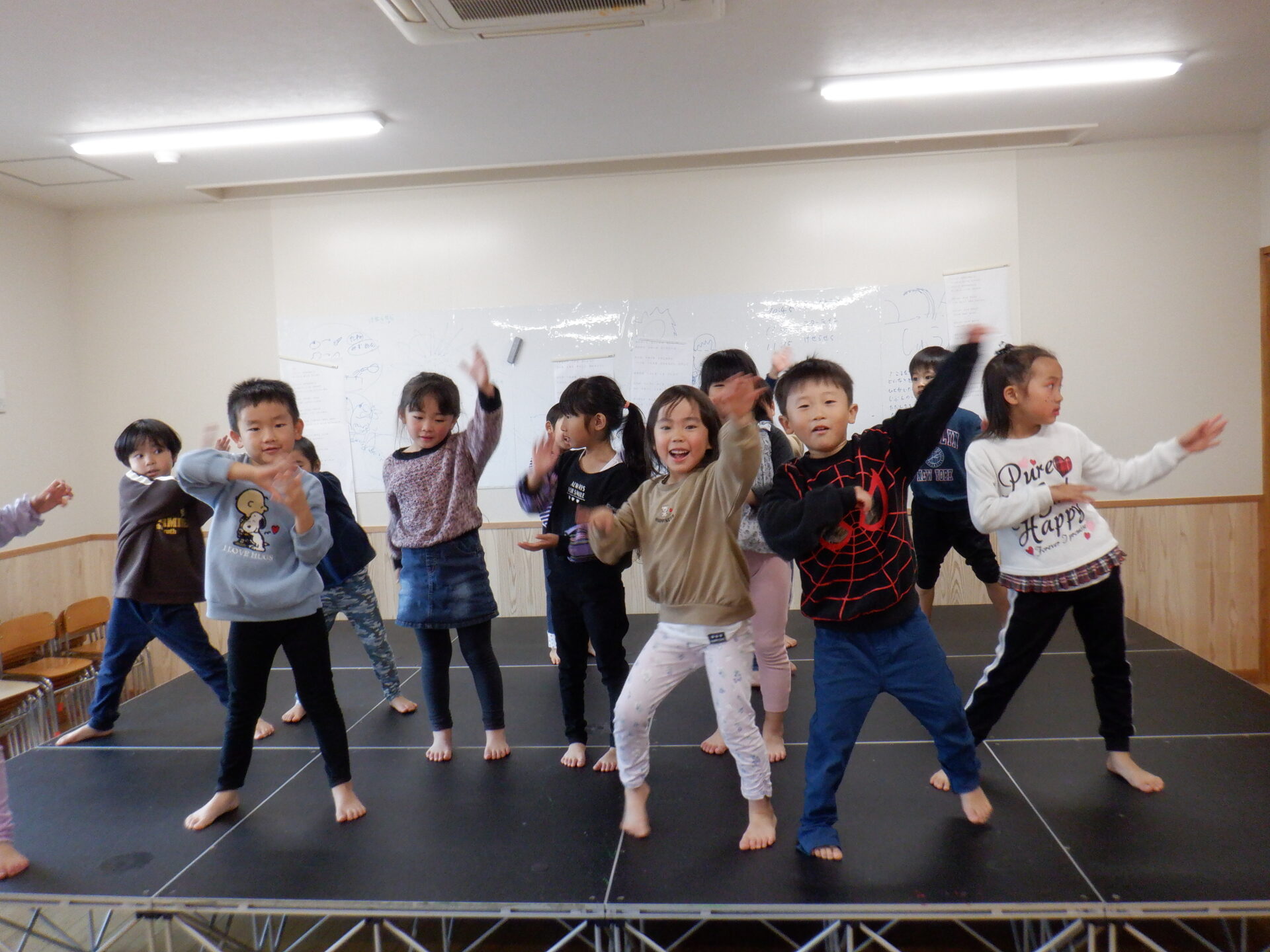 今日もステージの上で歌ったり踊ったりする子どもたち。