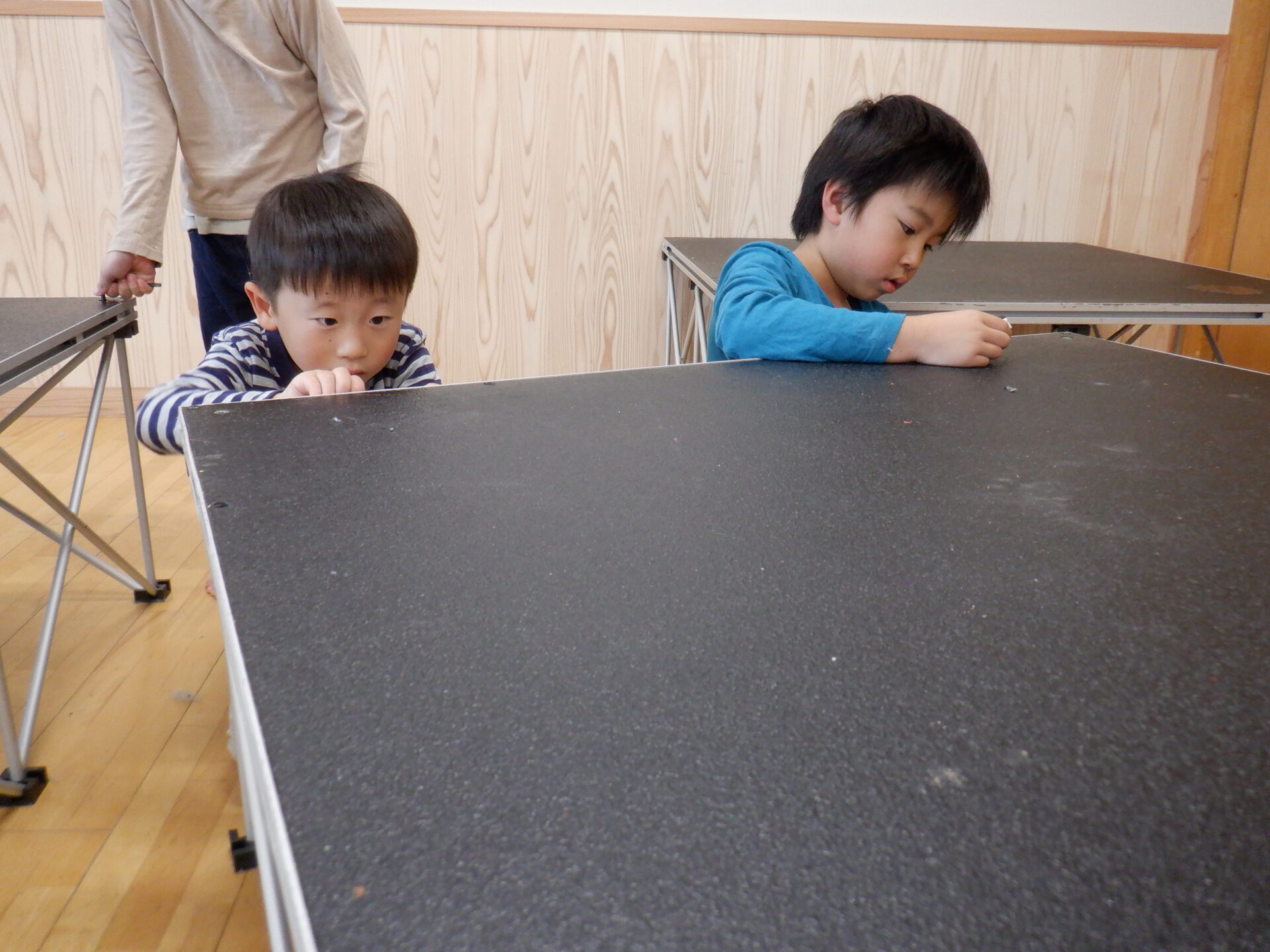 お昼寝明け、保育士がステージを片付けていると…。