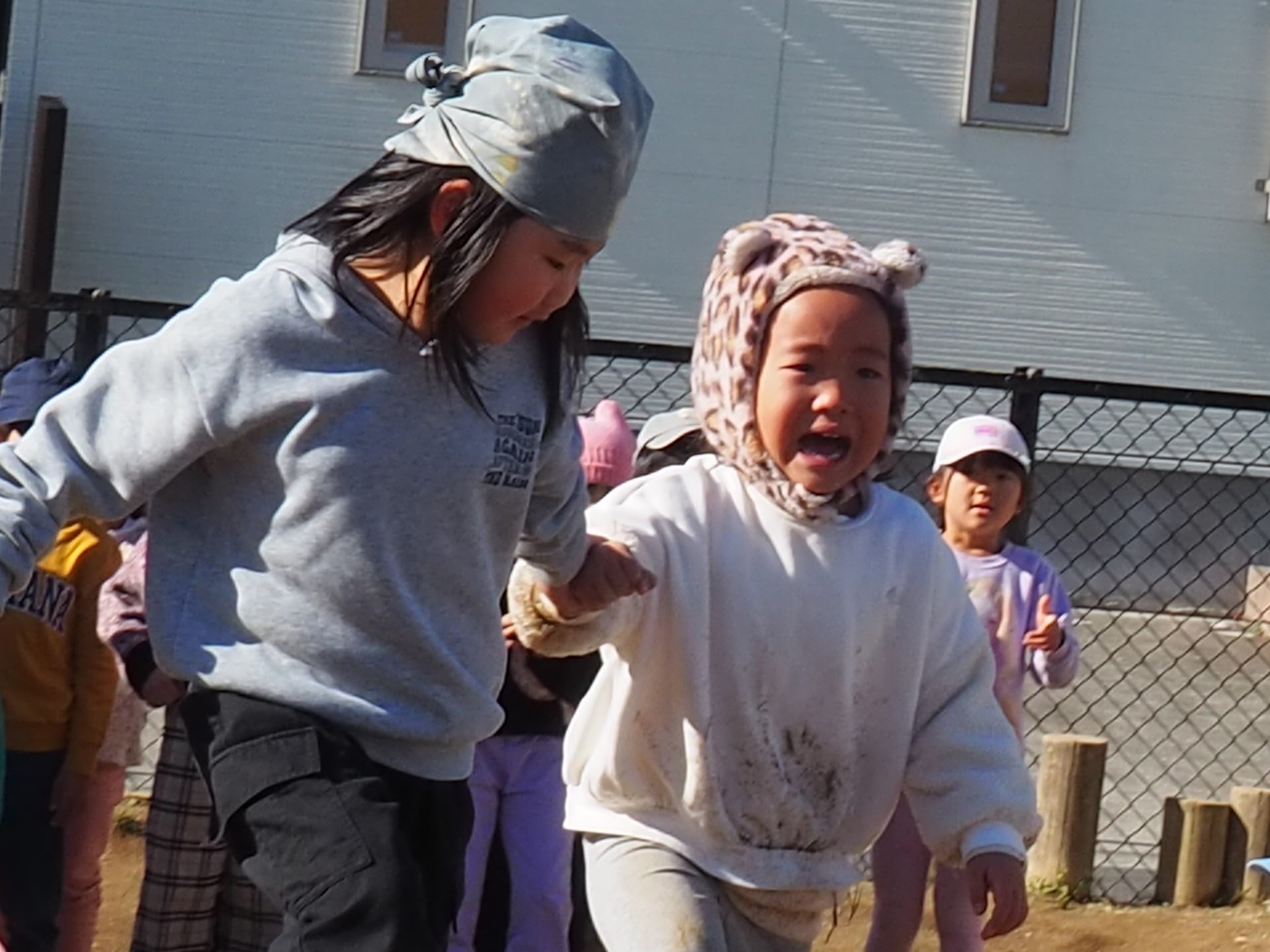 その裏で、転んで泣いているお友だちにそっと寄り添い、手をつないでゴールへ導いてくれた子もいます。