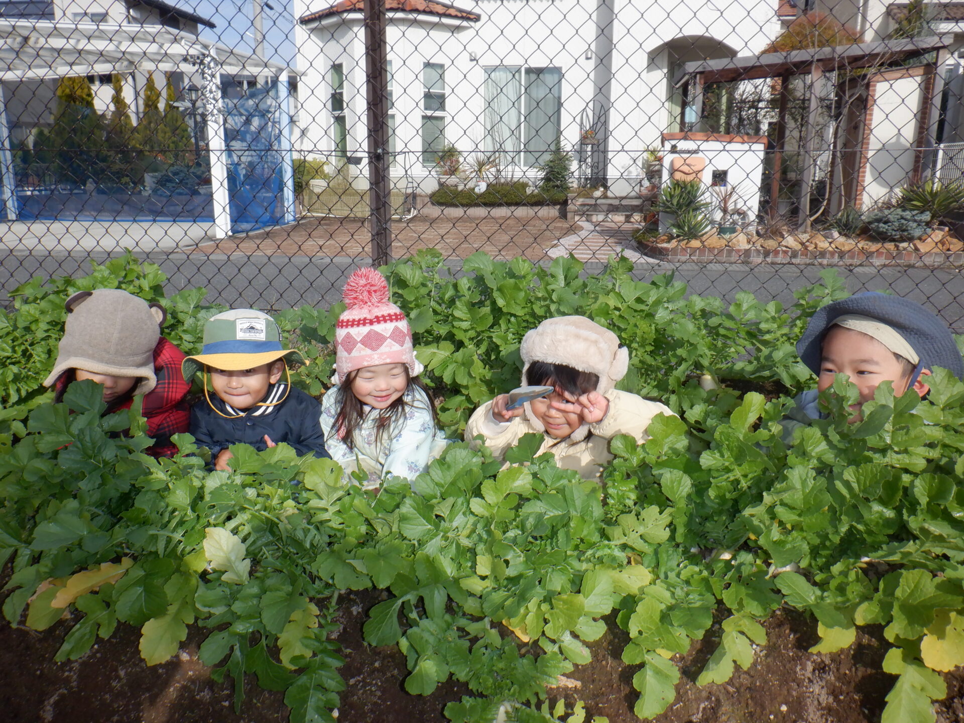 だいこん畑の真ん中で