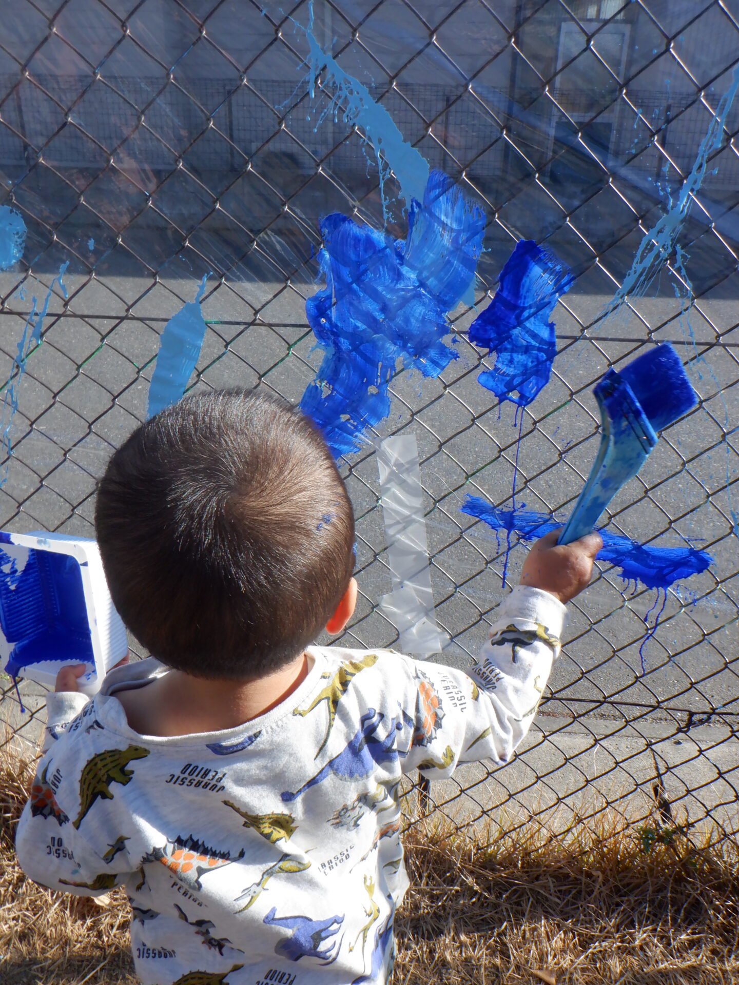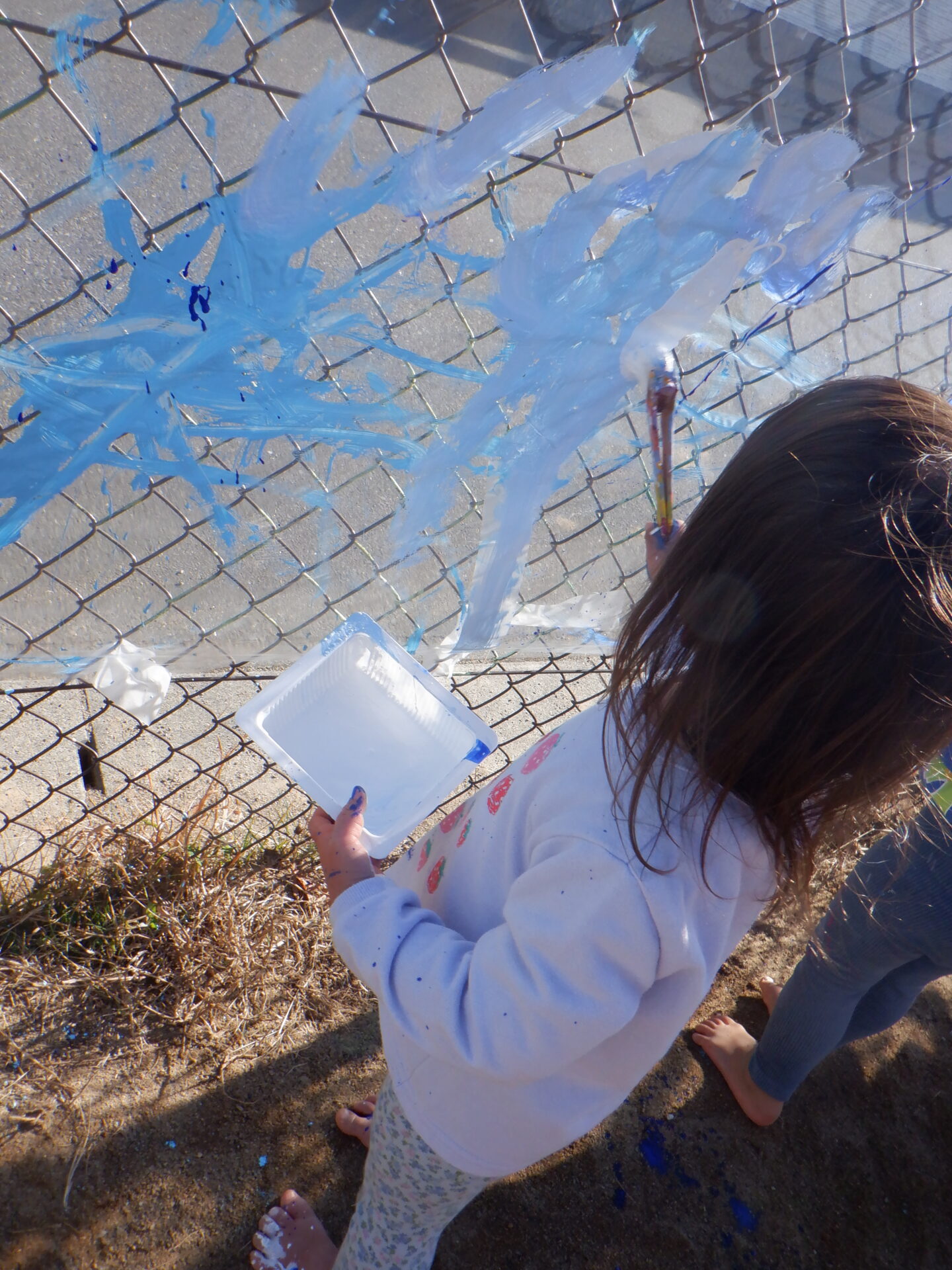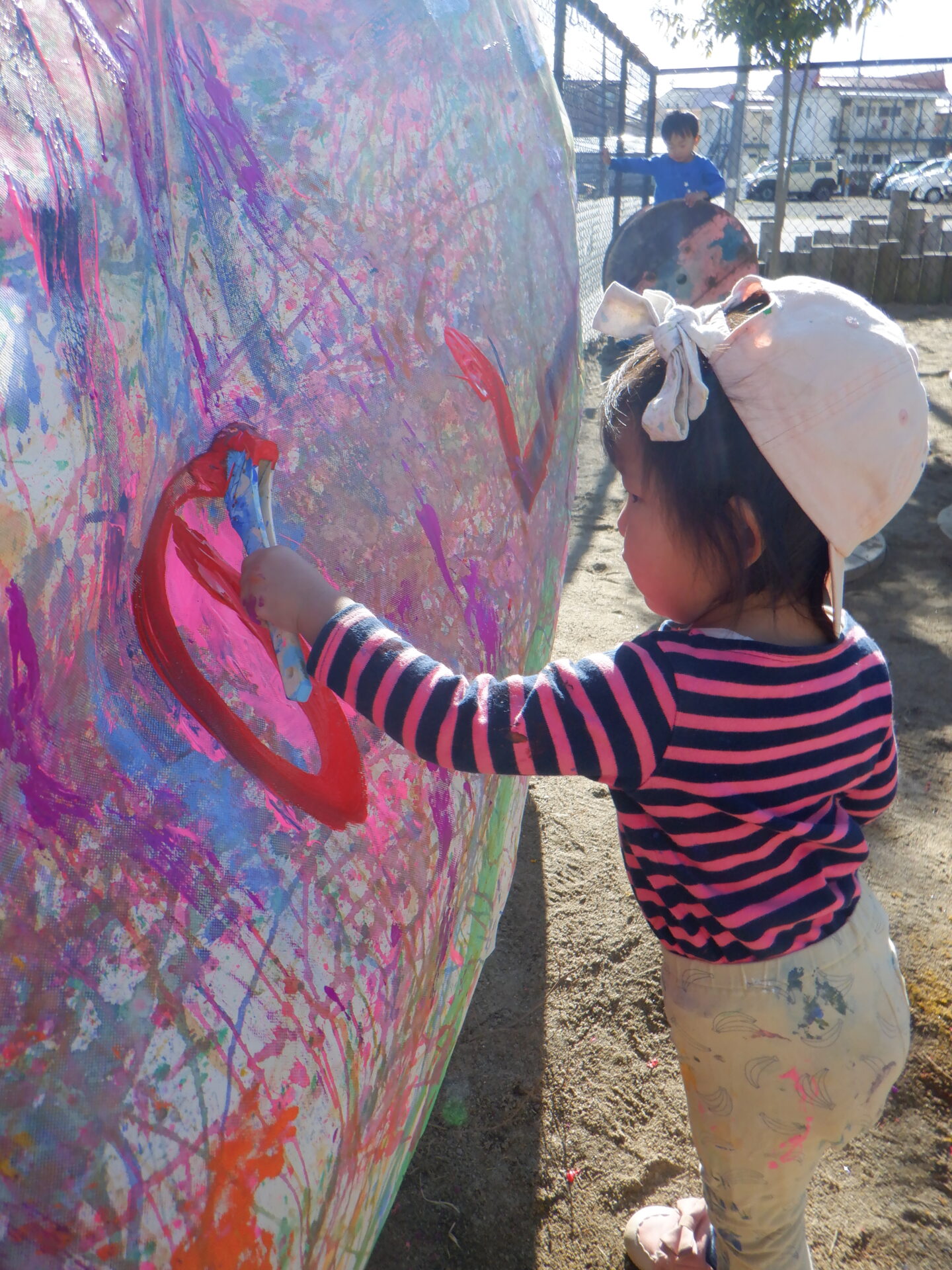 青空の下でのびのびと、色遊びを楽しみました。