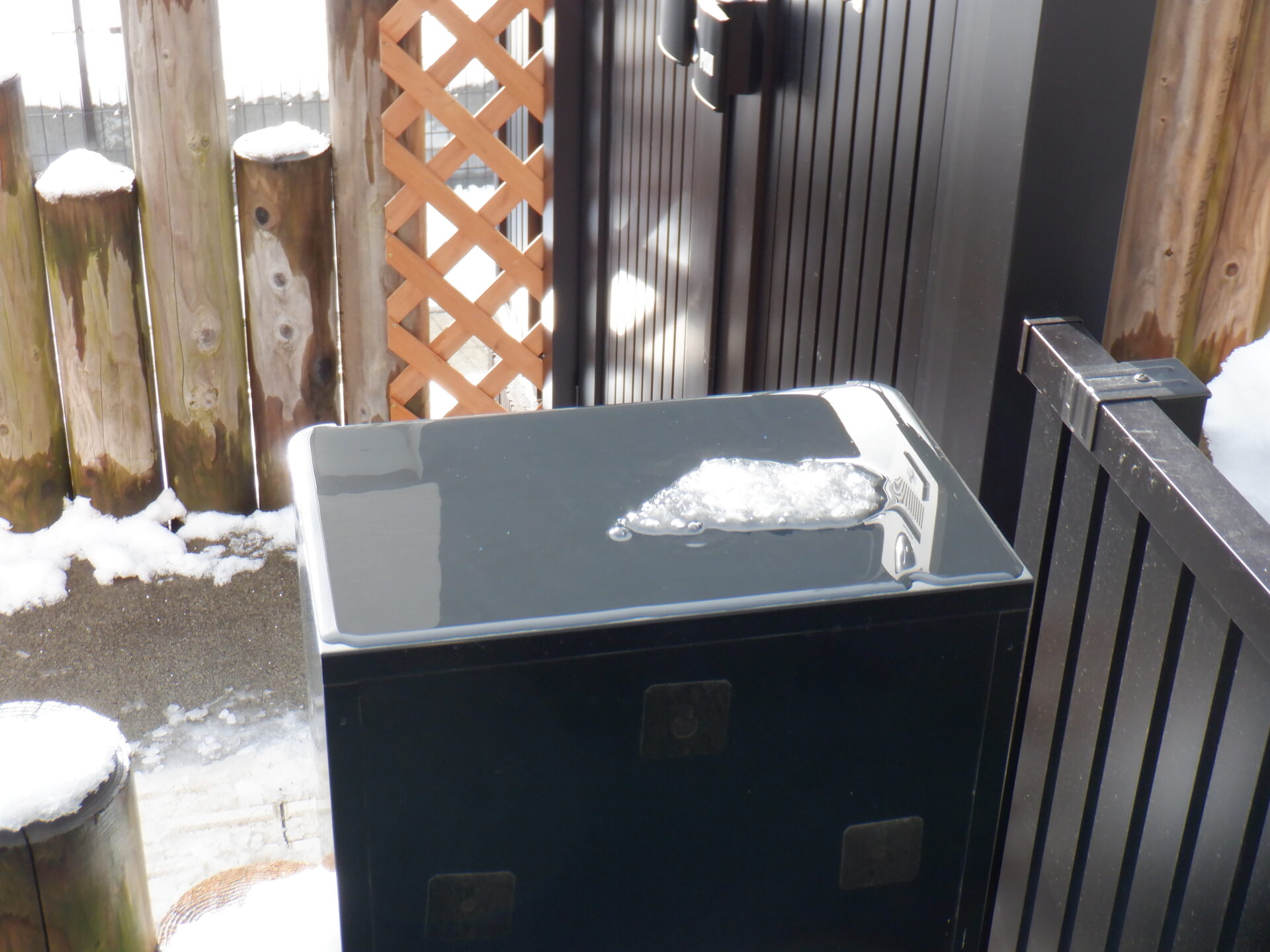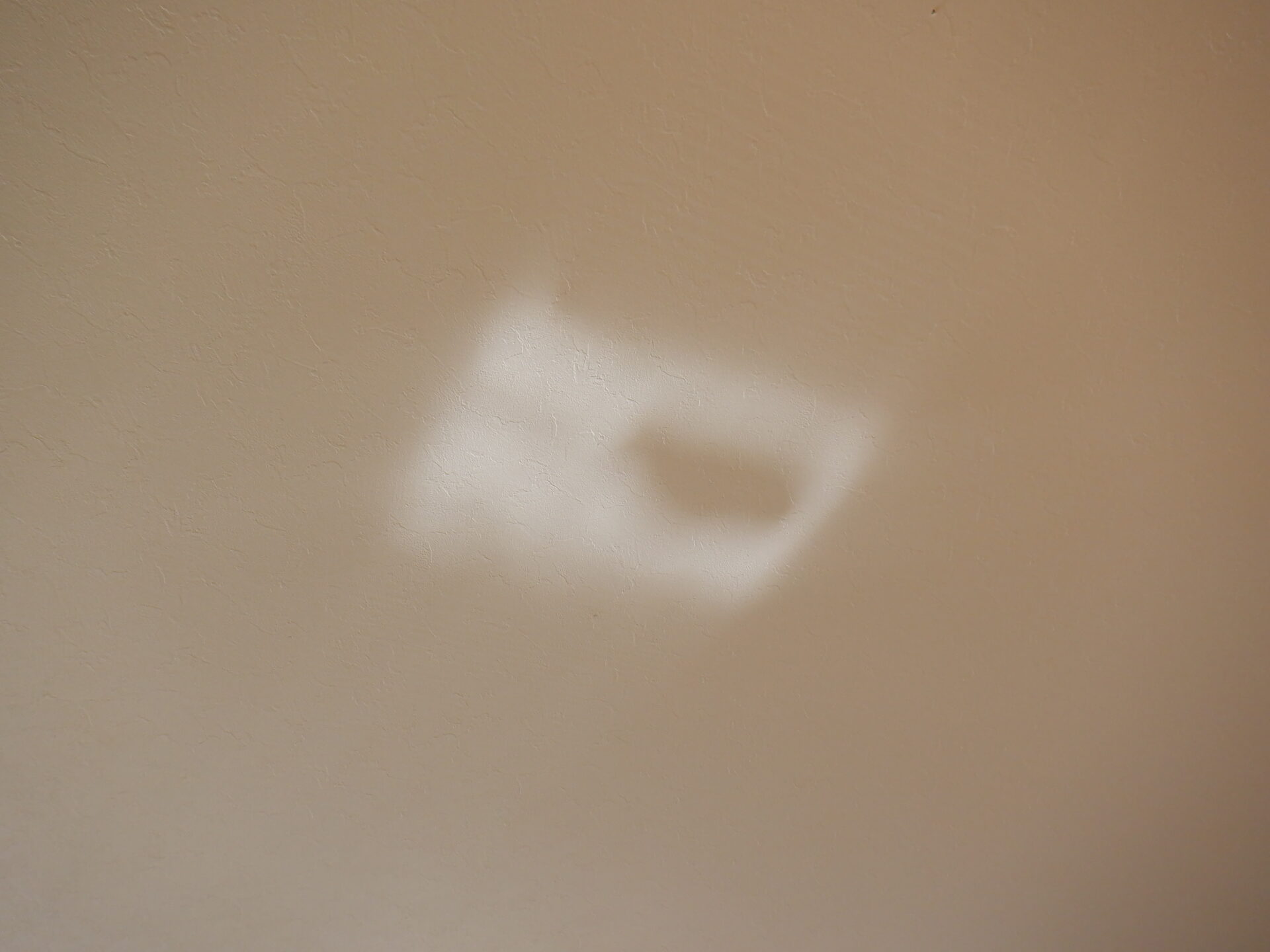 発見!正体は、外にあるポストの上の水が反射して、光っていたんです。