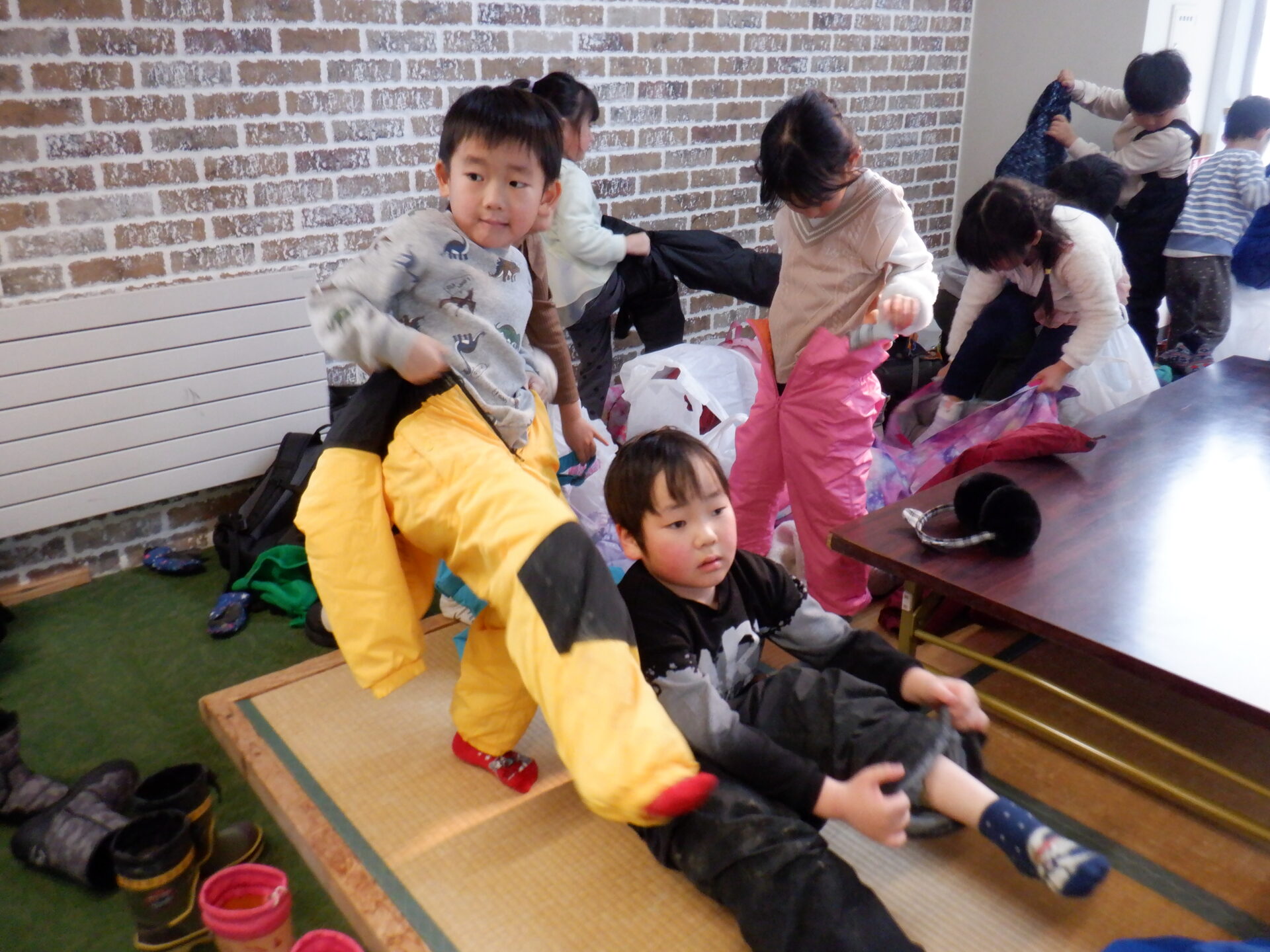 鬼首スキー場につくと沢山積もっている雪に目を輝かせていました。