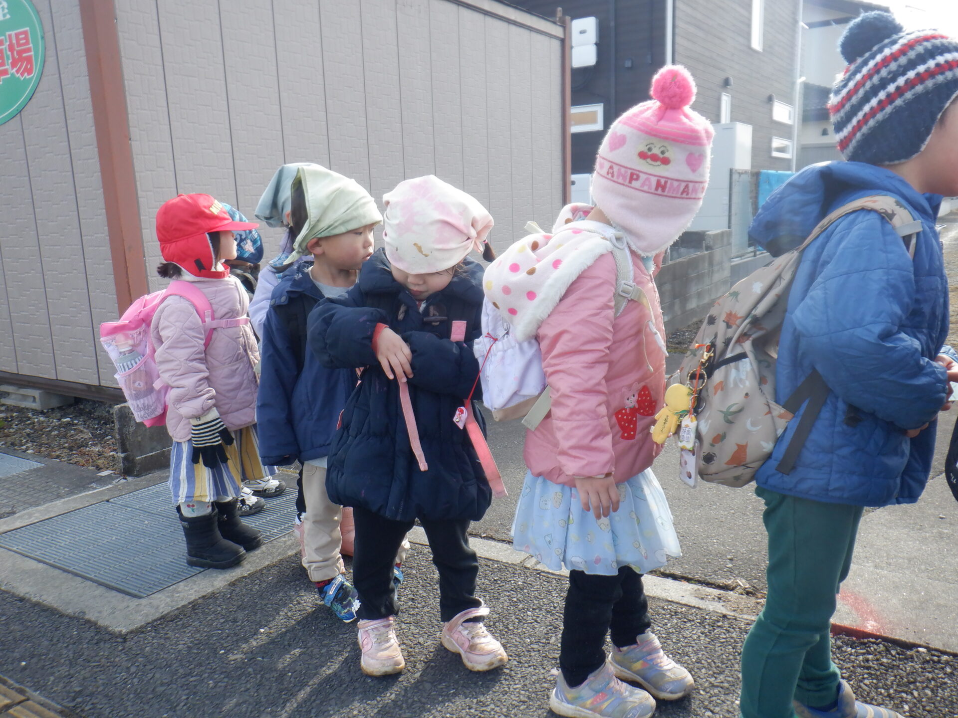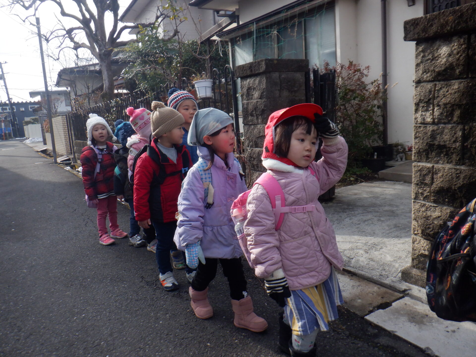 2025.01.31 ひかり組(3歳児) ブログ 寒い日でも・・・歩く! 寒い日でも、 テクテク歩く。 みつけた! みつけた! 不思議なお家。 「これは、神様のお家なんだよ。」 願いことが叶うといいな。 一覧へ戻る
