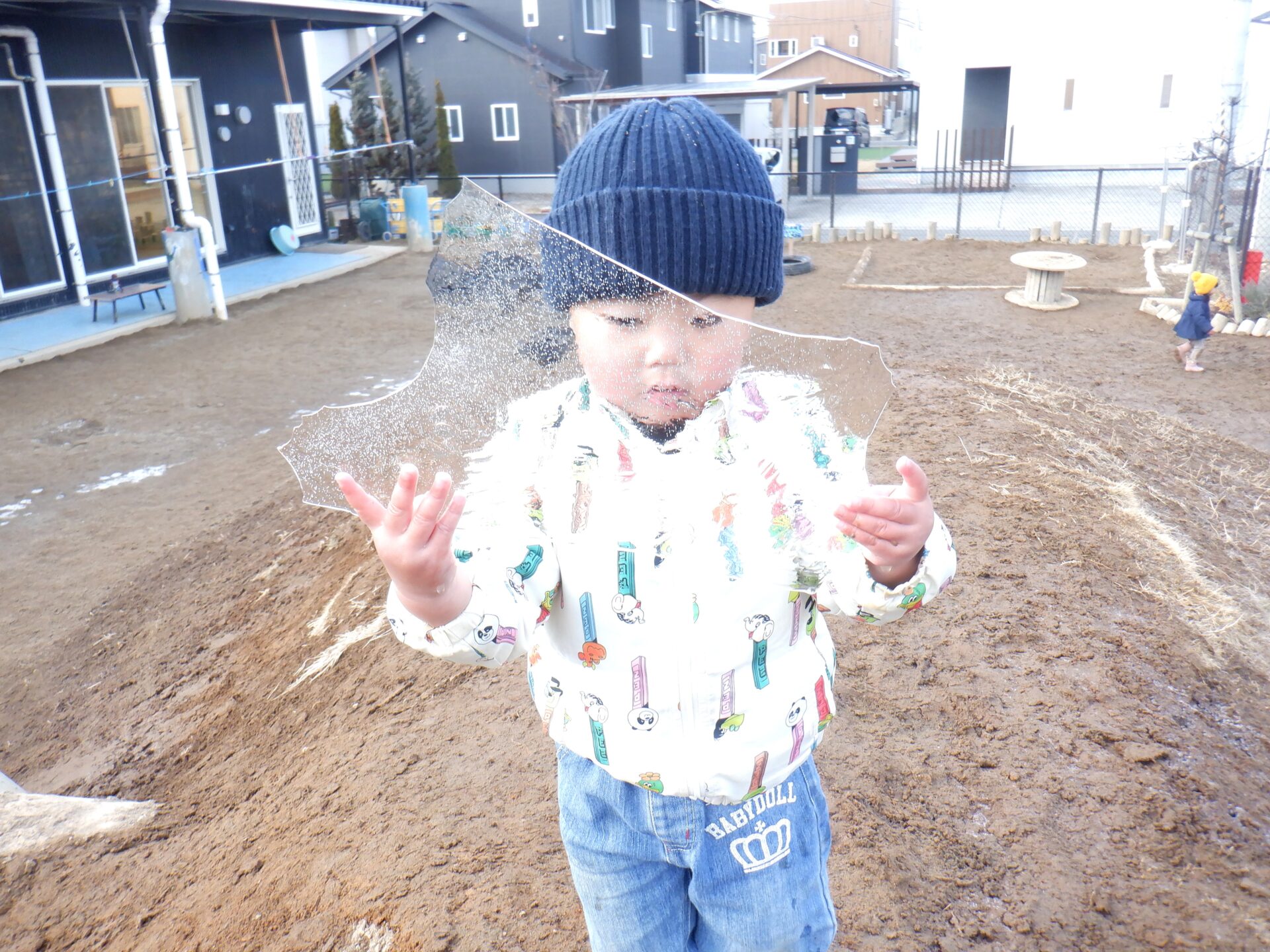 2025.02.04 しずく組(1歳児) ブログ 「まーぜーて!」 以上児さんの園庭に行き遊んできました。 土管に入ったり・・・。 大きな氷を見つけたり・・・。 コイルをキッチンに見立てて料理を作ると・・・。 「完成!」 「いいよ、食べて」と ごちそうしてくれました。 また行こうね♪ 一覧へ戻る