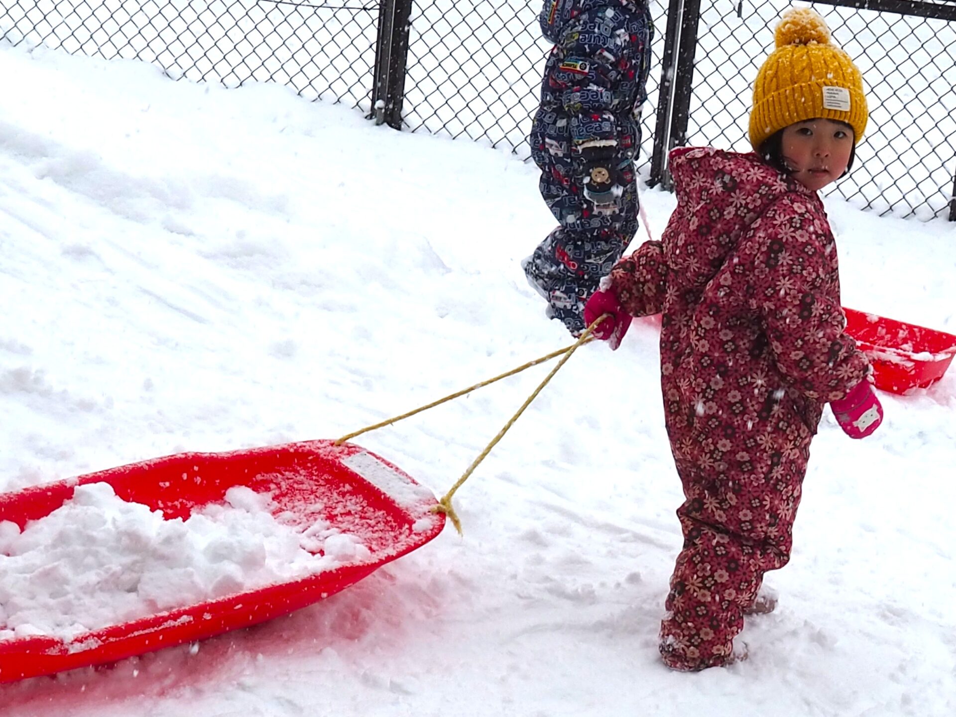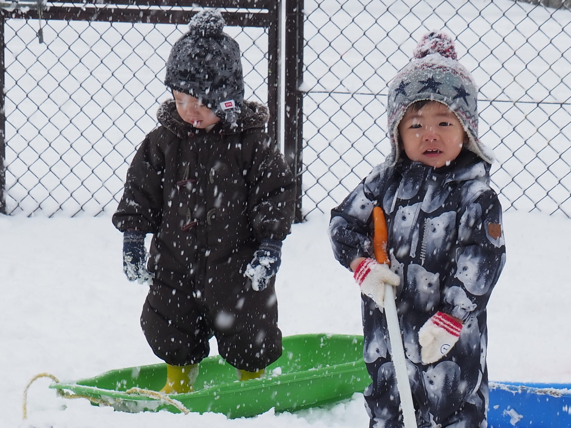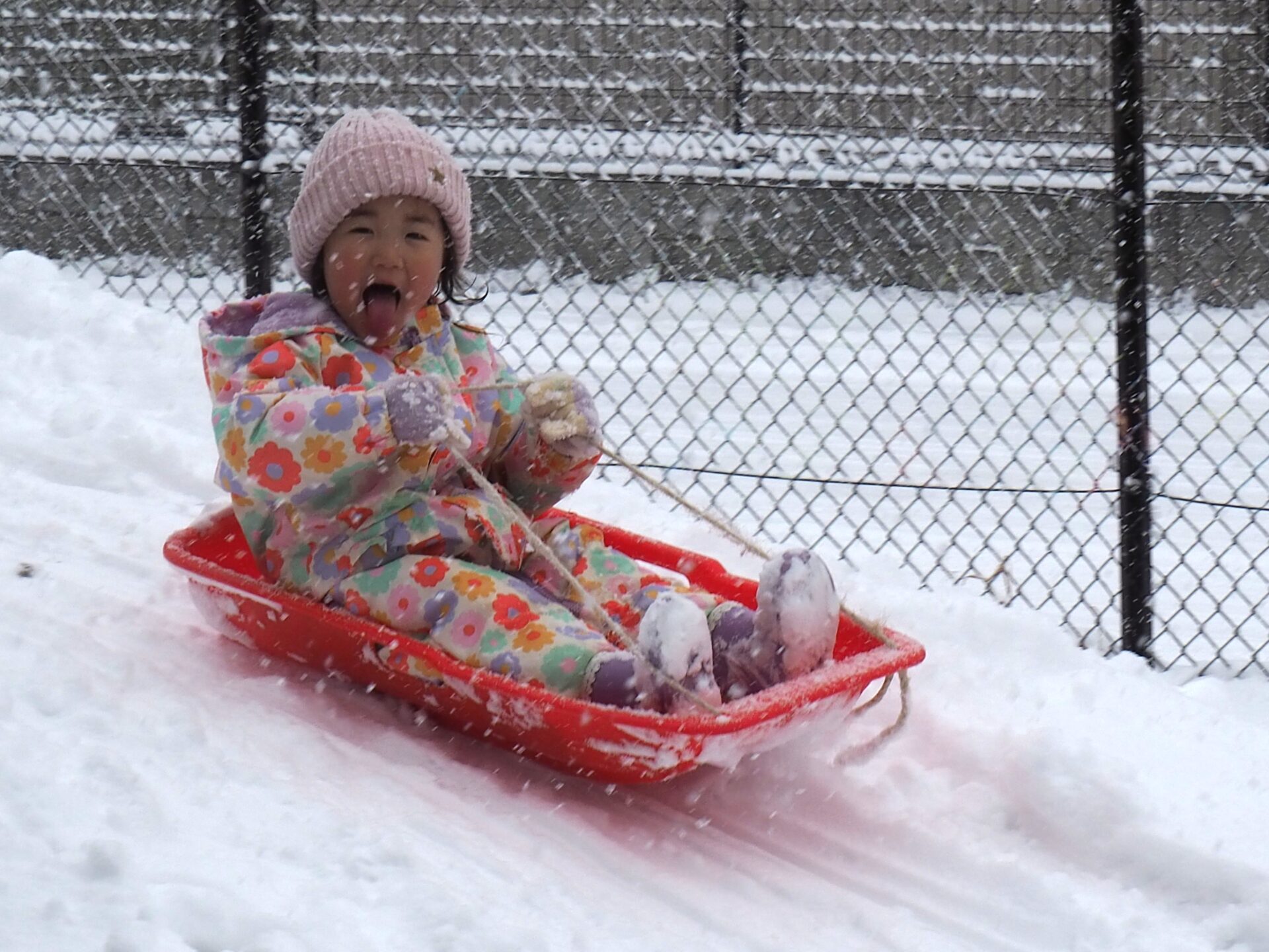 雪が降り仕切る中、手袋を外し素手で雪を触ったり、雪山でそり遊びを楽しんだりする姿を見ると、本当に逞しくなったなぁと感じます。