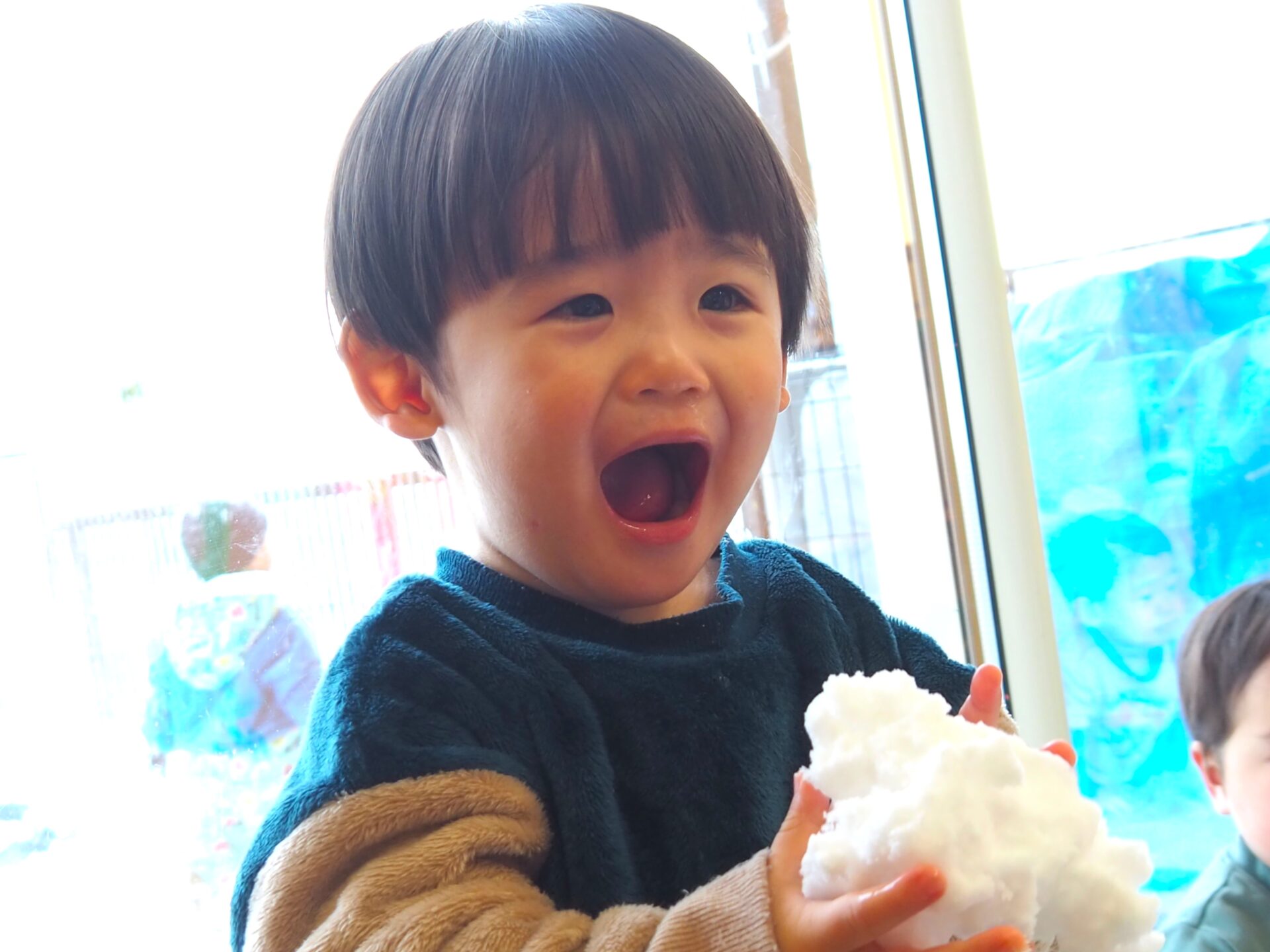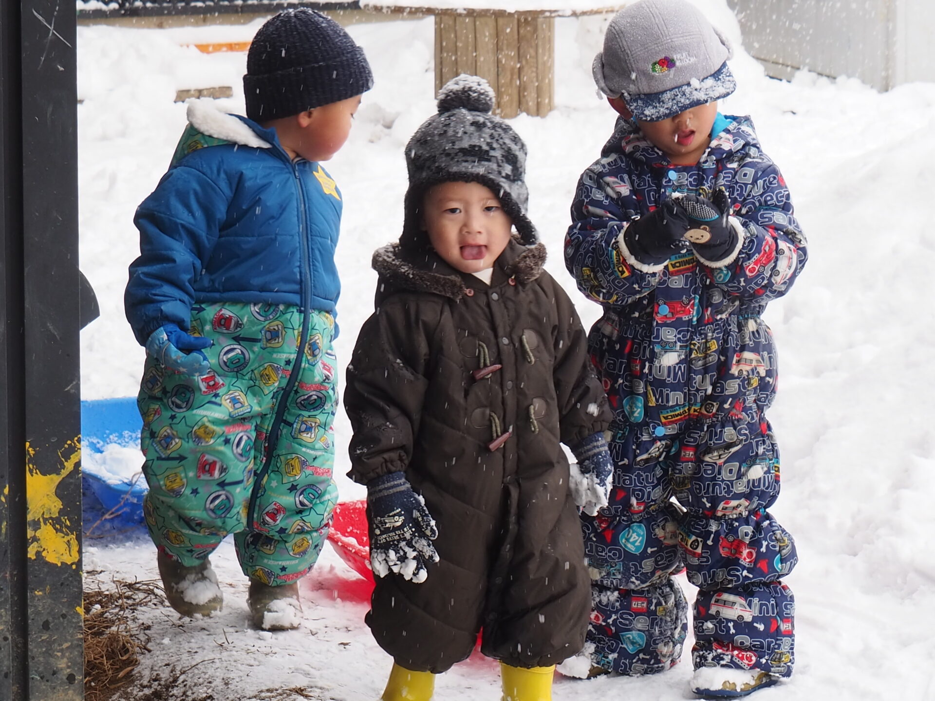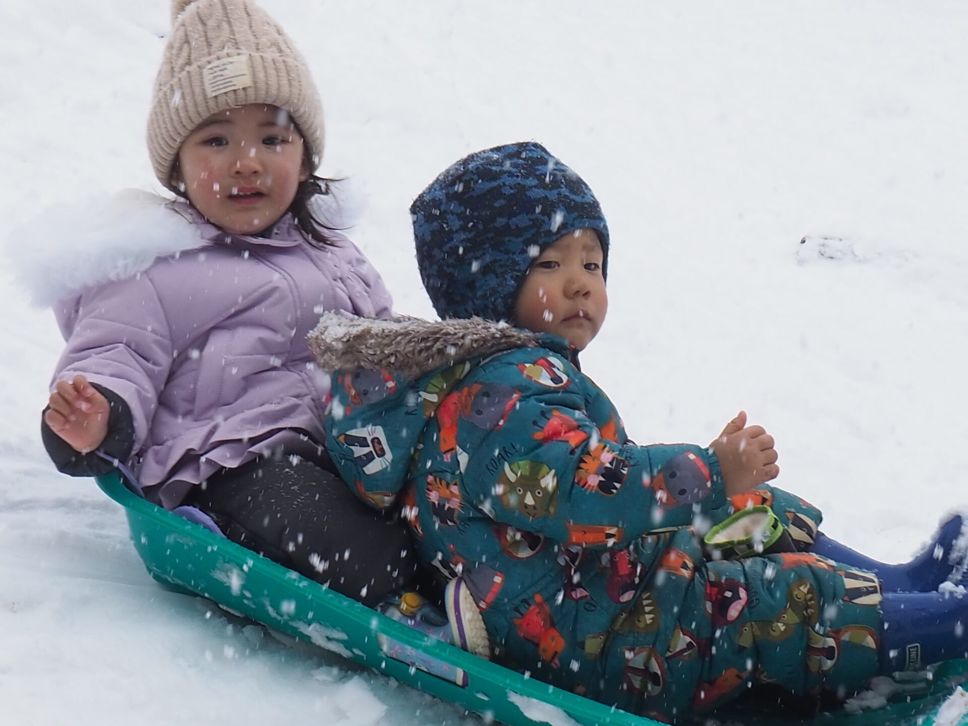 雪が降り仕切る中、手袋を外し素手で雪を触ったり、雪山でそり遊びを楽しんだりする姿を見ると、本当に逞しくなったなぁと感じます。