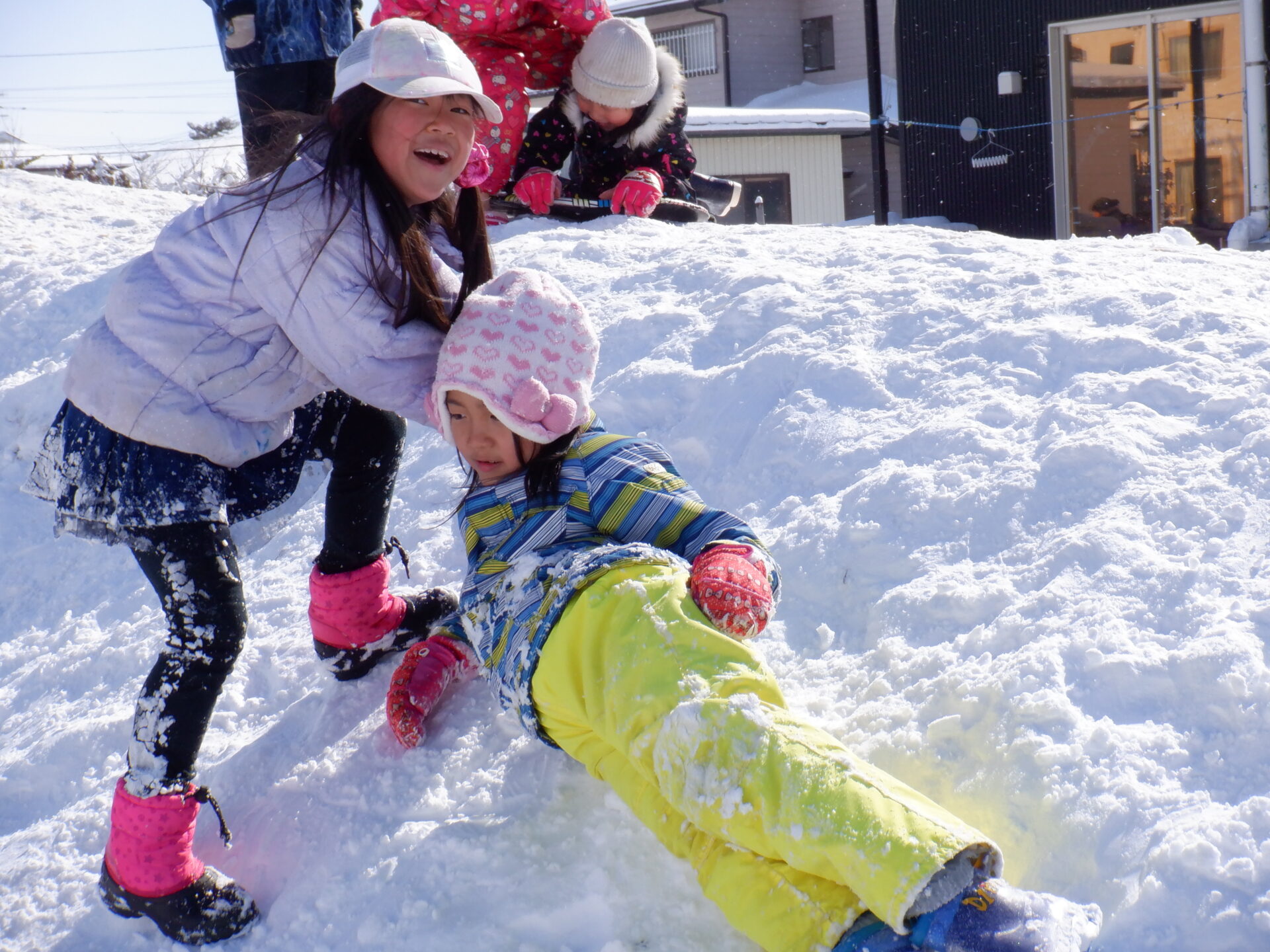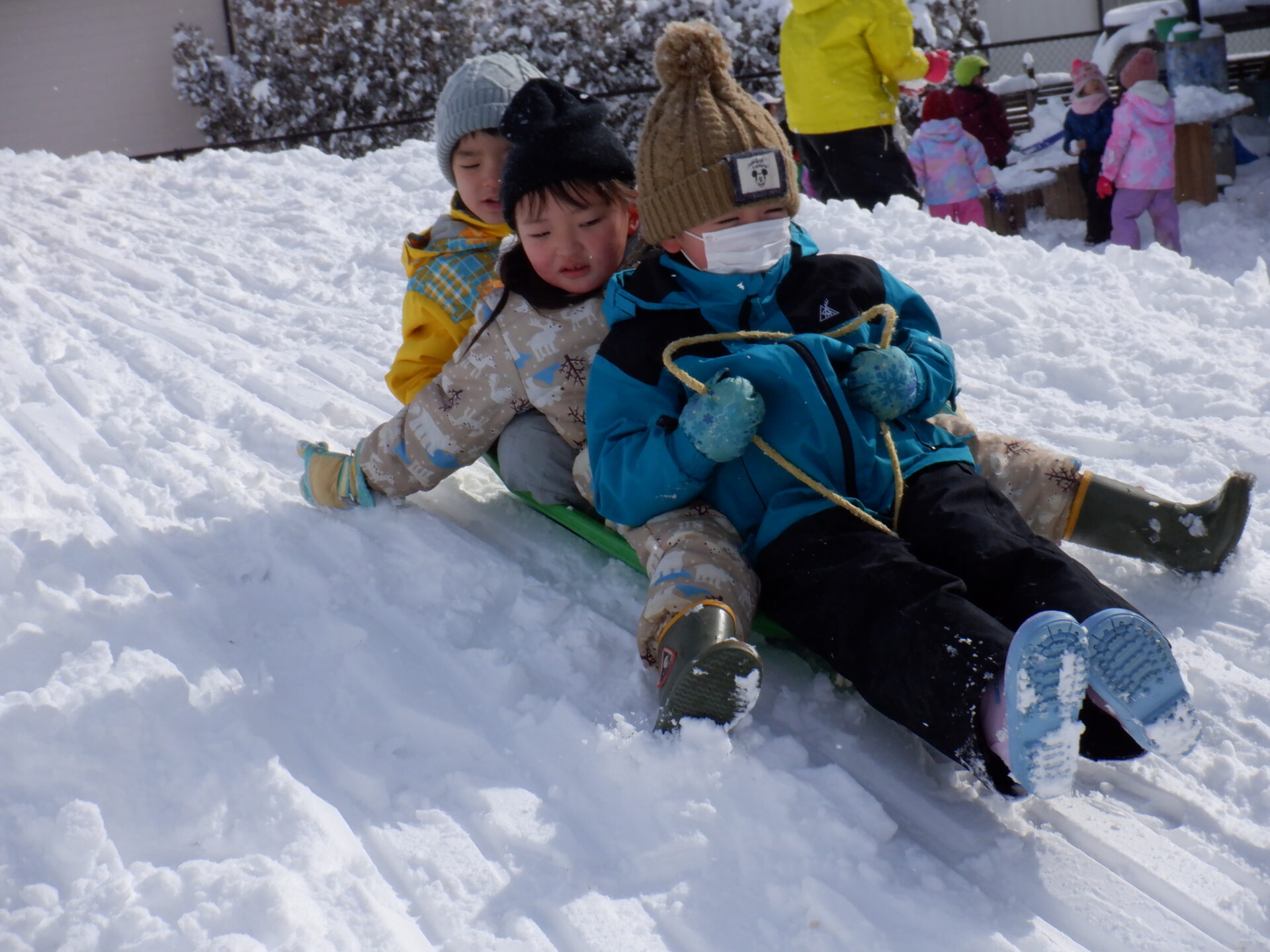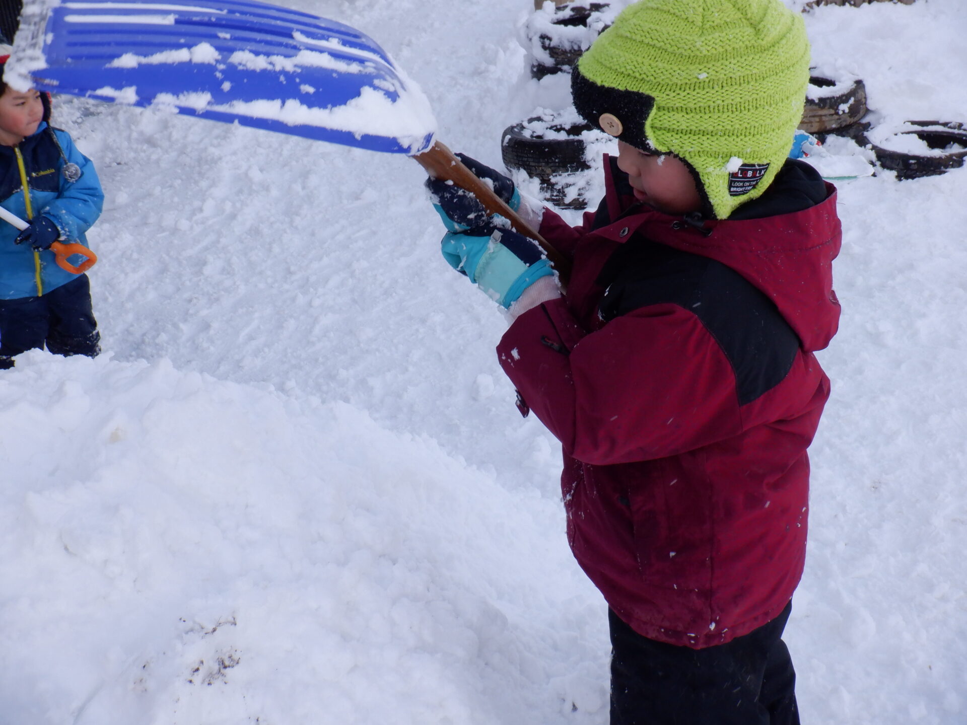 おやつに雪が入ってしまうので、仕方なくテラスで食べました。