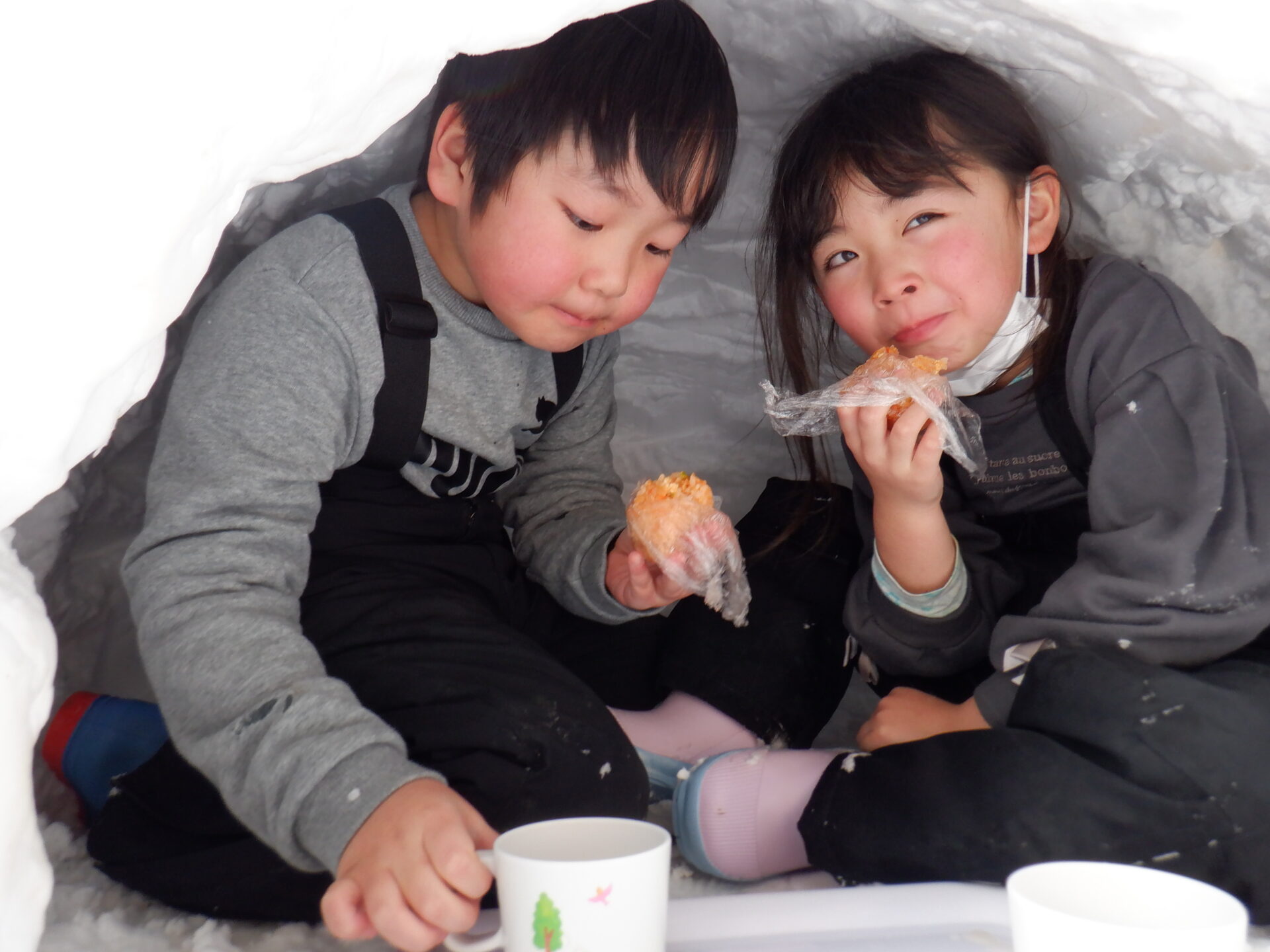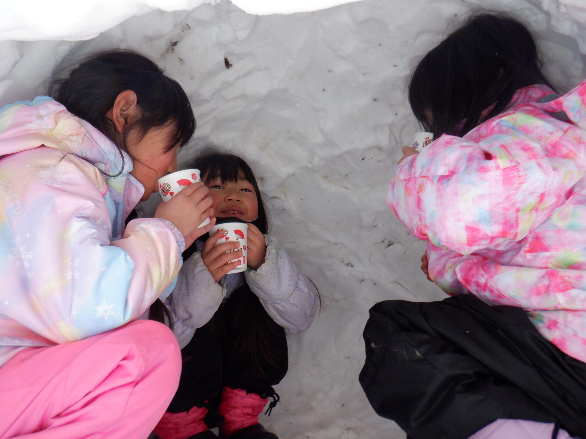 折角だから、かまくらの中でおやつを食べちゃおう!