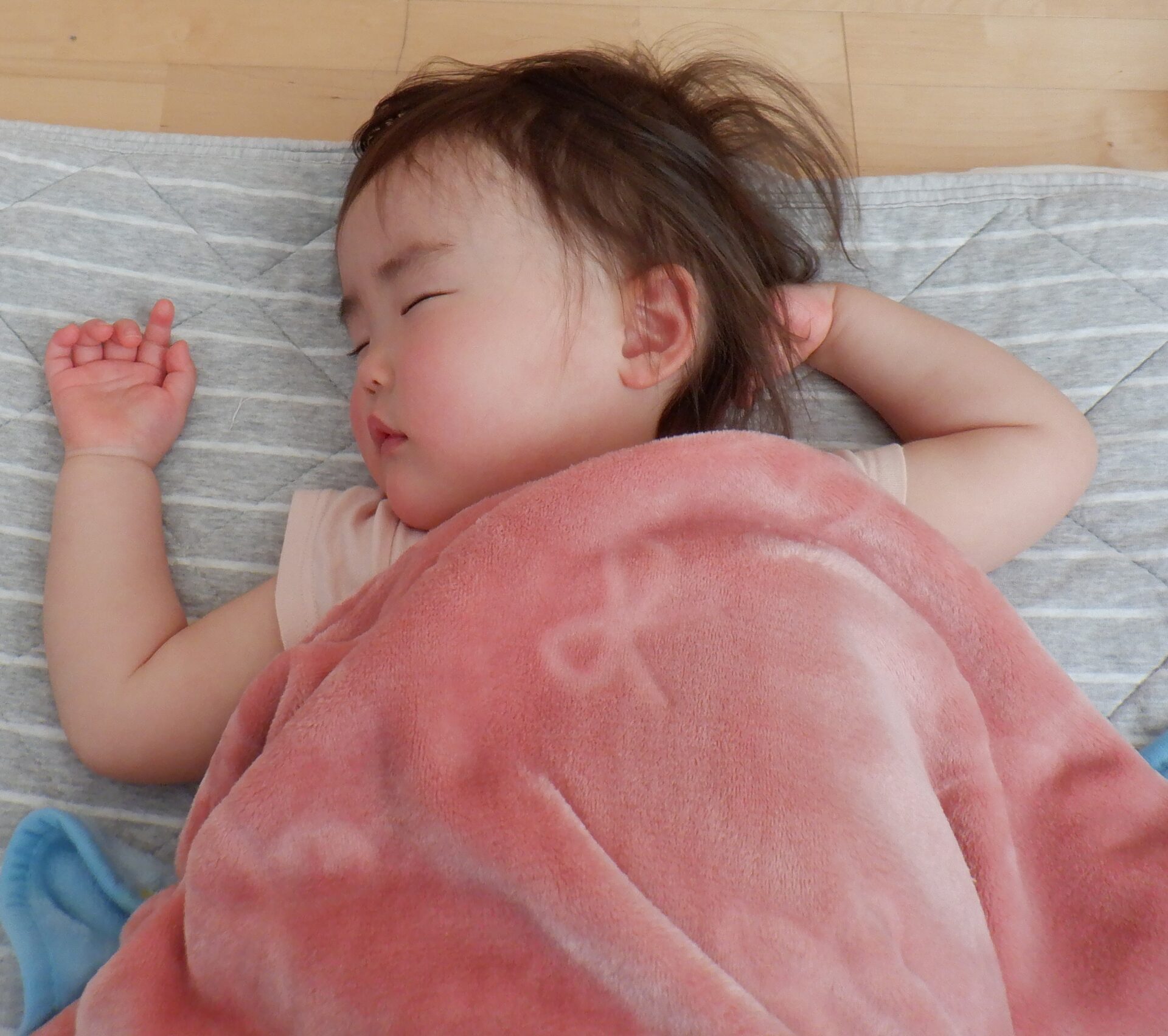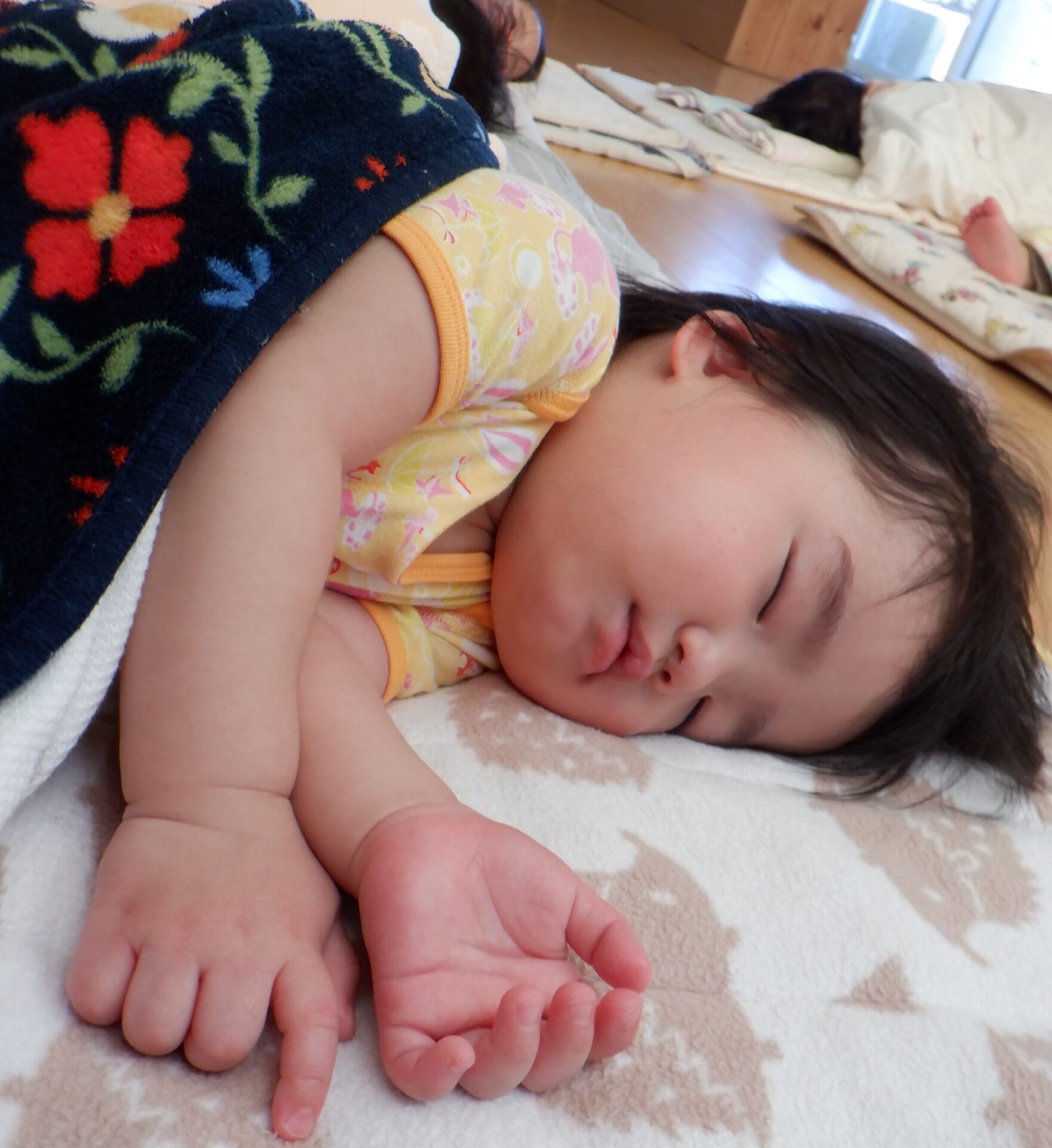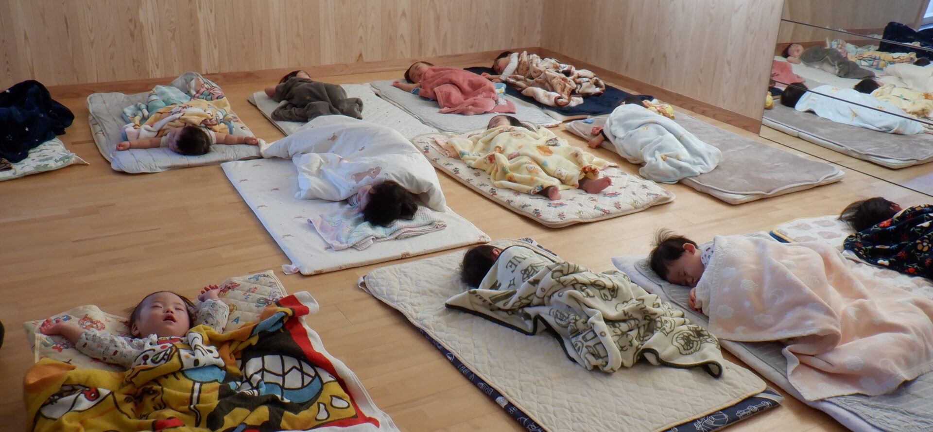 午睡時間、まとまった時間寝られるようになってきたあい組さん。