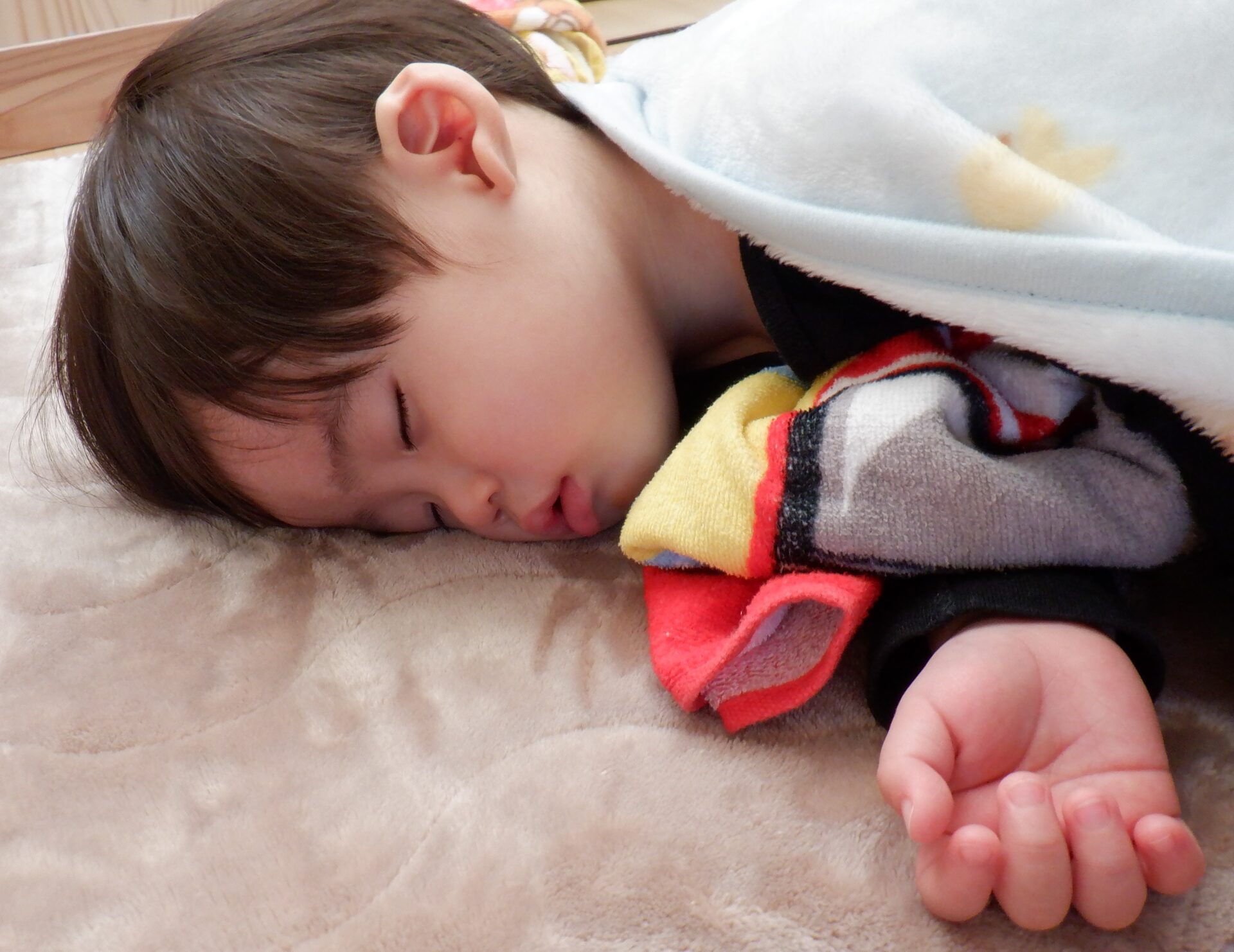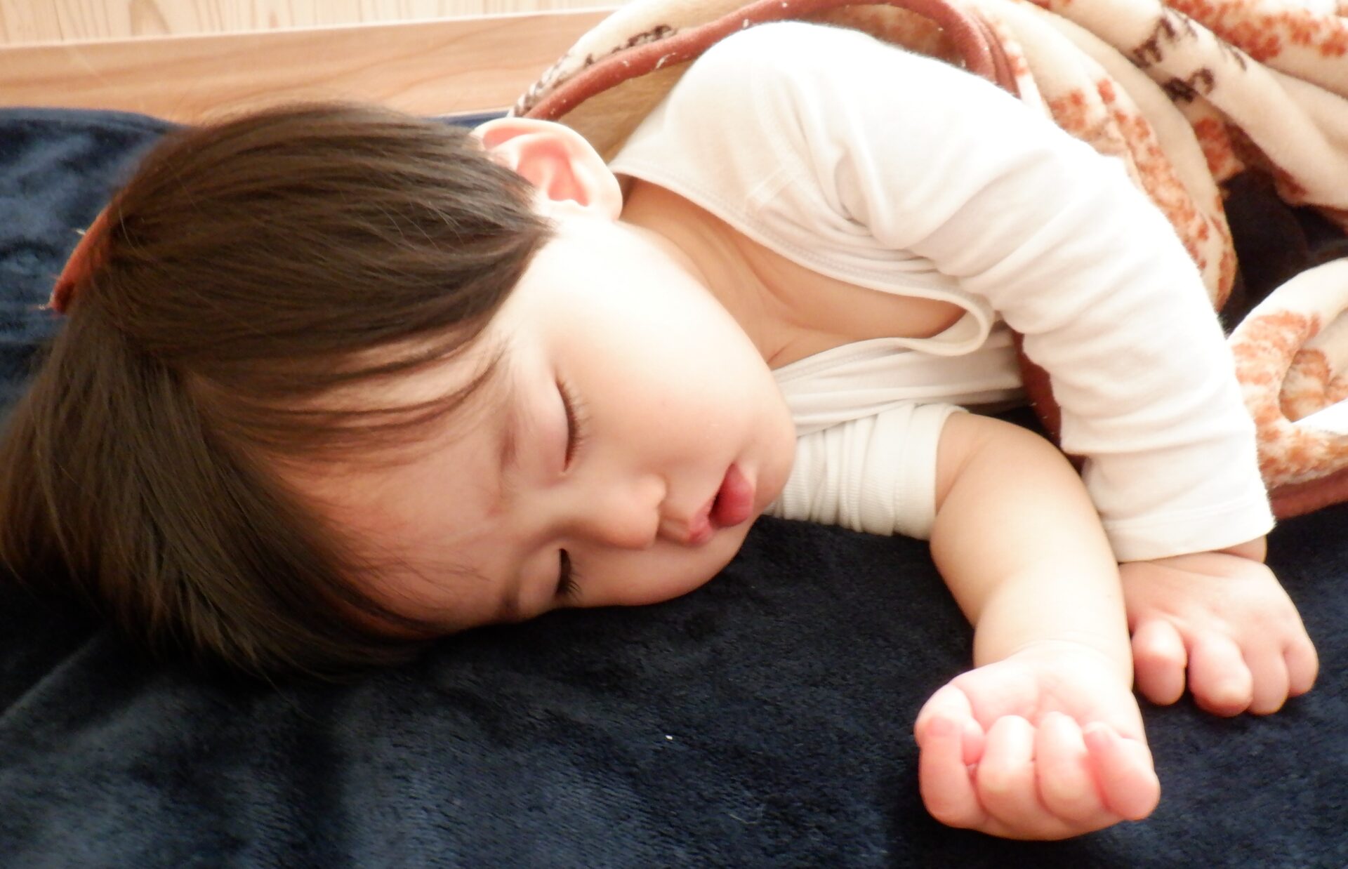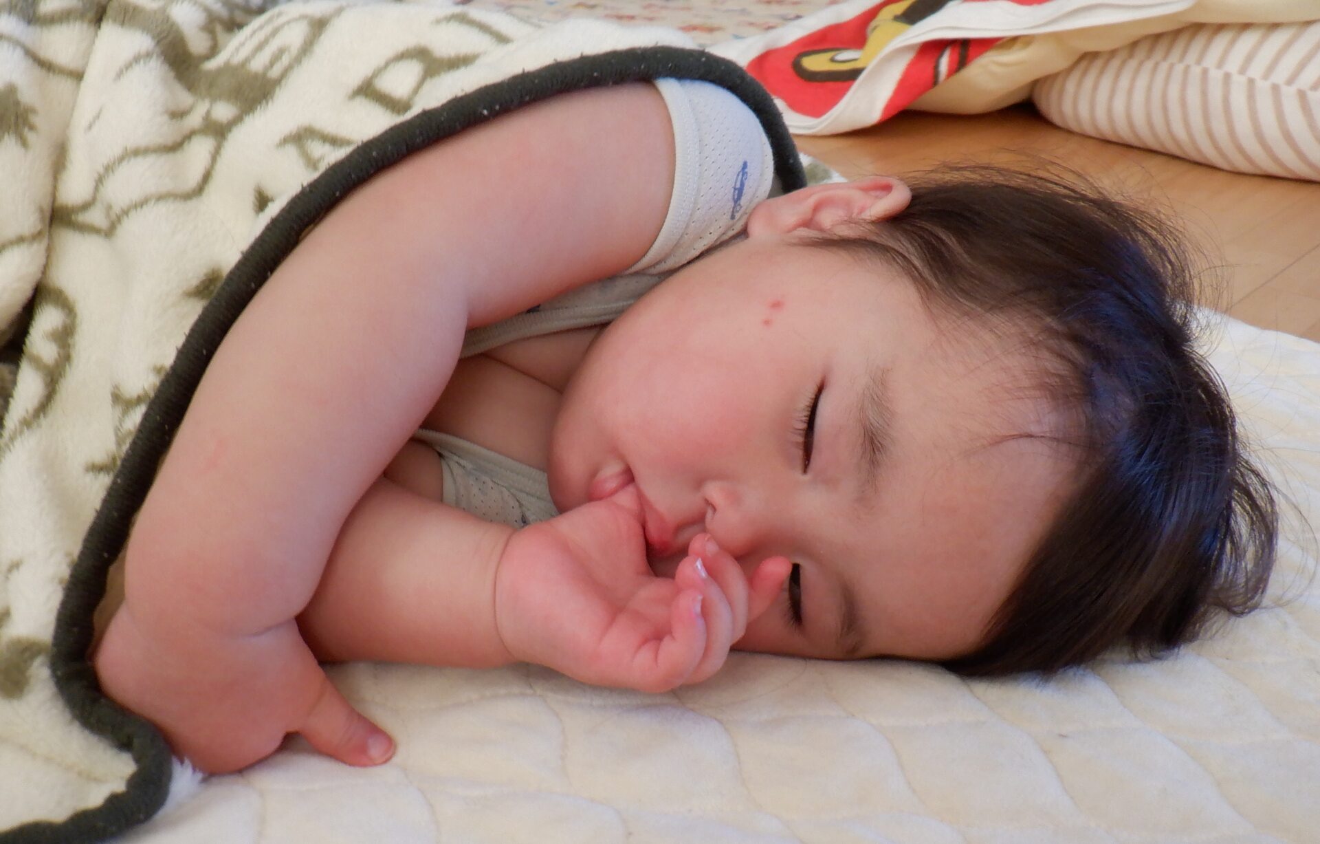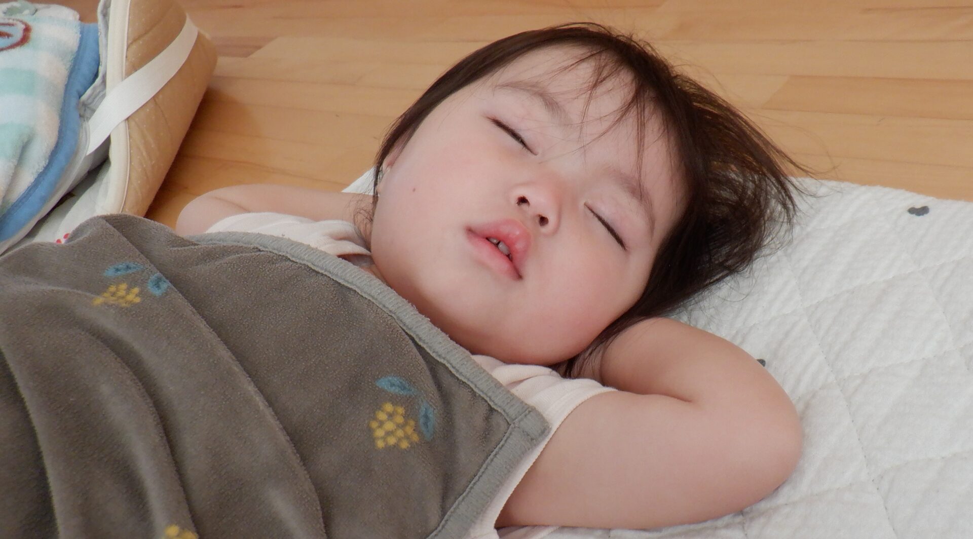 午睡時間、まとまった時間寝られるようになってきたあい組さん。
