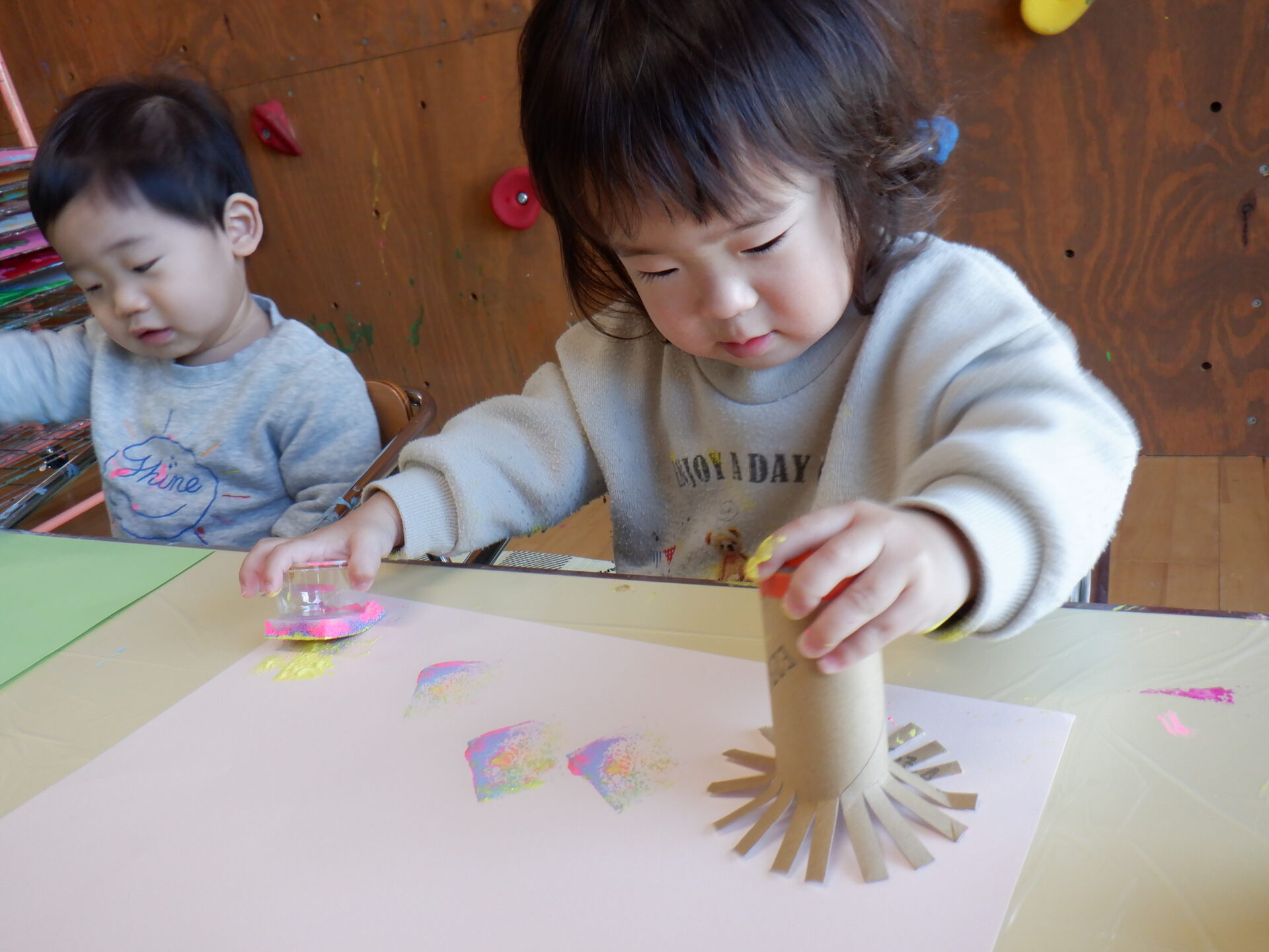 今回は、トイレットペーパーの芯や段ボールなど、様々な素材を使ってのスタンプに挑戦します。