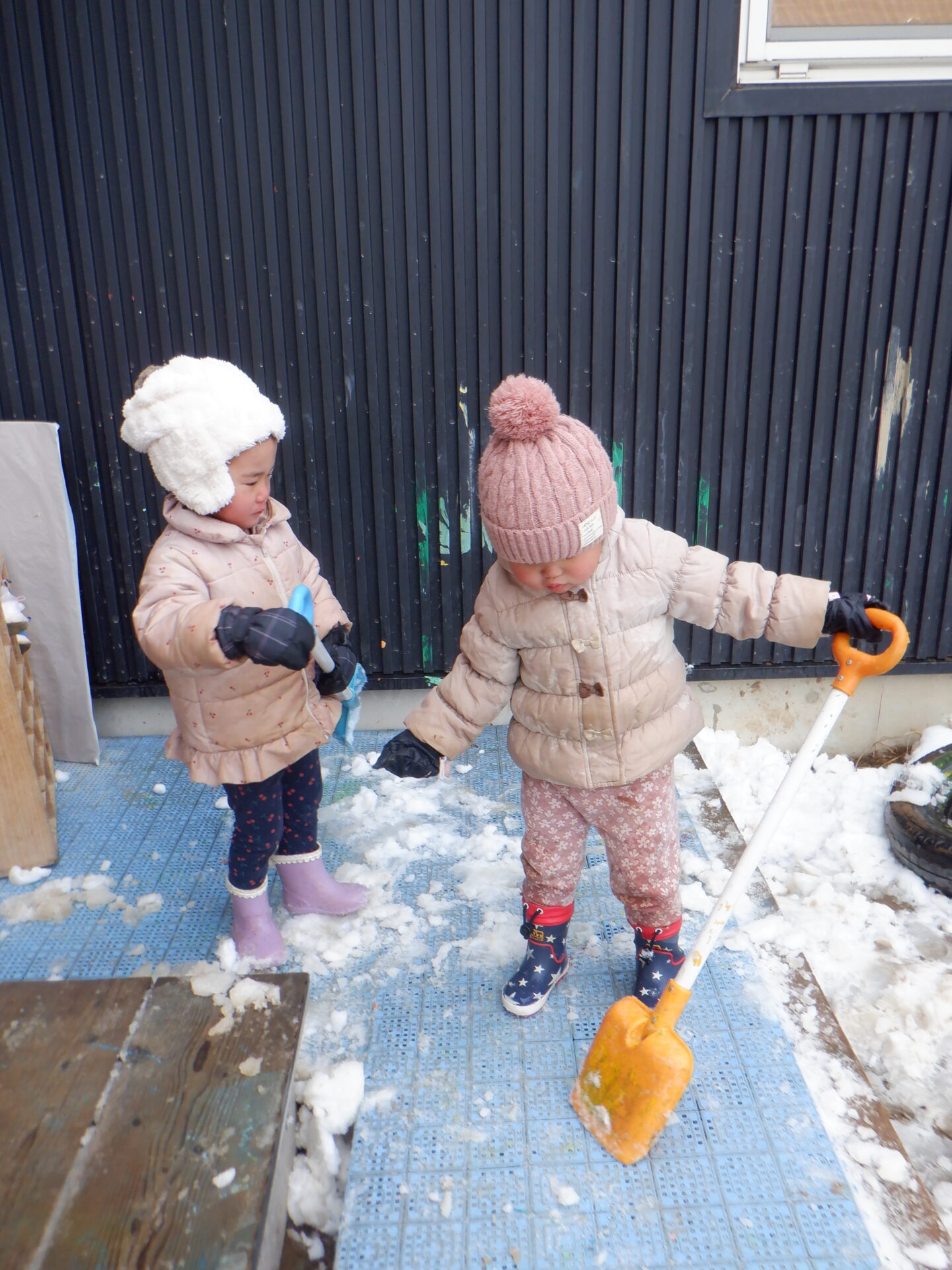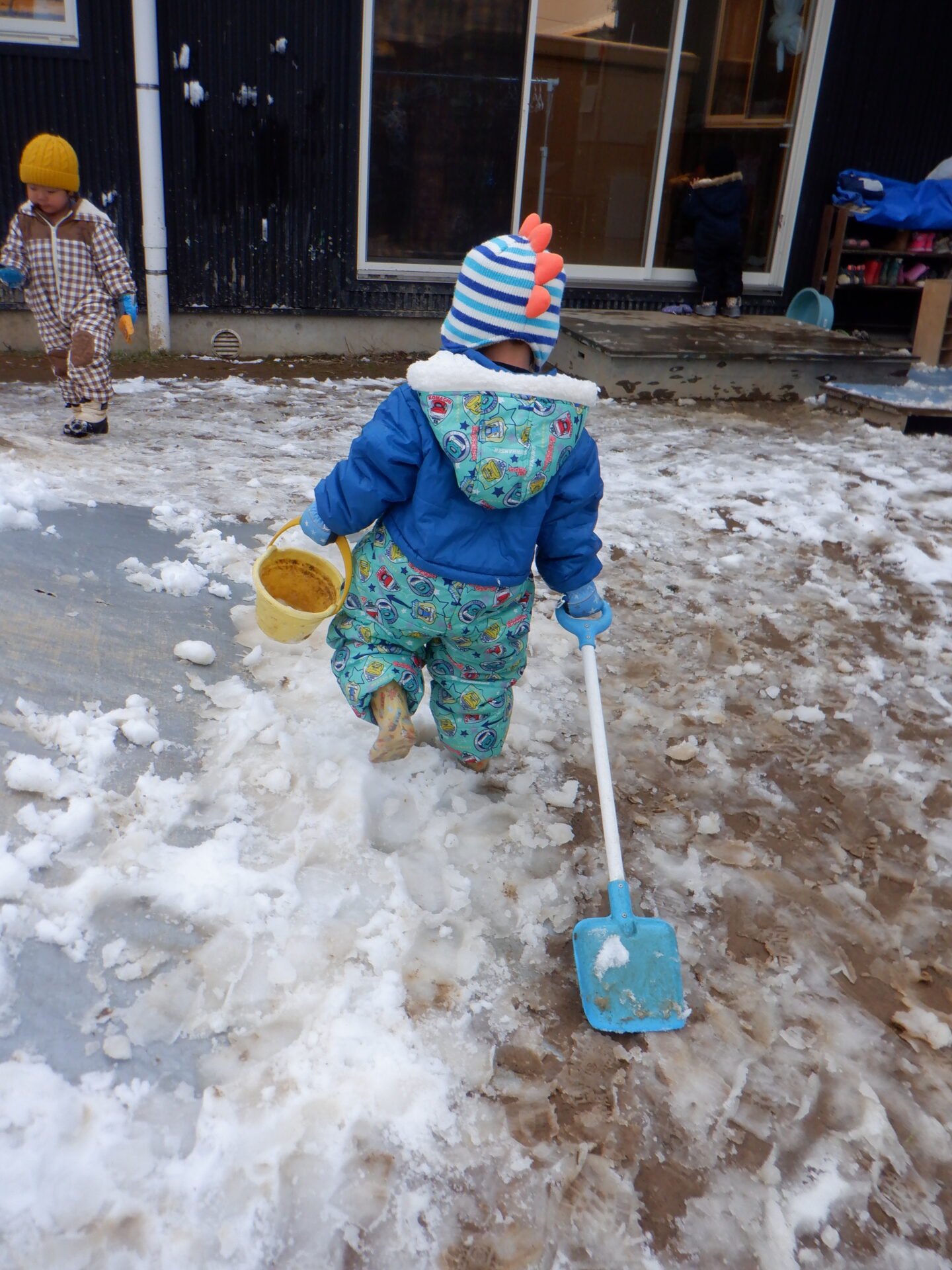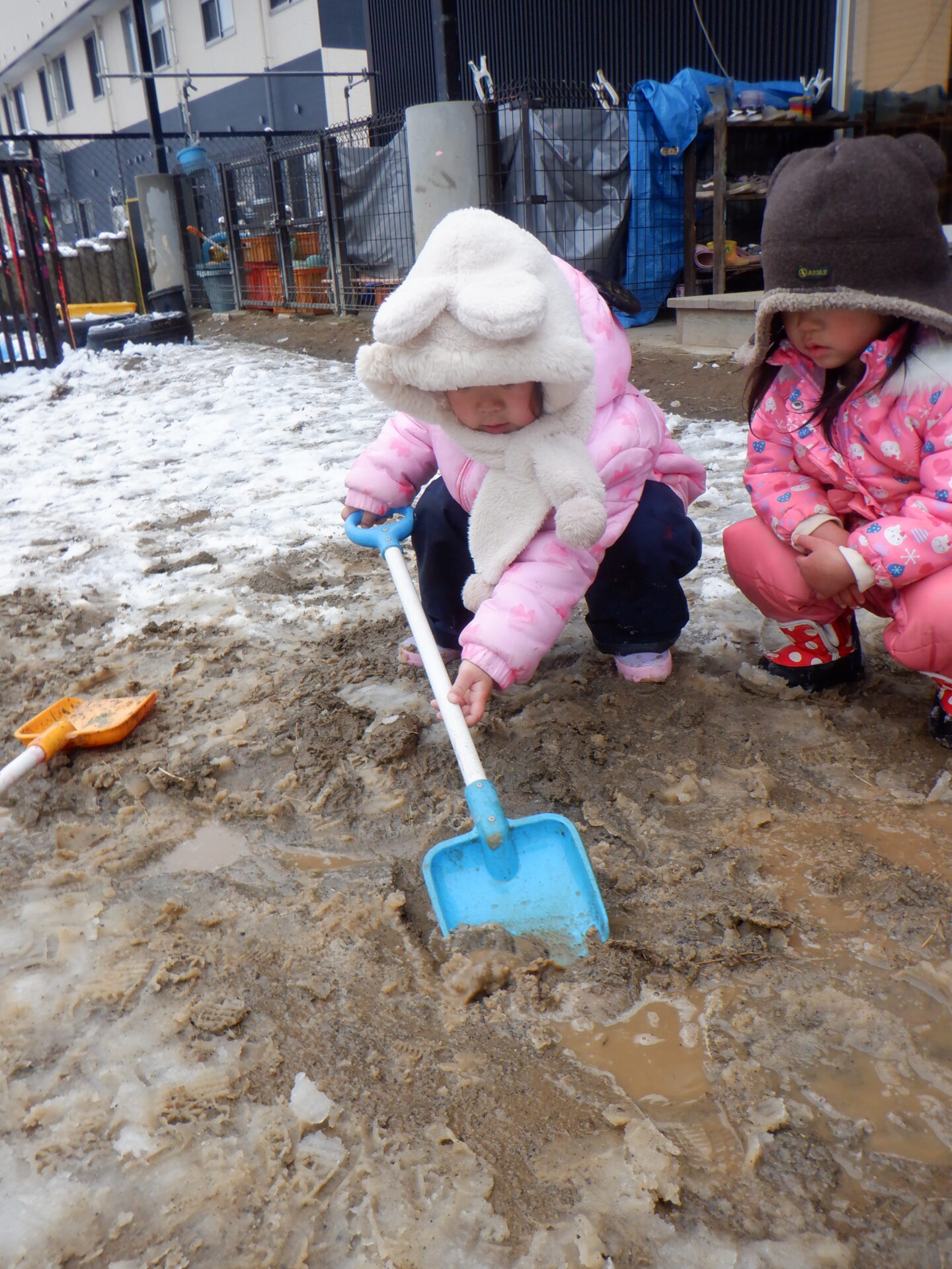 2025.03.05 未満児 ゆめ組(2歳児) しずく組(1歳児) ブログ 相棒はスコップ! 「やるー。」 と言って、スコップをほうきにして雪をはいてくれています。 今度は穴堀り。 どこまで掘れるかな? 園庭探索にはスコップを持っていきます。 スコップは、園庭遊びの必需品!! 一覧へ戻る