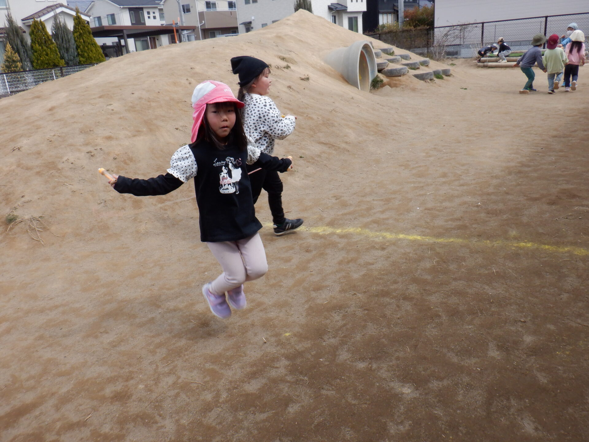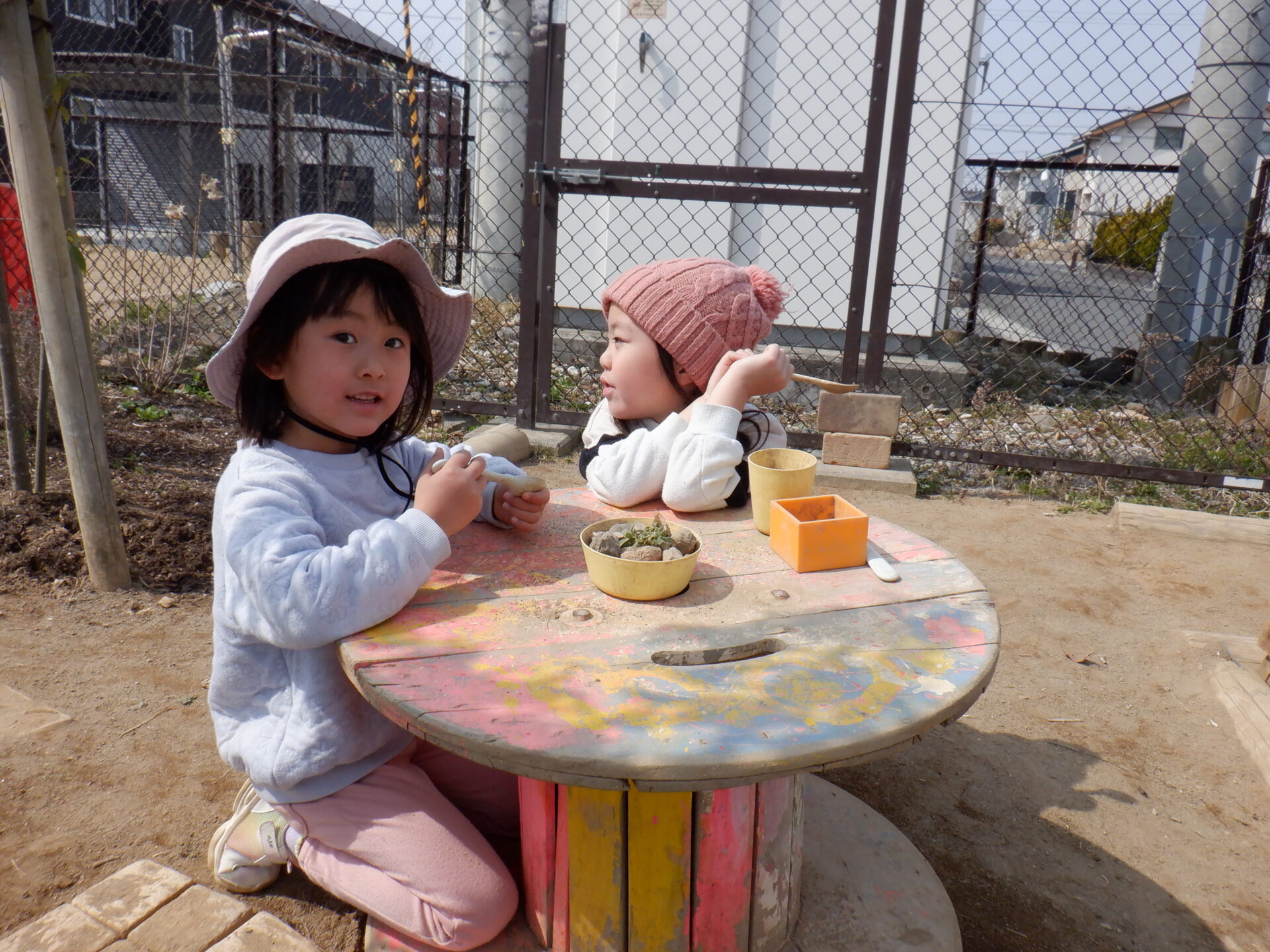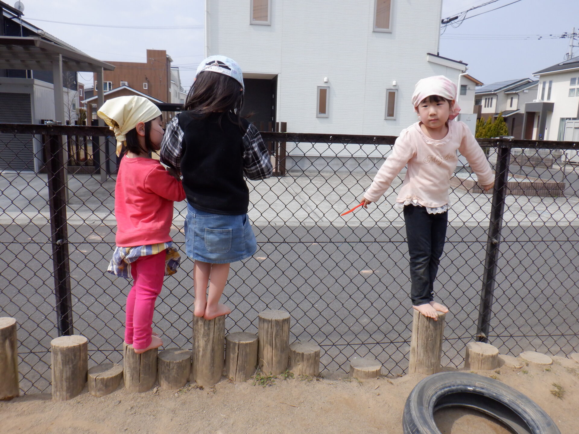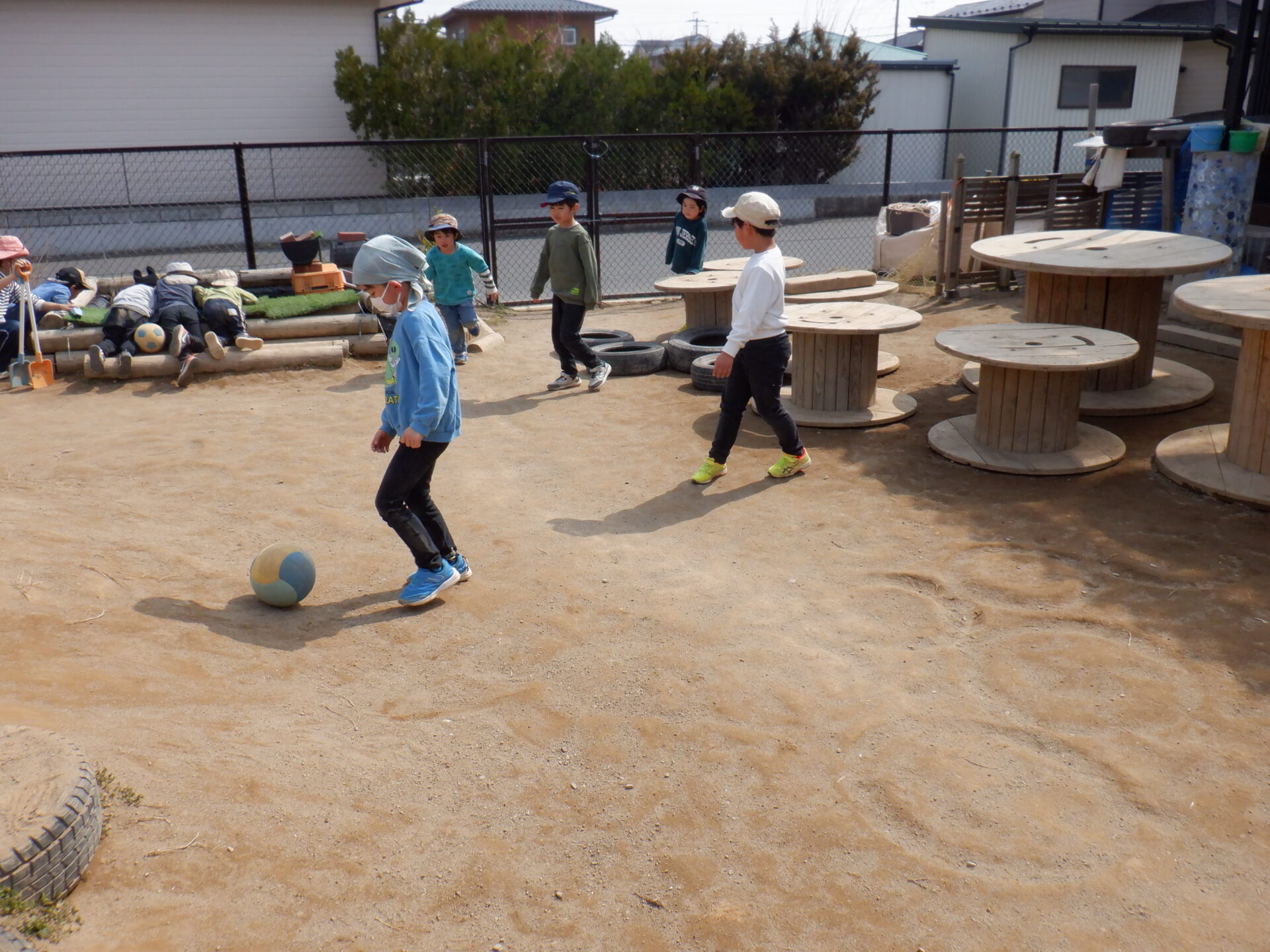 ぽかぽか陽気の中で好きな遊びを夢中になって楽しんでいます。