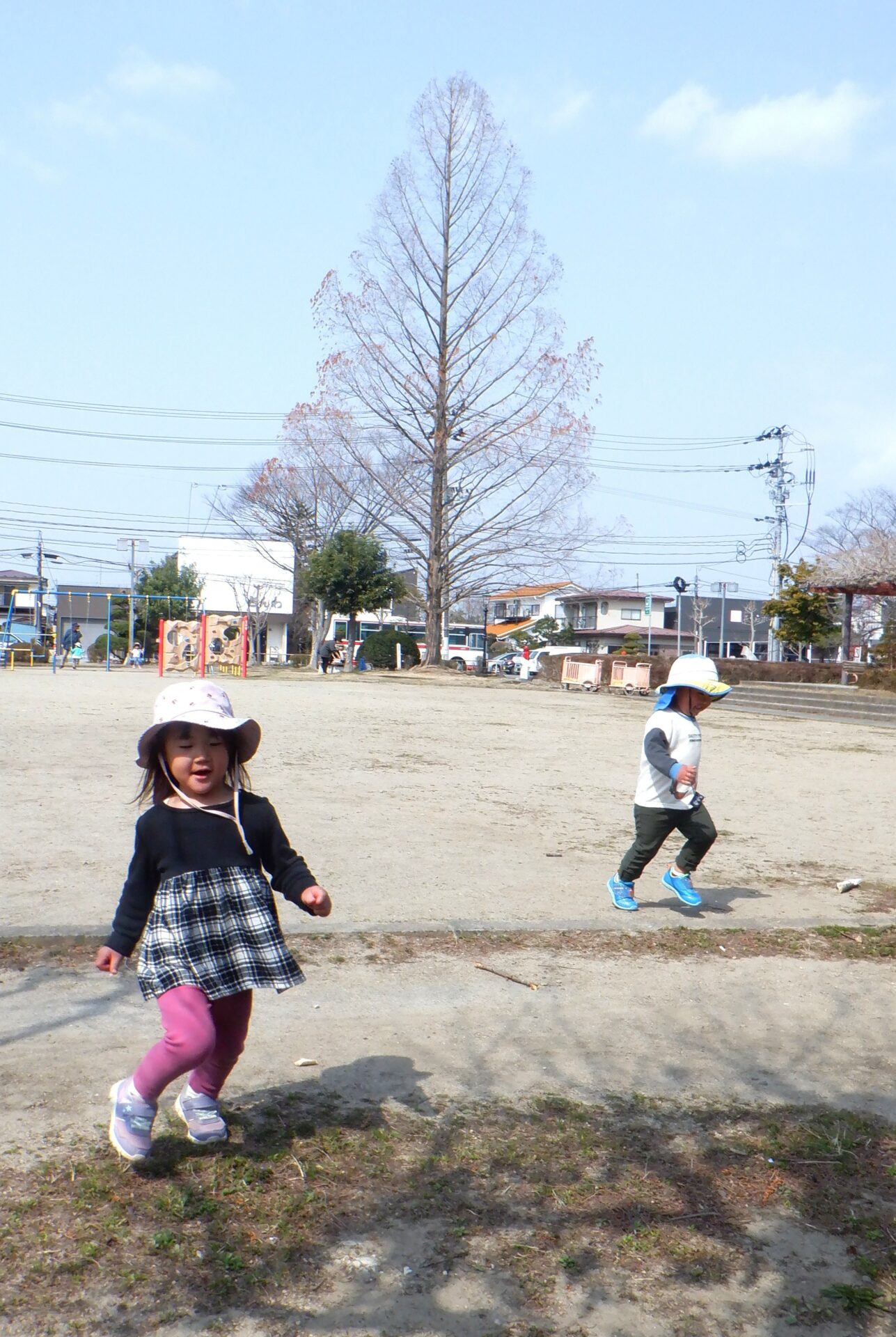 ブランコに乗ってみたり、友だちや保育士と追いかけっこをしたりと