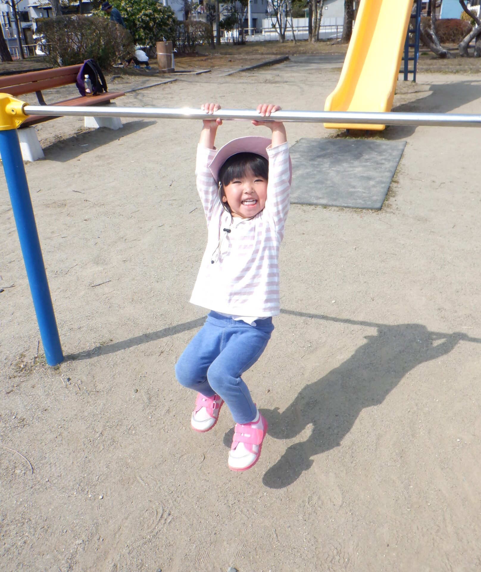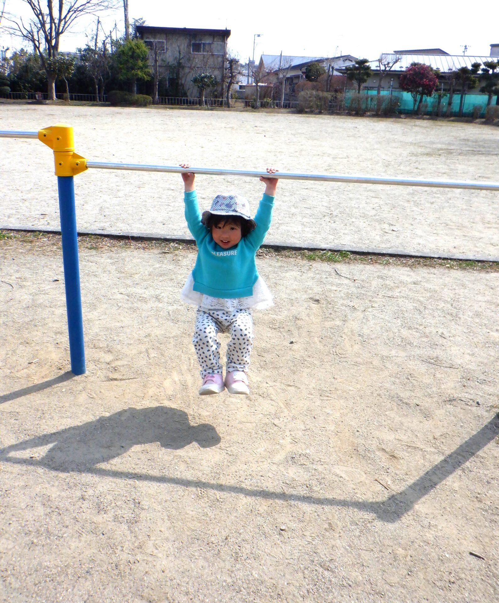 公園には遊具もあり、鉄棒にぶら下がったり…。