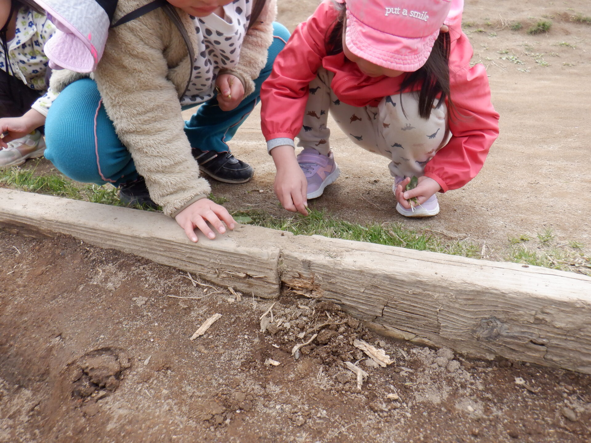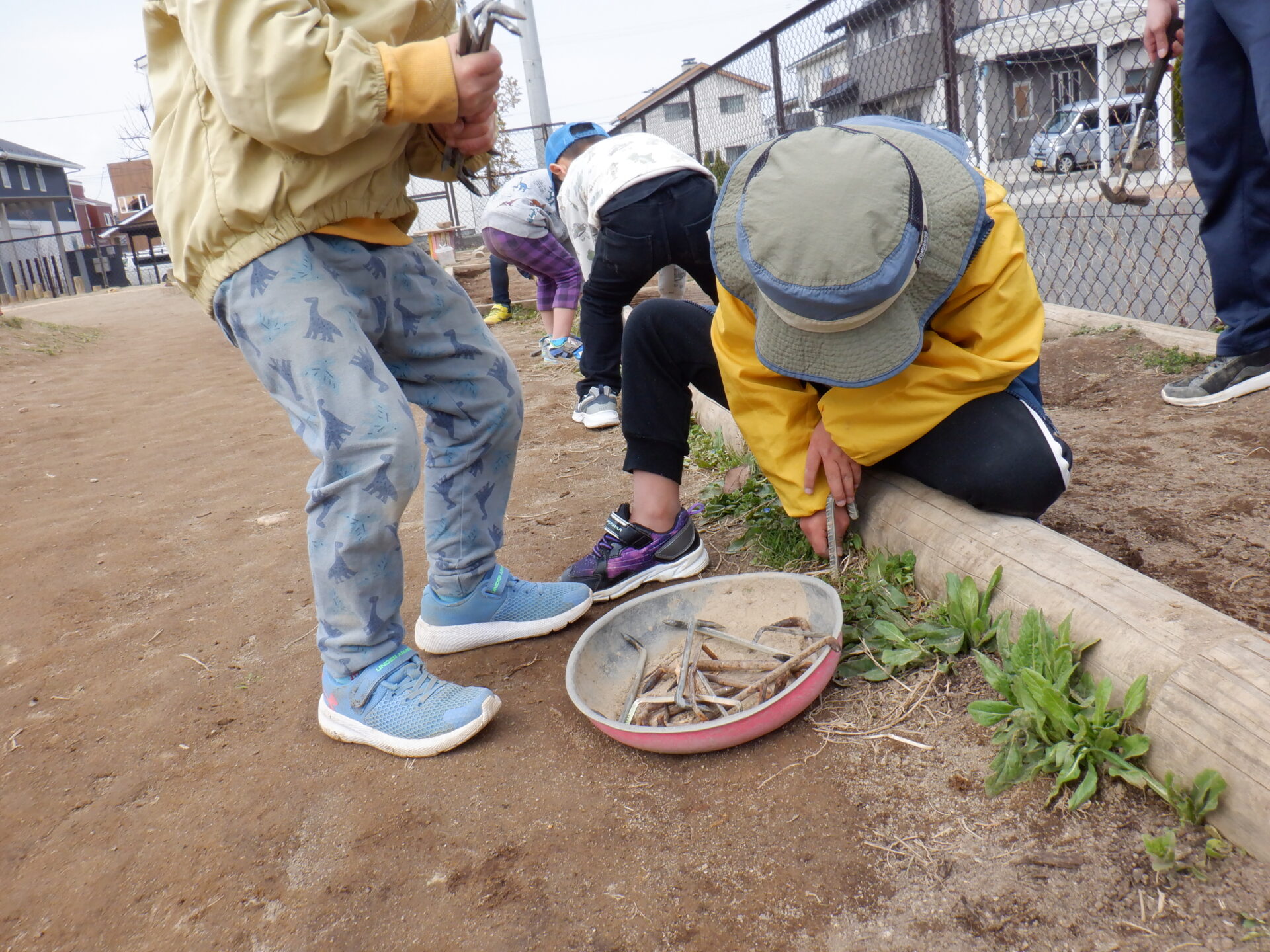 外した木枠は園庭の隅に運びます。