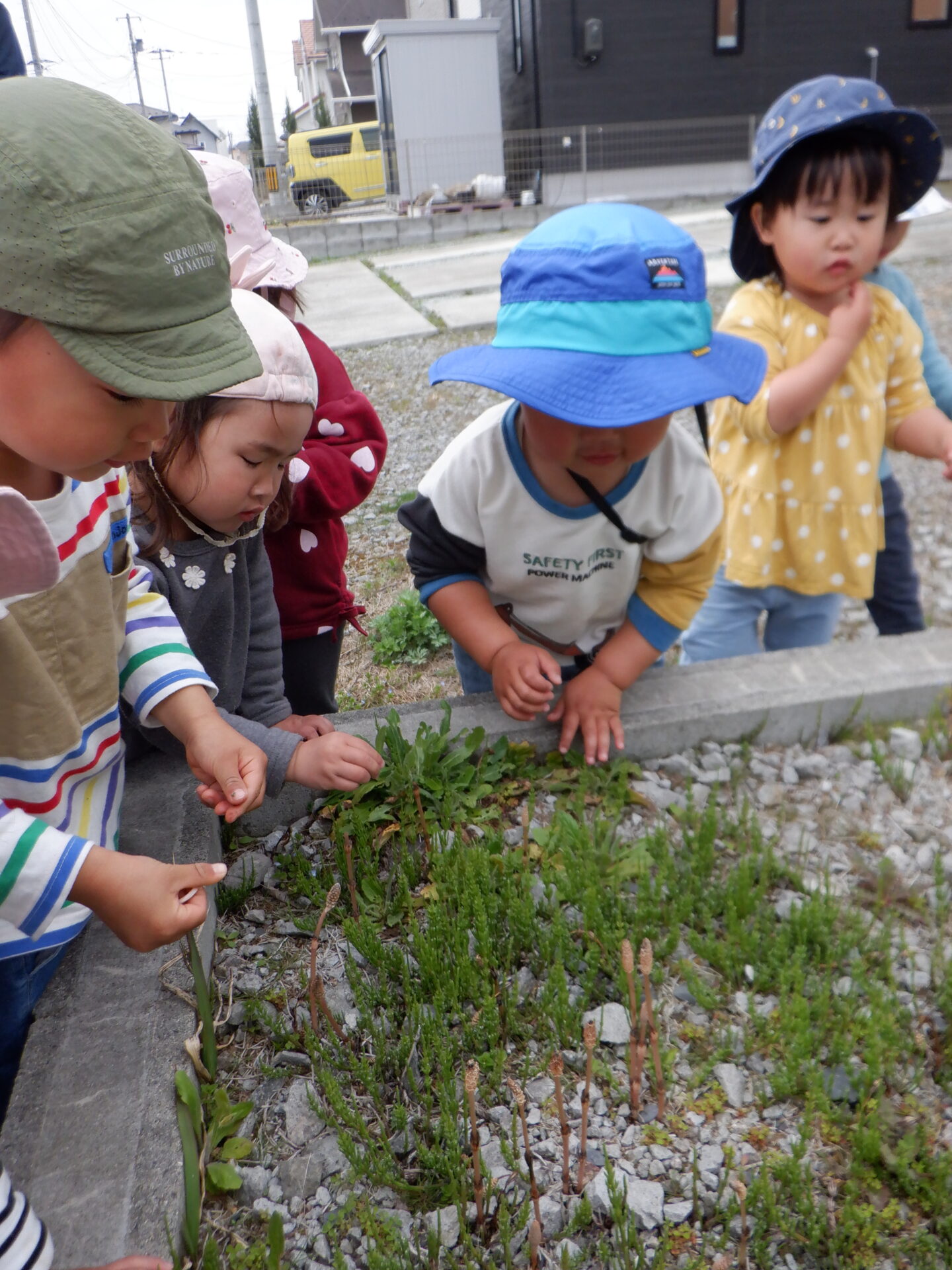 寄り道をしてつくしを見つけたり、お花を摘んだり、沢山の発見をしました。