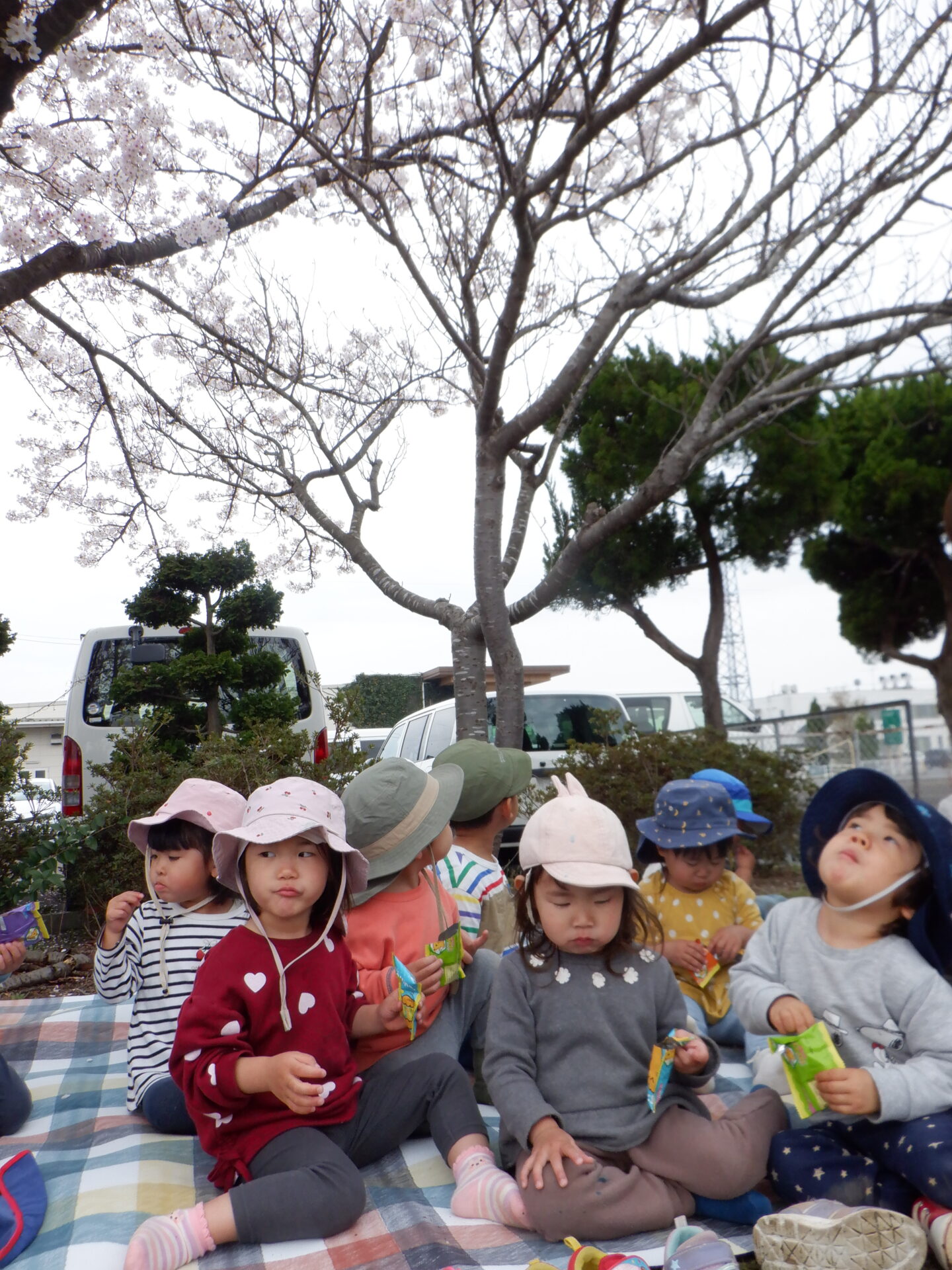 桜の木に見守られながら、おやつを食べ、沢山遊んできましたよ。