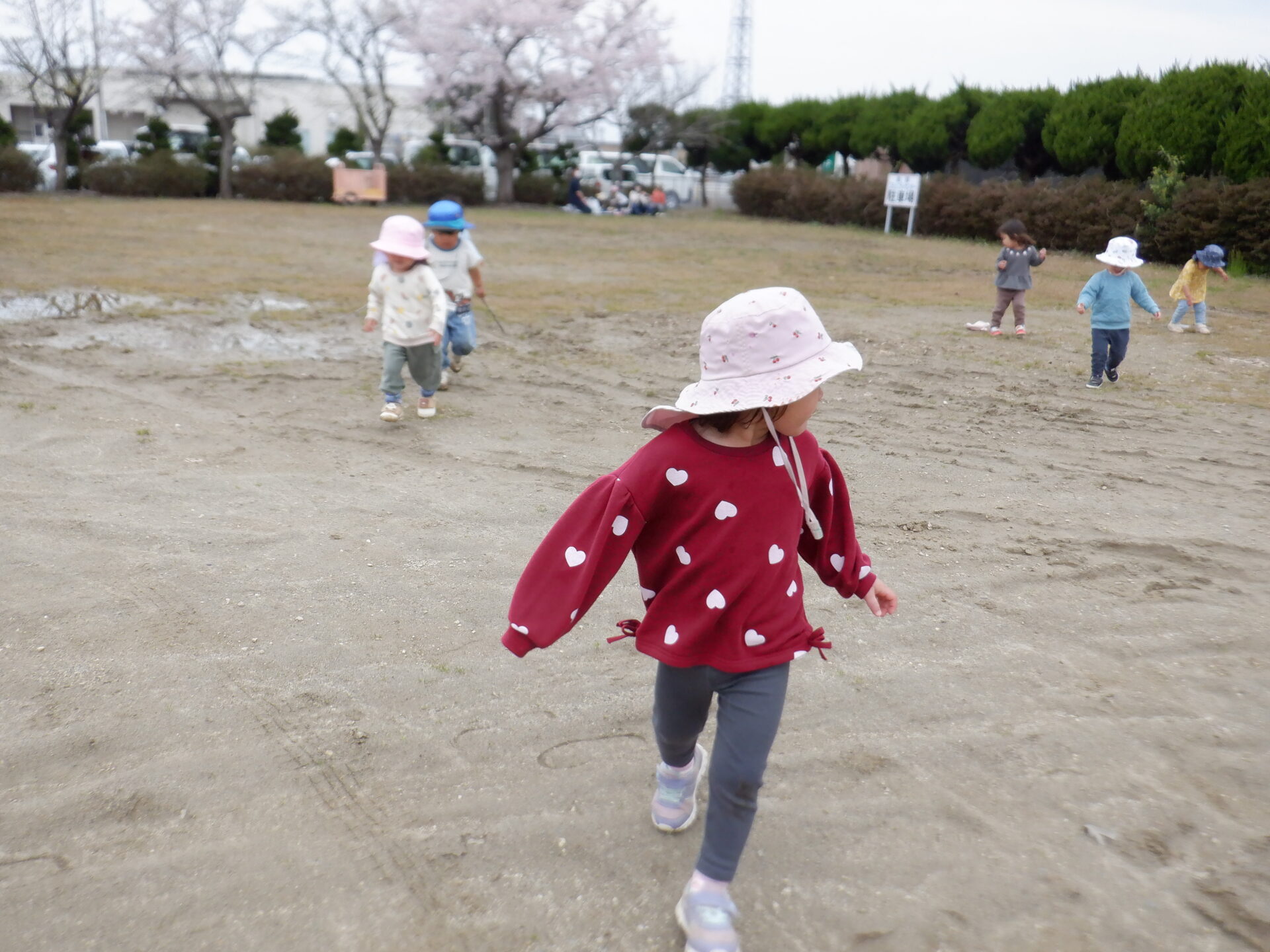 自分の力で歩けるようになってきたゆめ組のみんな!暖かくなってきたのでお花見に行ってきました。