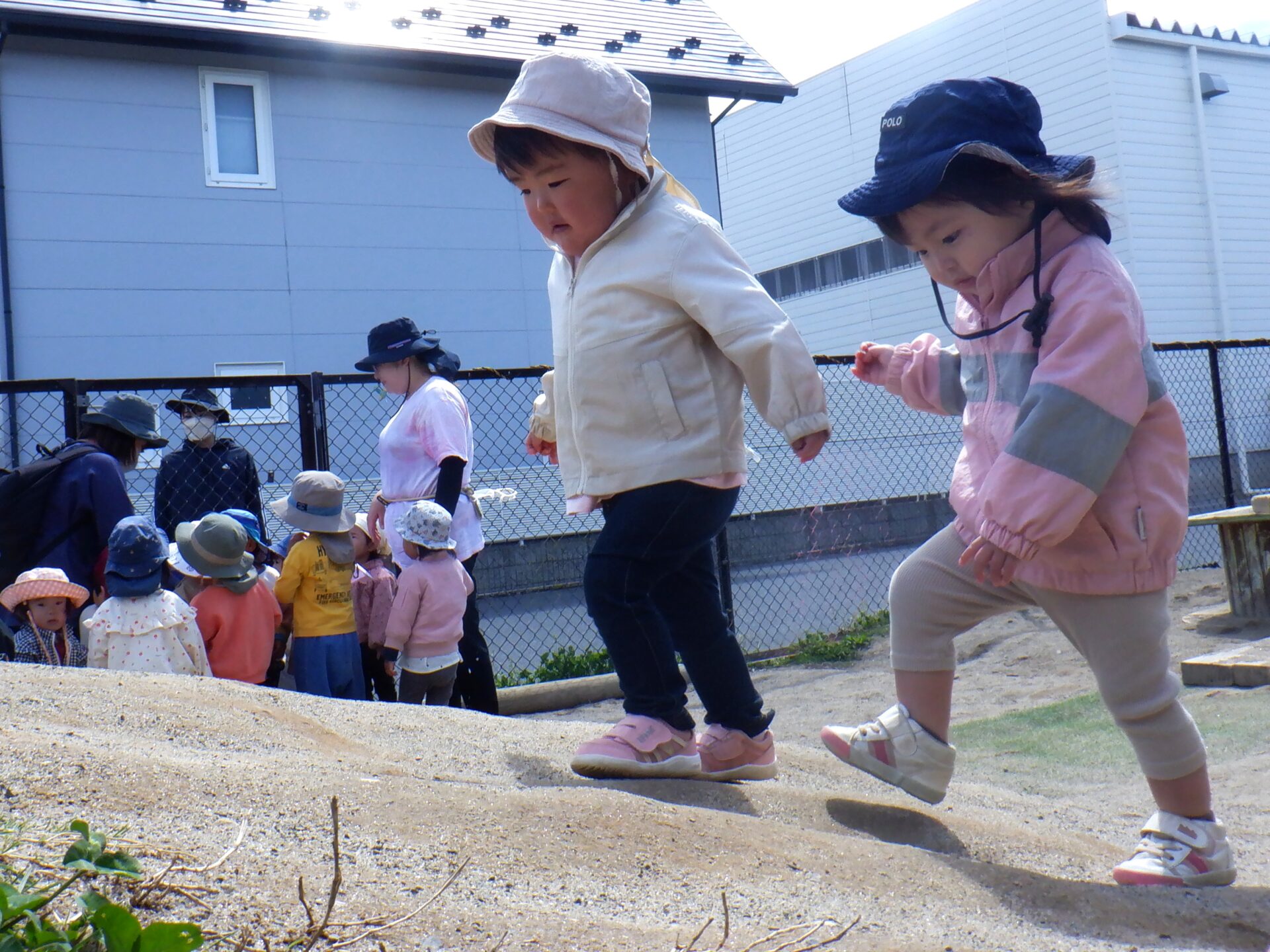 登ったり下ったり、踊ったり滑ったり、築山大好きなしずく組さん。