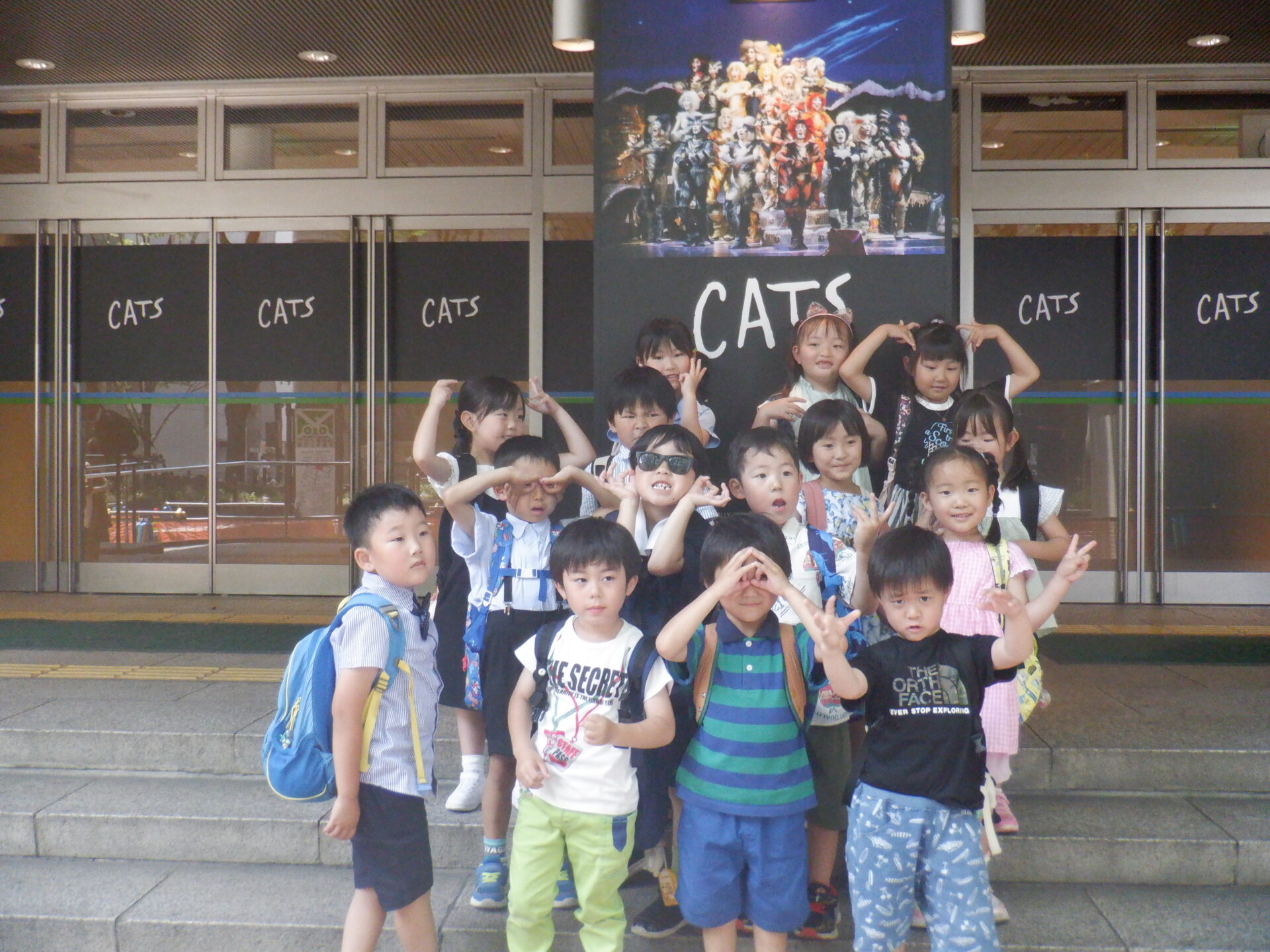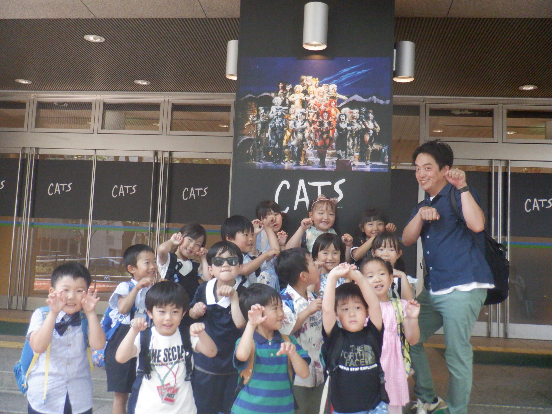 2025.06.20 バオバブ組(5歳児) ブログ 劇団四季『キャッツ』鑑賞 本日、劇団四季『キャッツ』を鑑賞してきました。 本物(プロ)の方の動きに子ども達は釘付け! 動き、歌だけではなく、『キャッツ』の世界観を十分に楽しんできました。 詳しくは、来週以降のブログで紹介します。 一覧へ戻る
