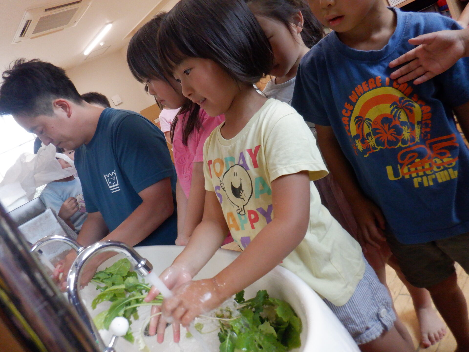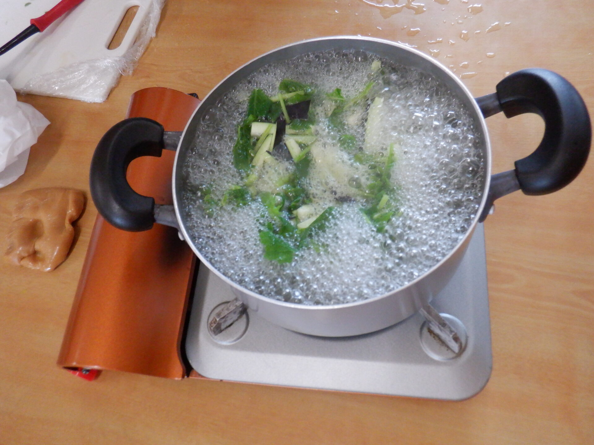 いよいよ味噌汁作り、今日は野菜を洗って準備OK