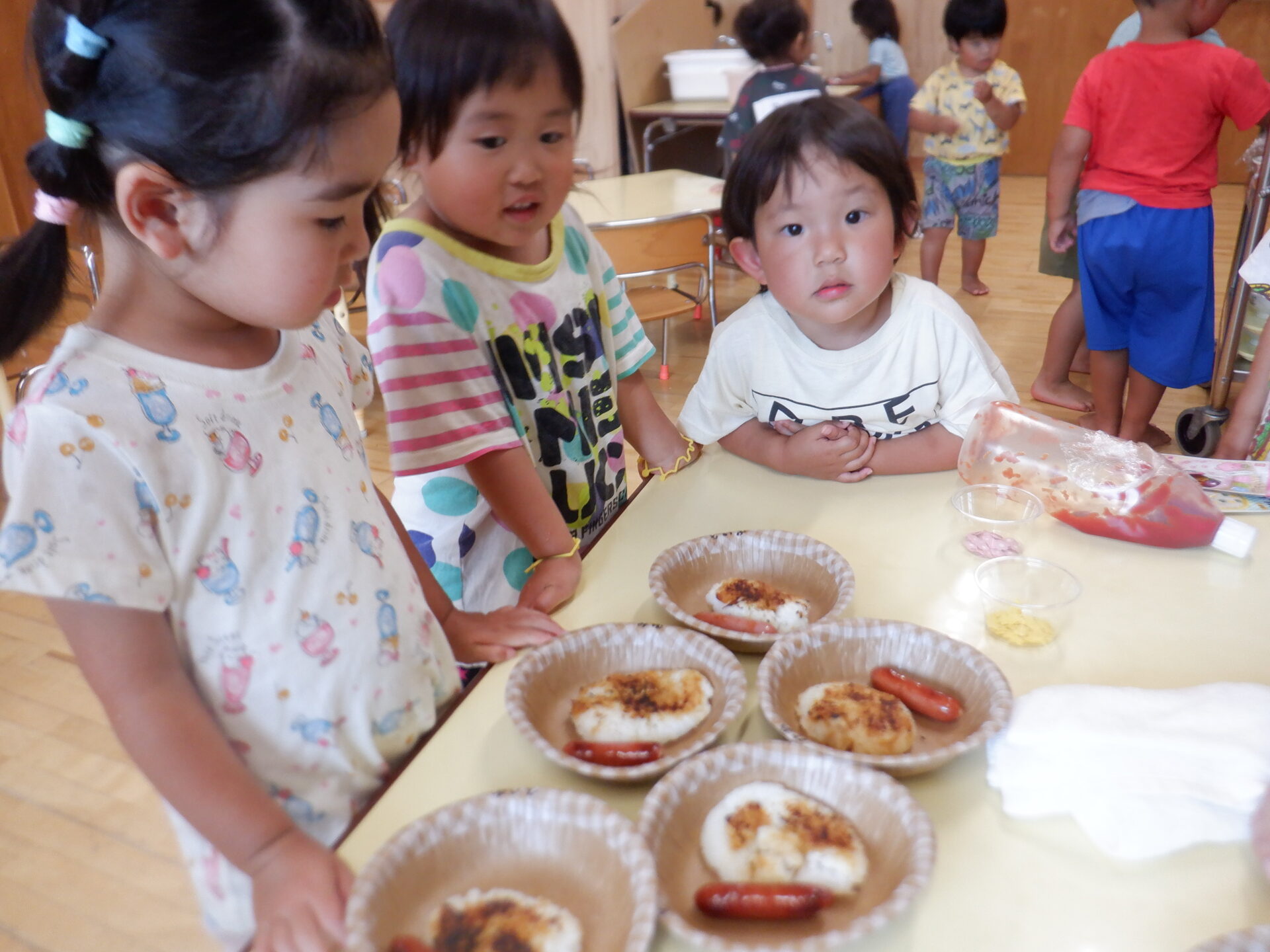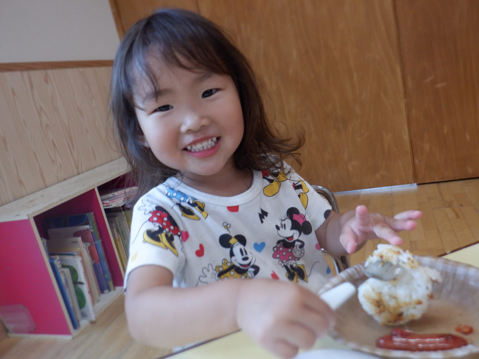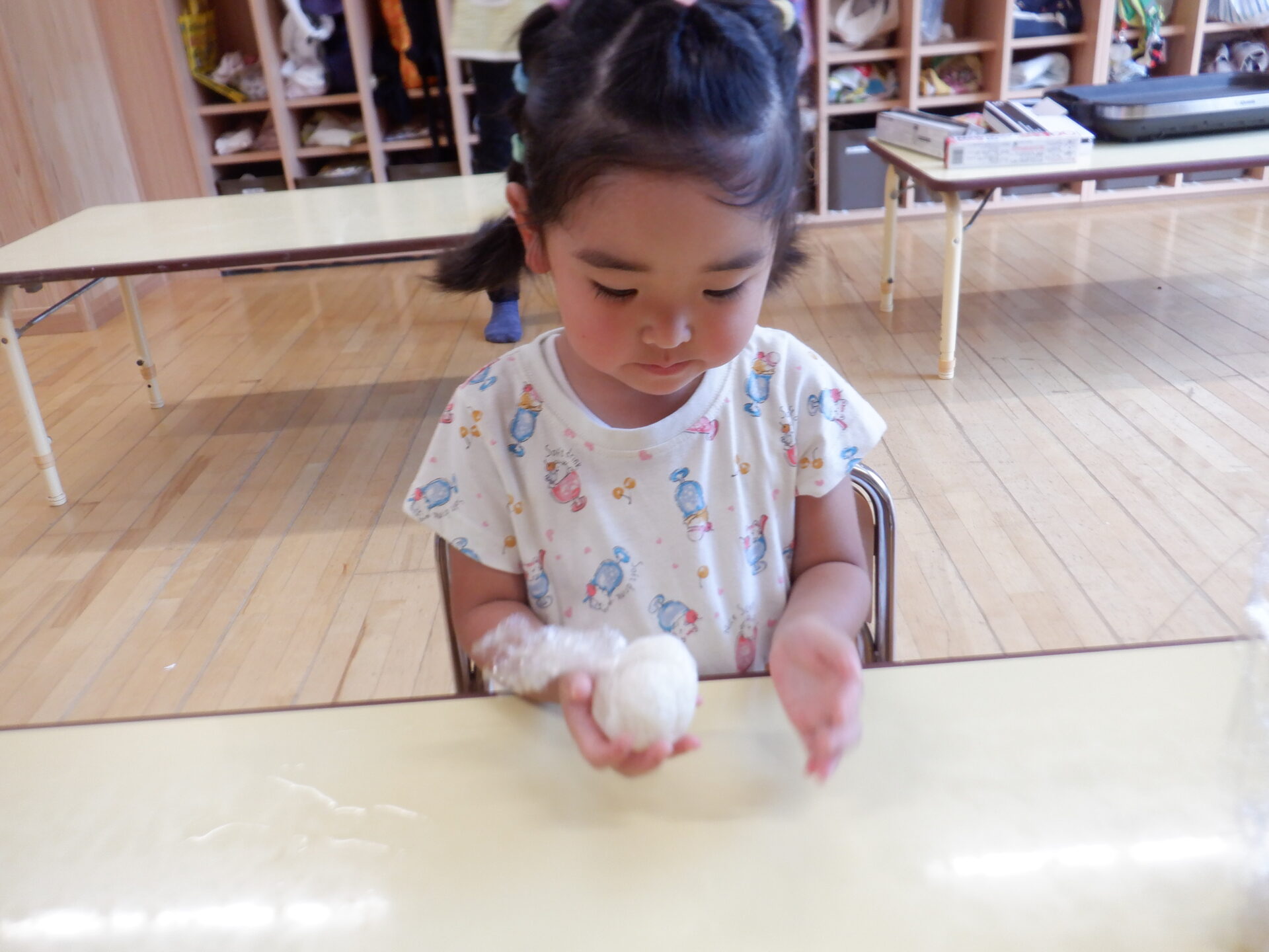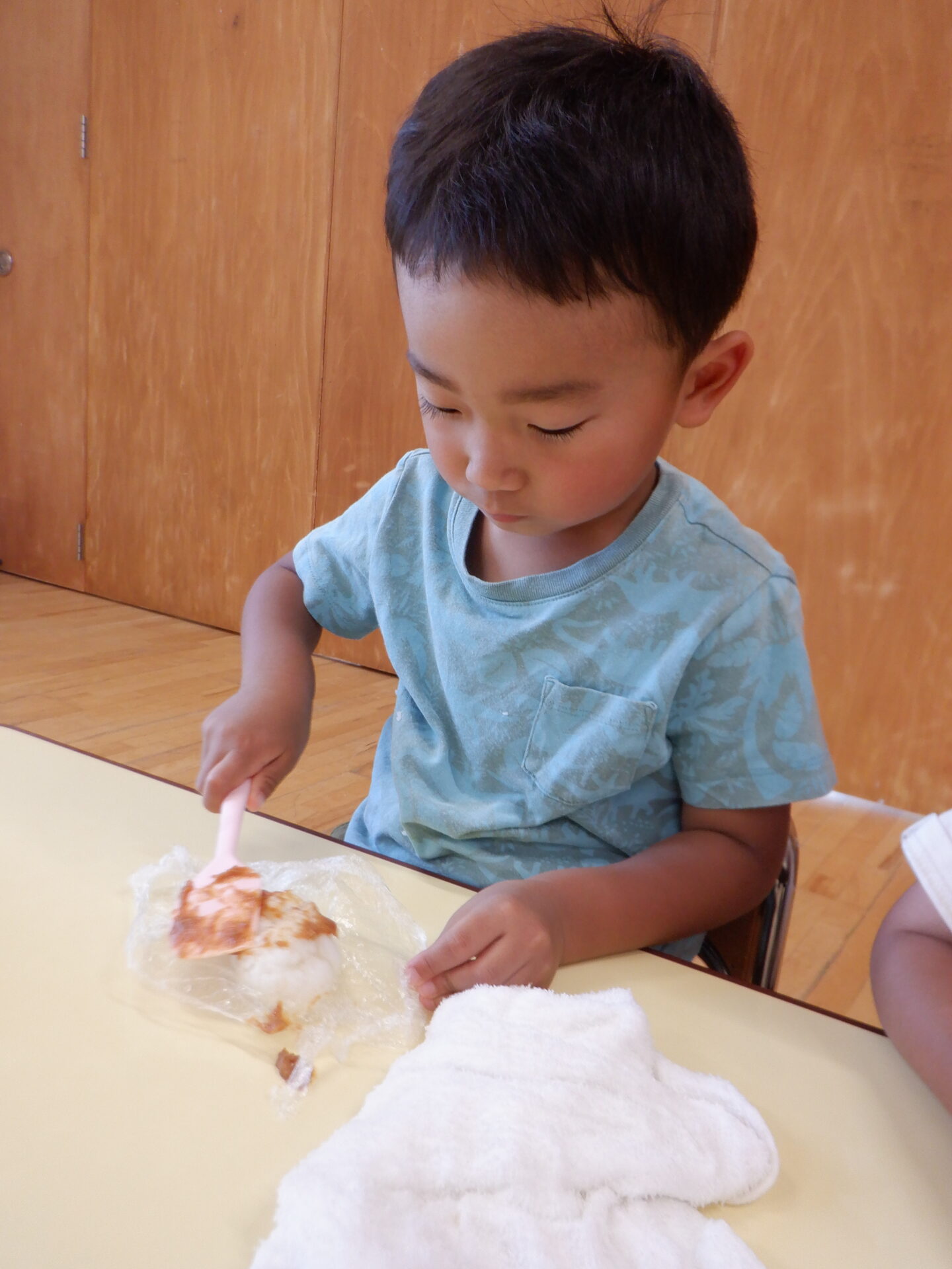 自分たちで握って味噌をぬったおにぎりは、給食の先生に焼いてもらいました。