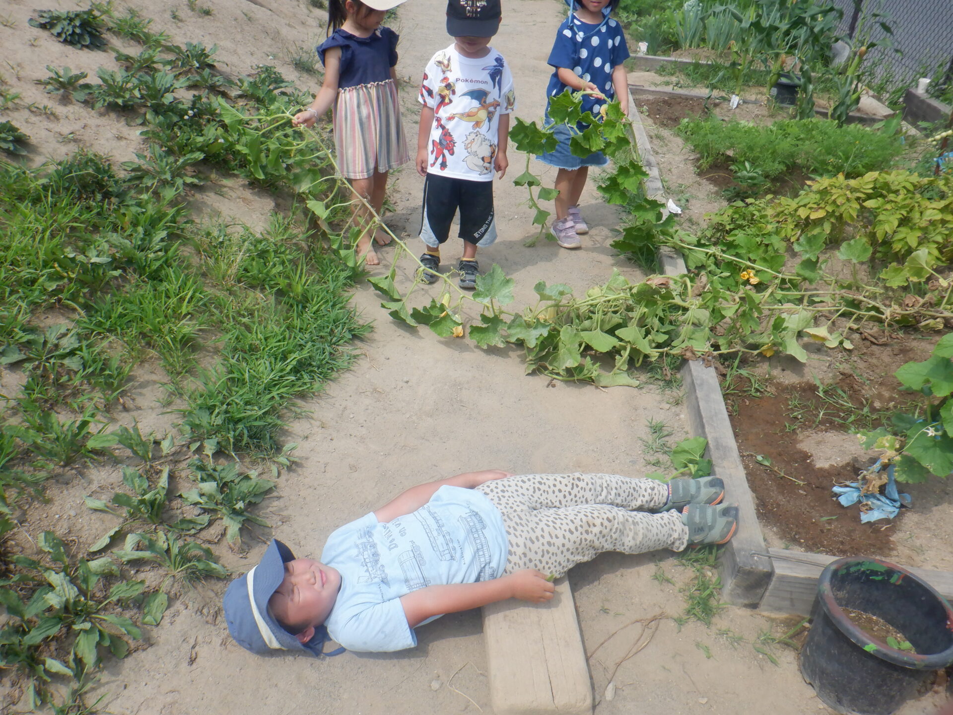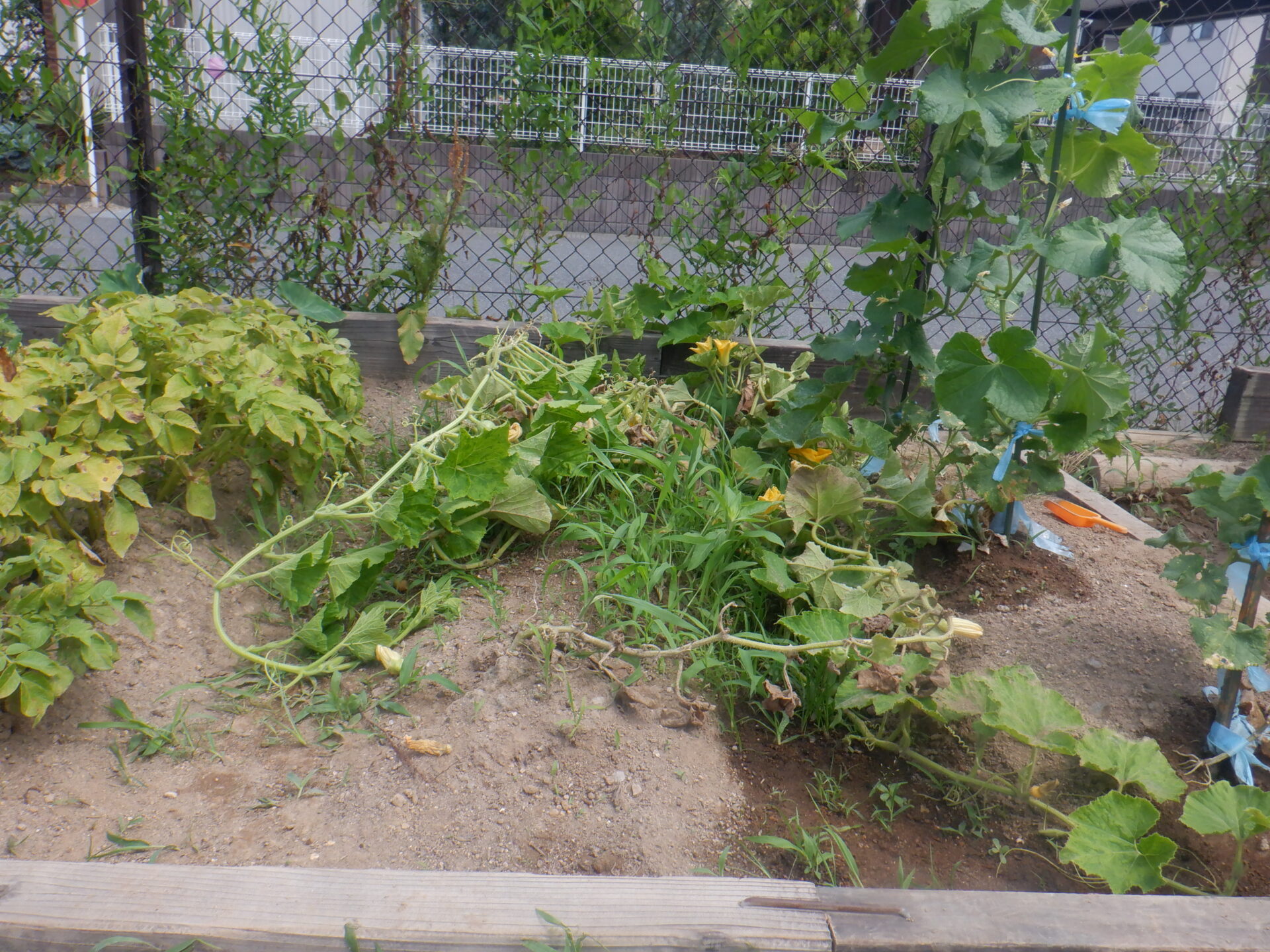 畑を覗くとつるが伸びてる事に気が付きました。