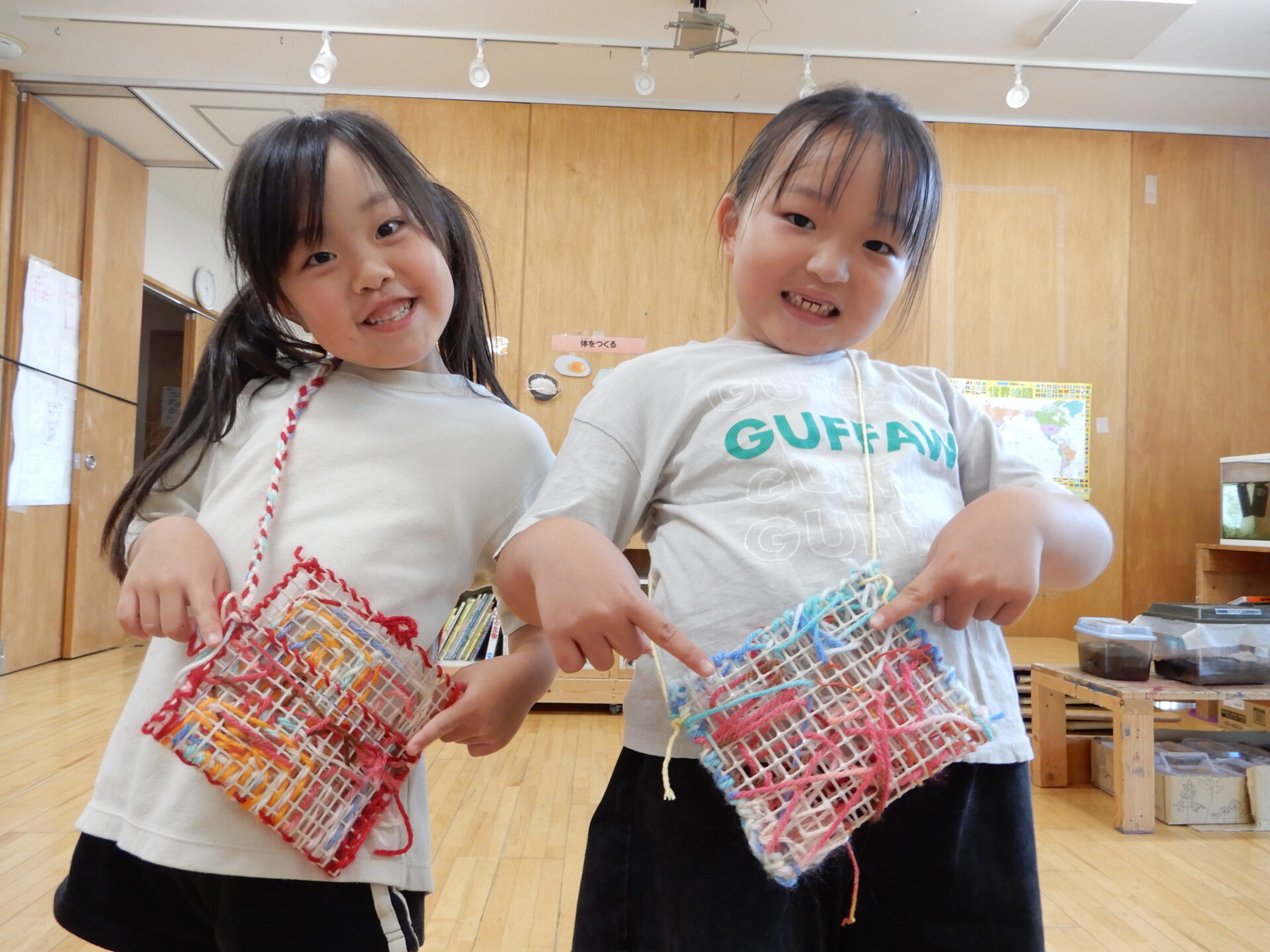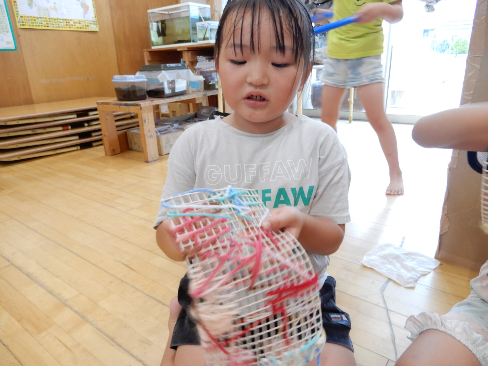 毛糸とネットで作り始めました。