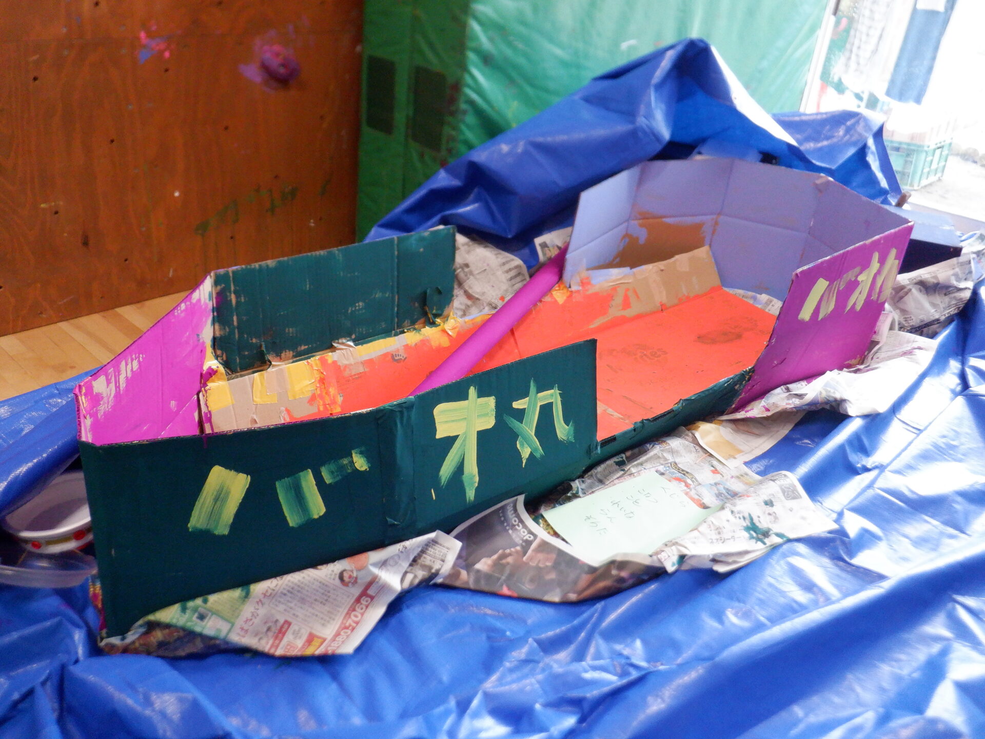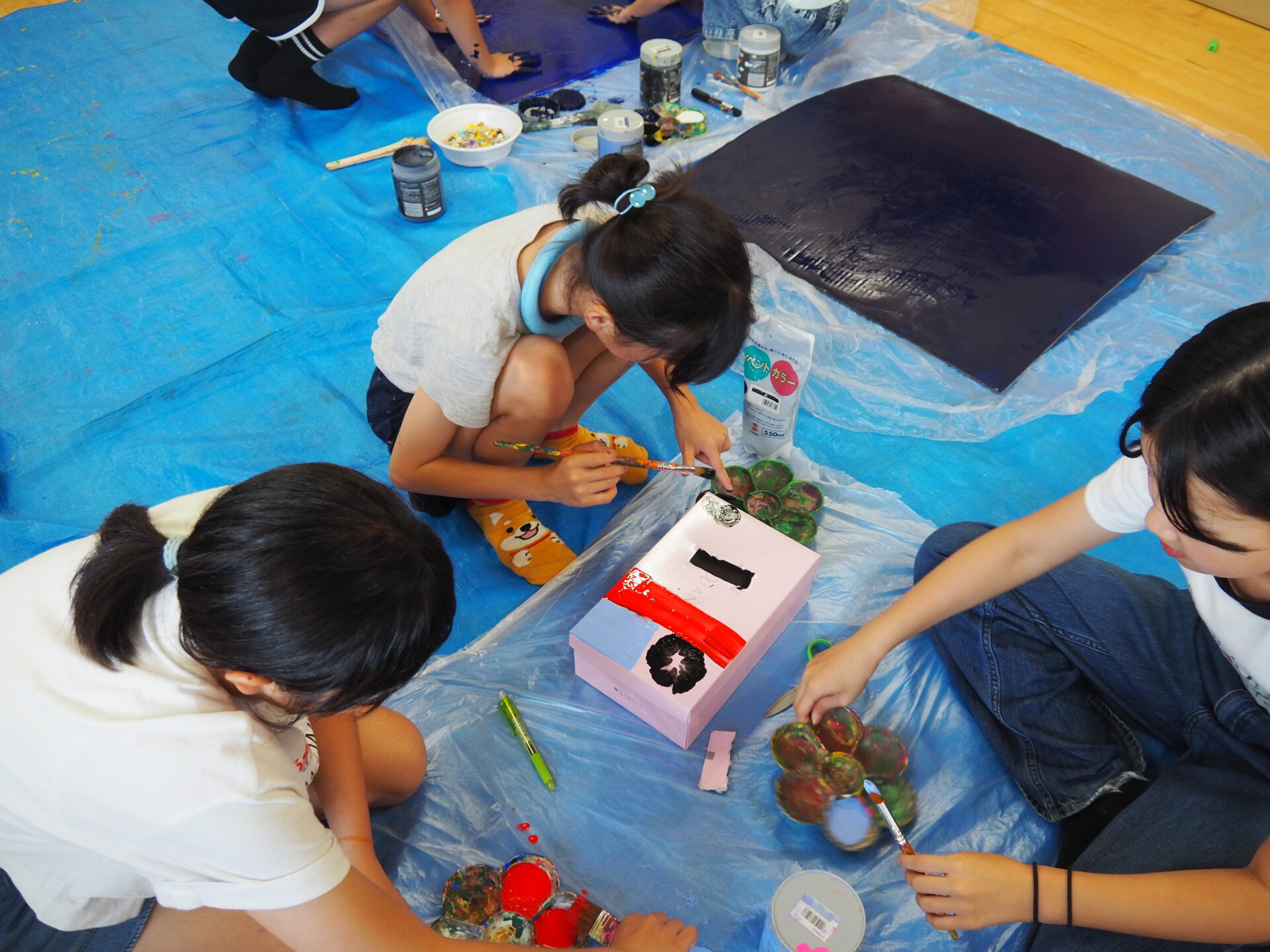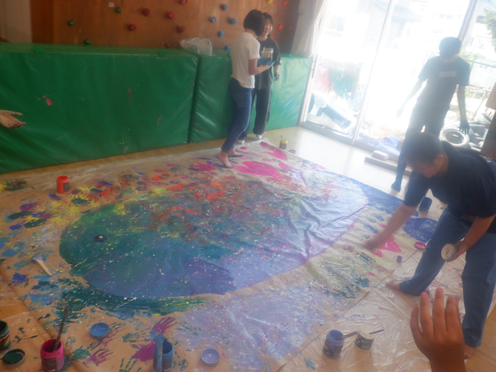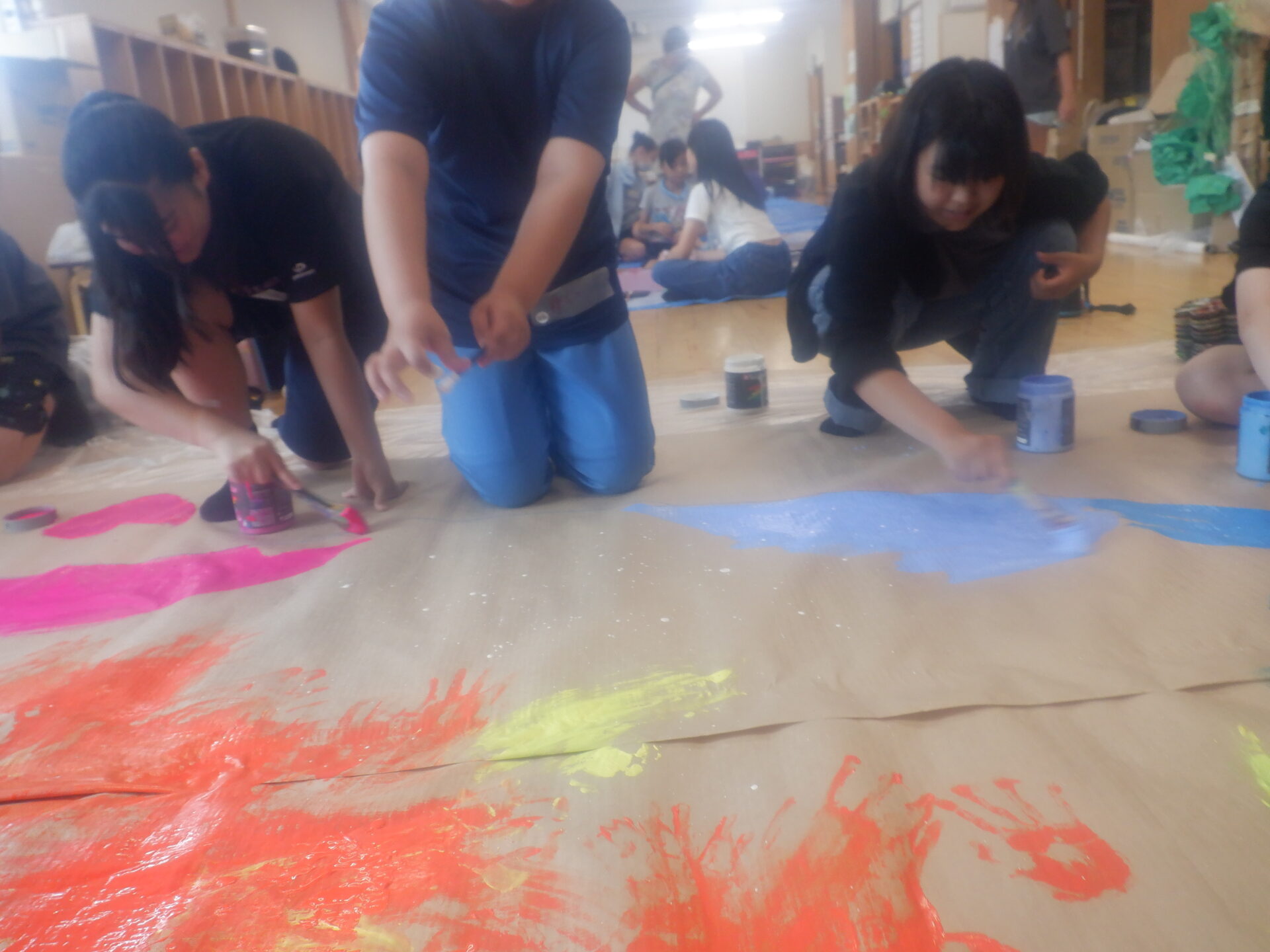 絵の具を前に躊躇なく手で描いていく力。